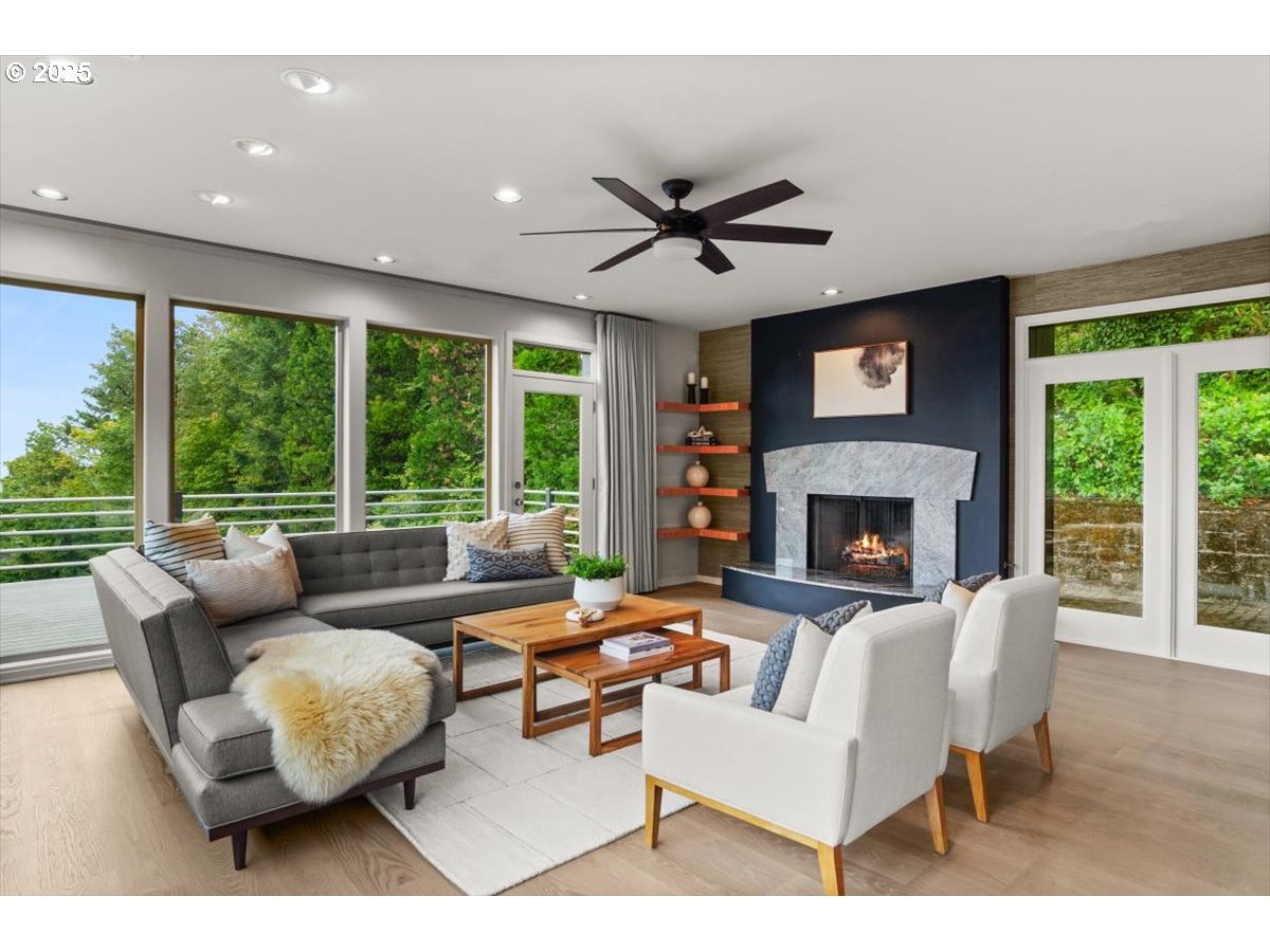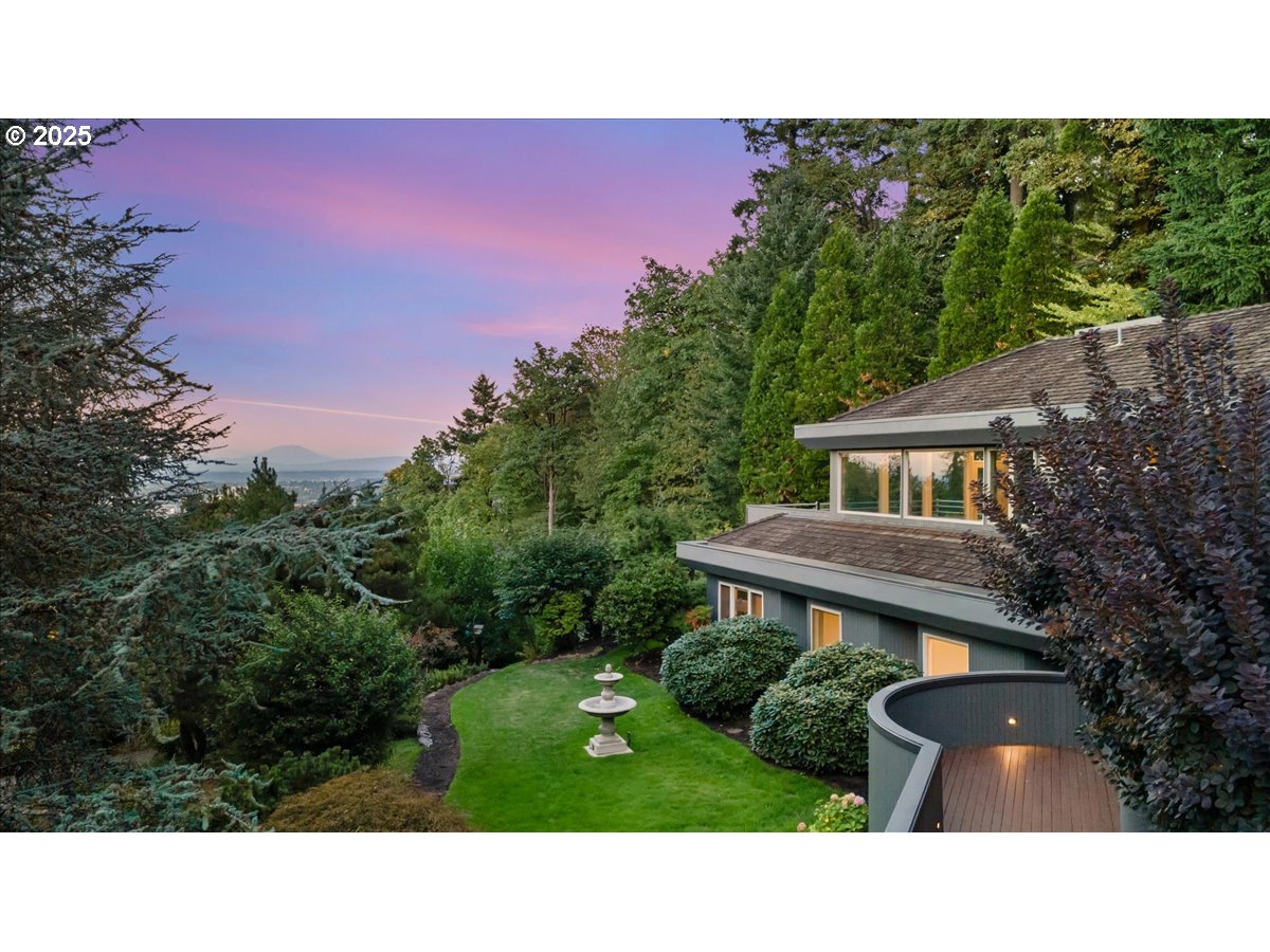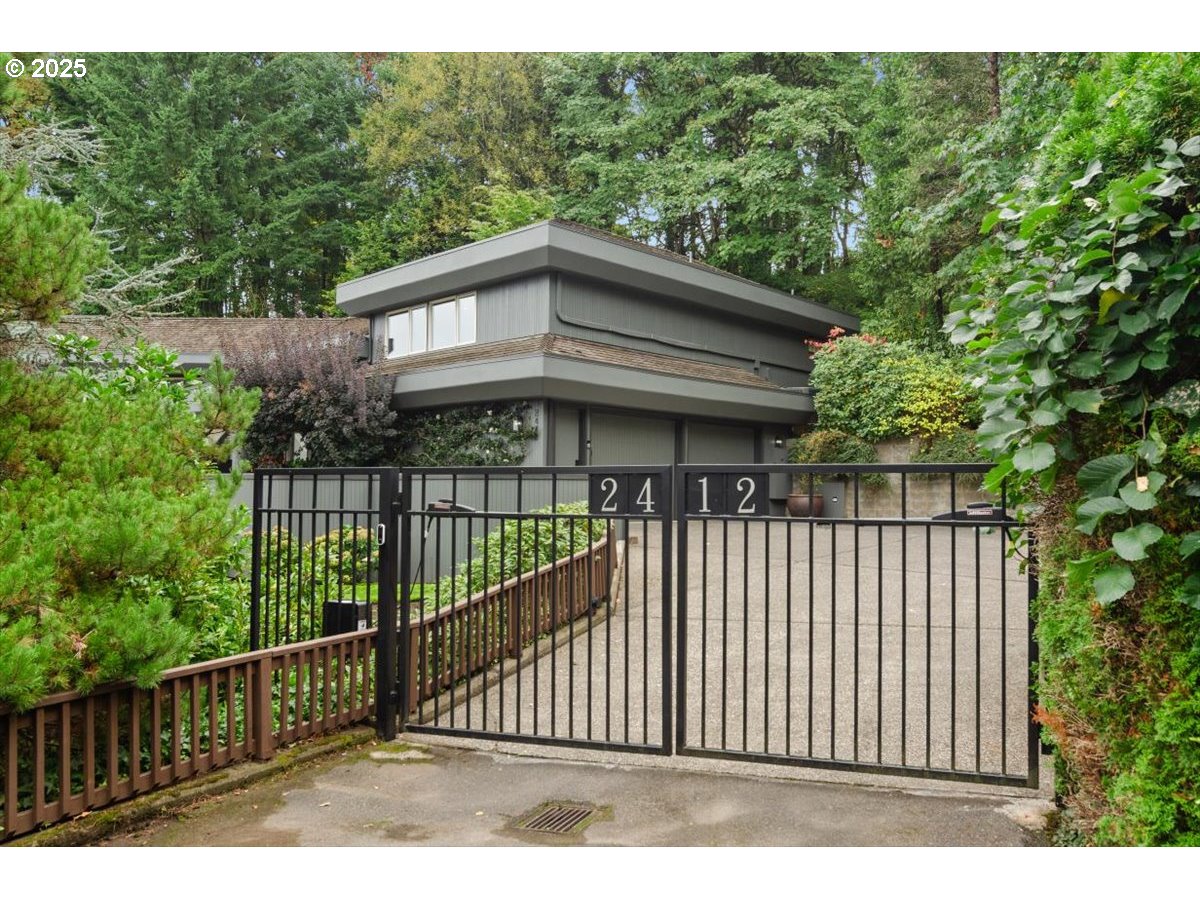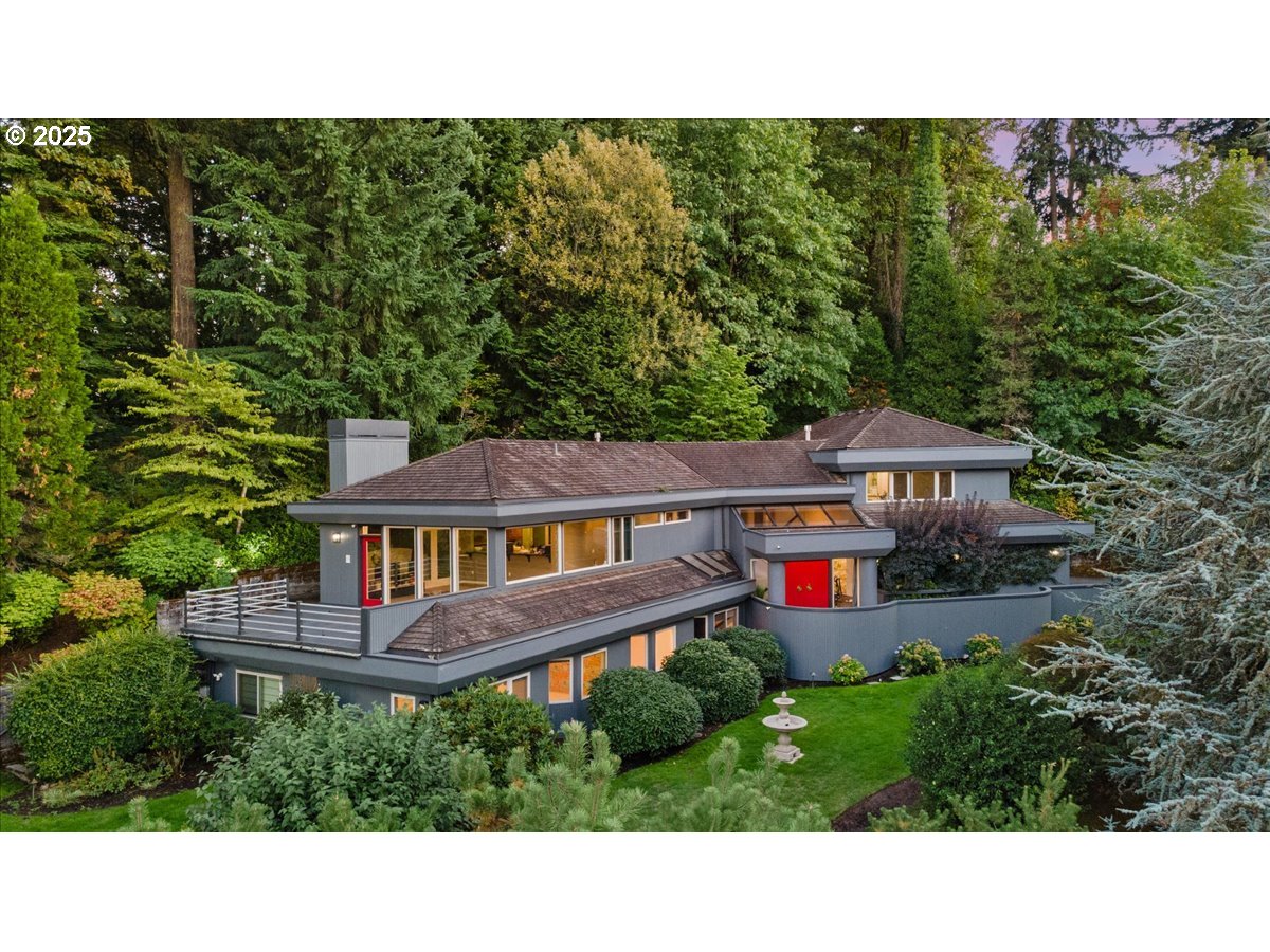 Live effortlessly in this one-of-a-kind Portland Heights residence, a home that blends contemporary urban design with natural serenity. Thoughtfully planned and superbly executed by renowned Oregon designer Steve Van Sant, this property showcases generous rooms, handsome built-ins, and walls of windows framing breathtaking views of the city and mountains. Perfectly positioned at the end of a private drive and bordering protected woodlands, the home offers rare privacy and elegance. The gated exterior offers a level lawn, expansive decks, and lush gardens—an ideal setting to enjoy the beauty of the natural surroundings. Distinguished by architectural detail, refined finishes, and seamless integration with its natural setting, this property offers both artistic sophistication and timeless comfort—while being only minutes from parks, trails, downtown, hospitals, schools, NW Portland, and the high-tech corridor. [Home Energy Score = 4. HES Report at https://rpt.greenbuildingregistry.com/hes/OR10026654]