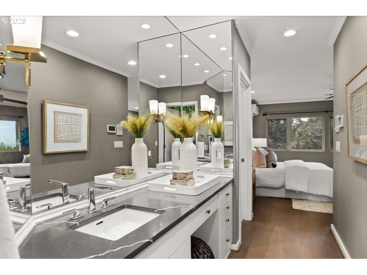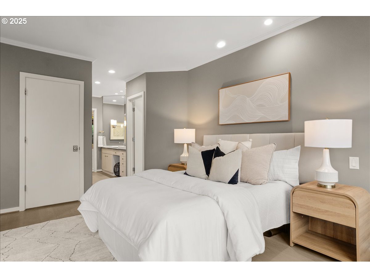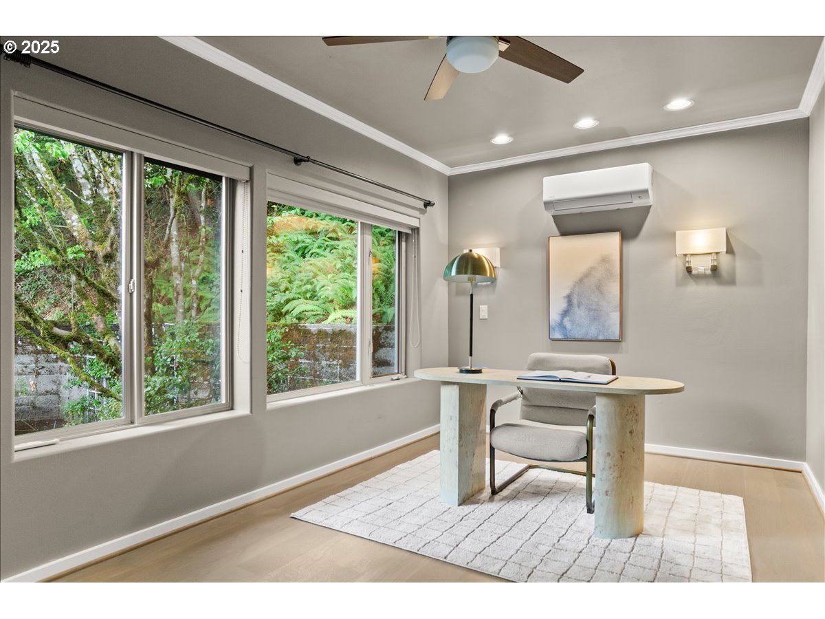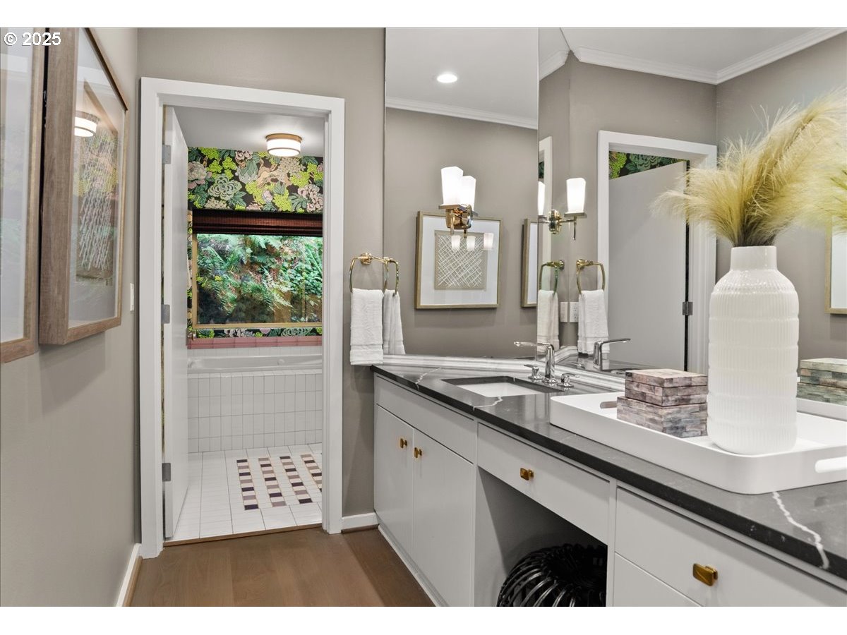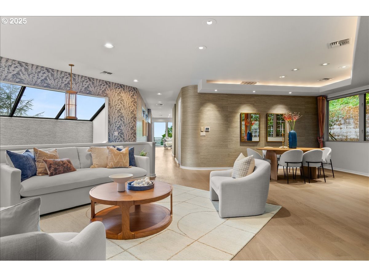 Live effortlessly in this one-of-a-kind Portland Heights residence, a home that blends contemporary urban design with natural serenity. Thoughtfully planned and superbly executed by renowned Oregon designer Steve Van Sant, this property showcases generous rooms, handsome built-ins, and walls of windows framing breathtaking views of the city and mountains. Perfectly positioned at the end of a private drive and bordering protected woodlands, the home offers rare privacy and elegance. The gated exterior offers a level lawn, expansive decks, and lush gardens—an ideal setting to enjoy the beauty of the natural surroundings. Distinguished by architectural detail, refined finishes, and seamless integration with its natural setting, this property offers both artistic sophistication and timeless comfort—while being only minutes from parks, trails, downtown, hospitals, schools, NW Portland, and the high-tech corridor. [Home Energy Score = 4. HES Report at https://rpt.greenbuildingregistry.com/hes/OR10026654]