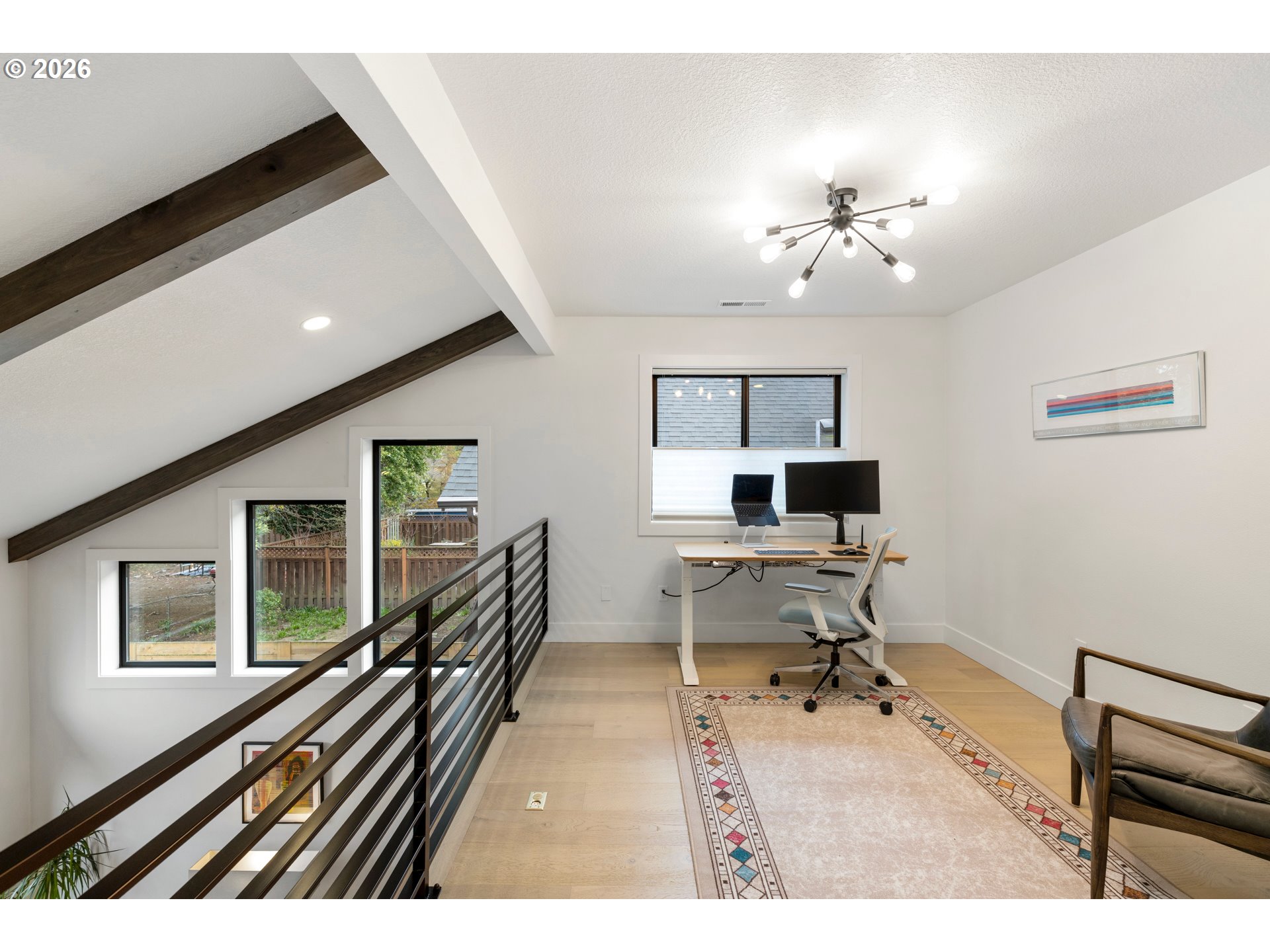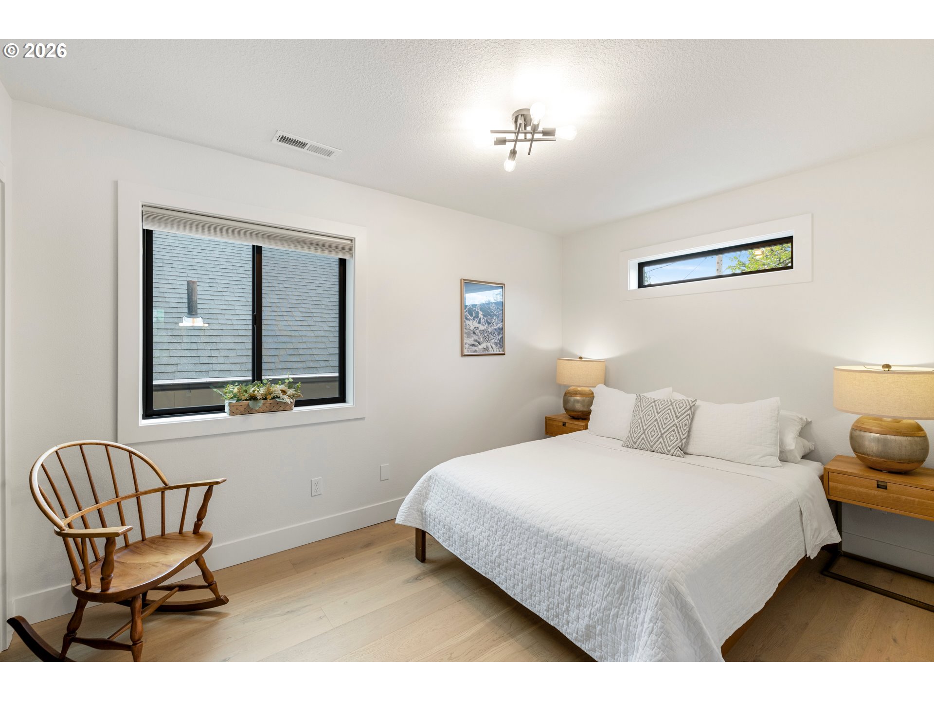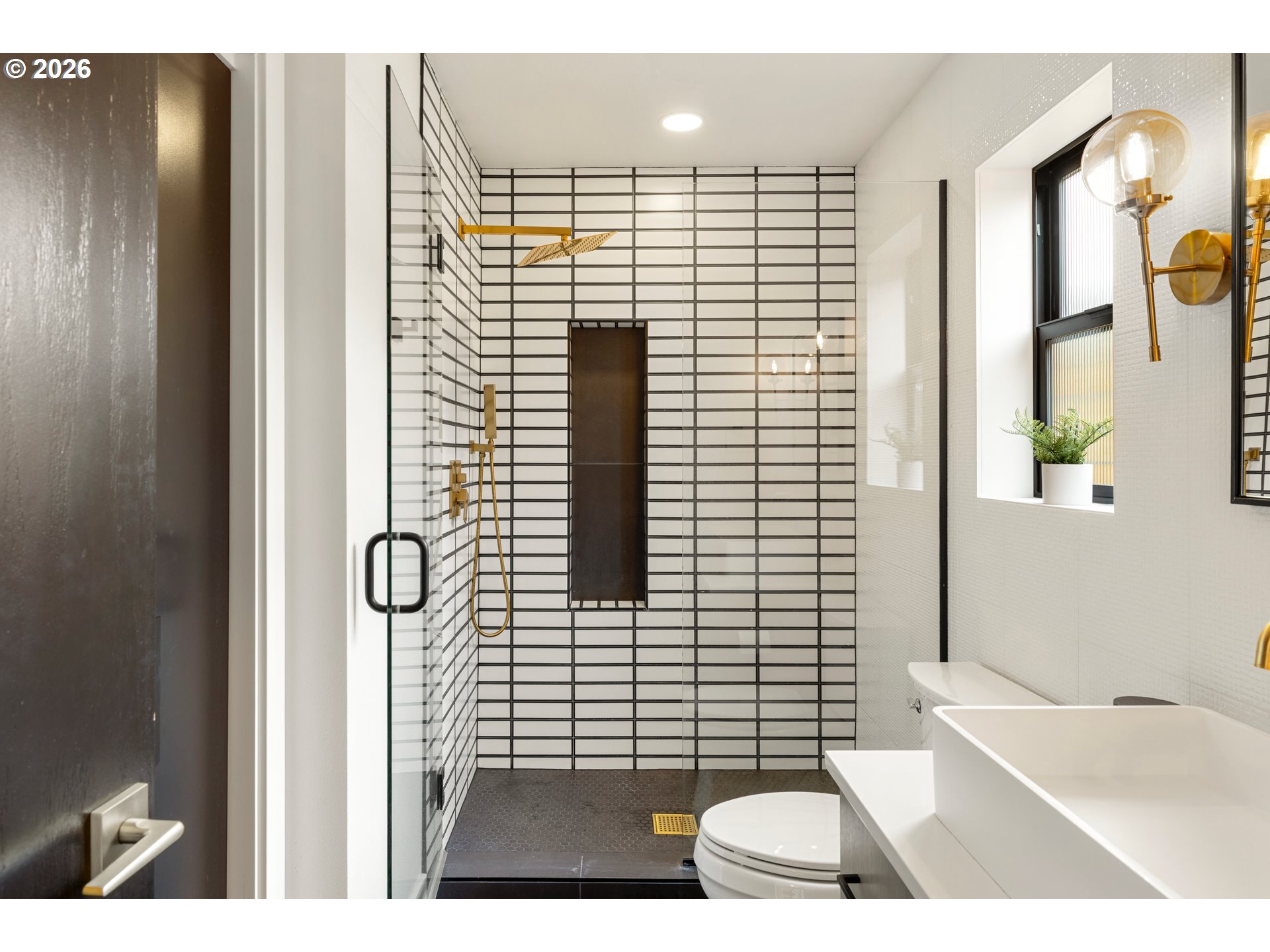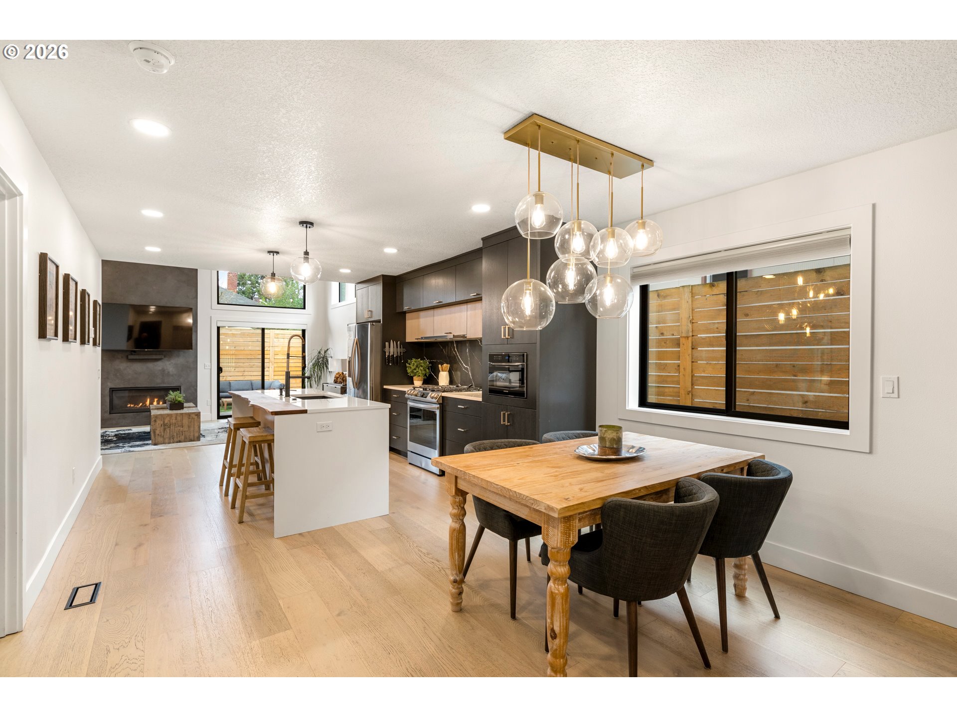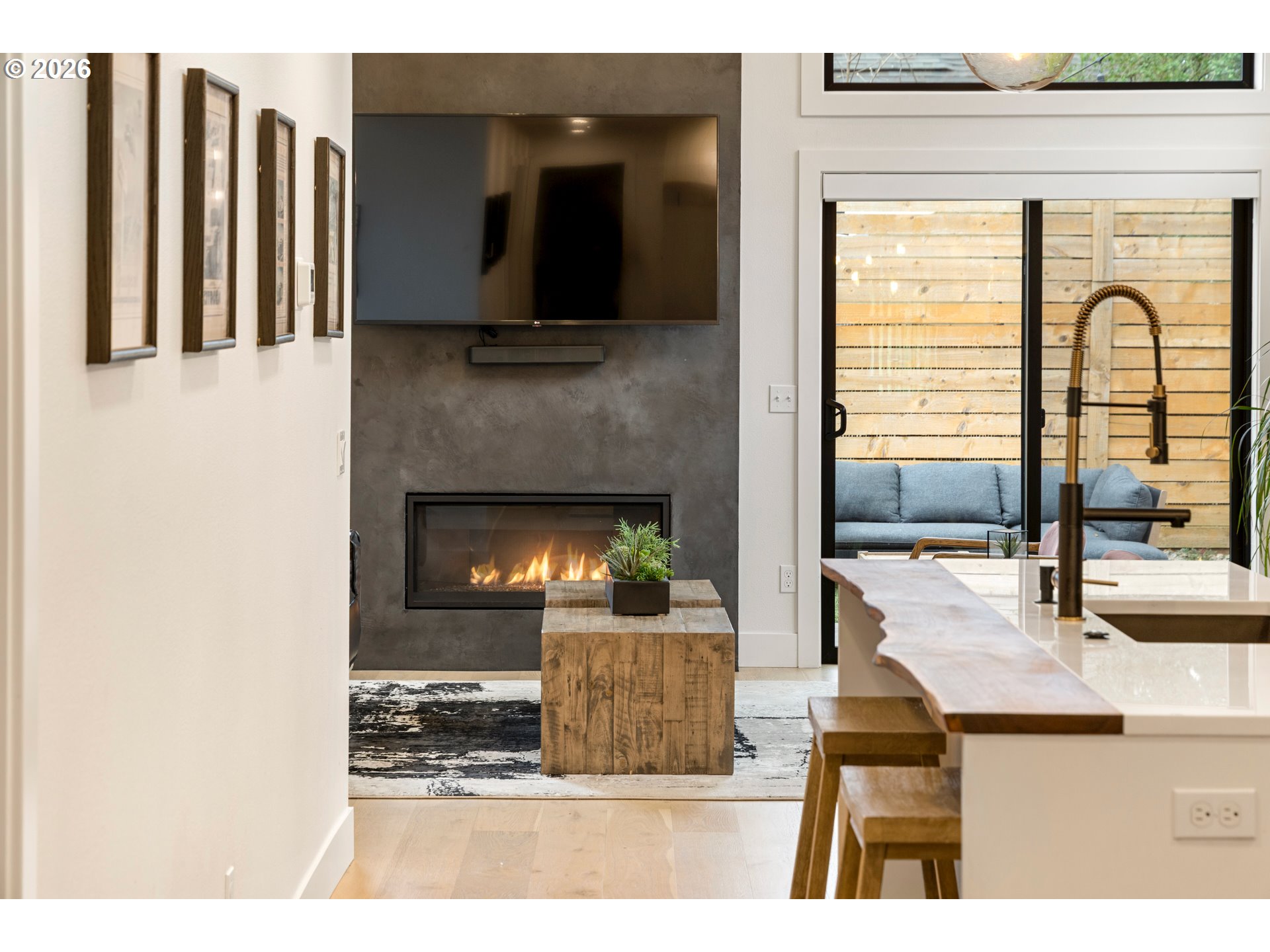 This thoughtfully updated home in the heart of Richmond blends luxury finishes with modern amenities, a hard to beat location and all the assurances of modern construction in one of the most sought after neighborhoods in Portland. The open concept main level features engineered hardwood flooring throughout, expansive windows, and a seamless flow between living, dining, and kitchen spaces. The high-end kitchen is equipped with quartz countertops and backsplash, custom cabinetry, and island with beautiful custom wood bar top. The living room enjoys high, vaulted ceilings with exposed beams, a show stopping floor-to-ceiling gas fireplace and sliding doors that provide an abundance of light and easy access to the private back yard patio. The spacious main floor primary bedroom offers extra deep closet space and an ensuite bathroom with a stunning custom tile shower and a gorgeous, modern vanity. Engineered hardwoods continue to the upper level to a versatile loft that can serve as a perfect office, secondary living, or flex space. The two large spare bedrooms provide plenty of space for family or guests with a huge walk-in closet and access to the hall bathroom featuring quartz countertops, tile floors, and custom tile tub shower. The flat, fully fenced backyard features ample patio space with low maintenance artificial turf and room for outdoor furniture, a grill, and more. The attached 2-car garage with additional driveway space provides plenty of parking. This high-end 2022 remodel lives like new construction with the assurances of a new roof, HVAC, tankless water heater, windows, added insulation, EV charger, smart home features, and so much more. With walk/bike scores of 93 & 94, and easy access to downtown, parks, and excellent shopping and dining on SE Division, Hawthorne, and Belmont, this unbeatable location truly offers the best of SE Portland.