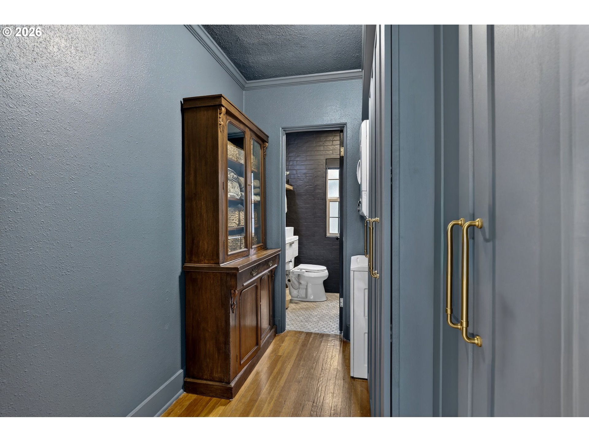 OPEN House Sunday 3/1 1 to 3pm. Welcome to your cozy cottage centrally located in NW Portland! This warm and inviting one bedroom condo offers exceptional walkability to nearby parks, cafes, restaurants, groceries and transit options. Conveniently located near vibrant NW 23rd Ave (approx .2 mi), Forest Park trail access (approx .5 mi) and across the street from Wallace Park. This end unit features beautiful hardwood floors, abundant natural light, a mini-split system for year round comfort and energy efficiency, updated kitchen, in unit washer and dryer, custom built closet system, and sexy full bathroom remodel with gorgeous gold accents and ceiling to floor tile. A separate 10 x 5 dedicated storage unit is located in the basement for your bike and other storage needs. Pet-friendly policy welcomes four-legged family members. The HOA includes water, trash, sewer, exterior maintenance and grounds. The Home Energy Score doesn't get better than a perfect 10 out of 10!