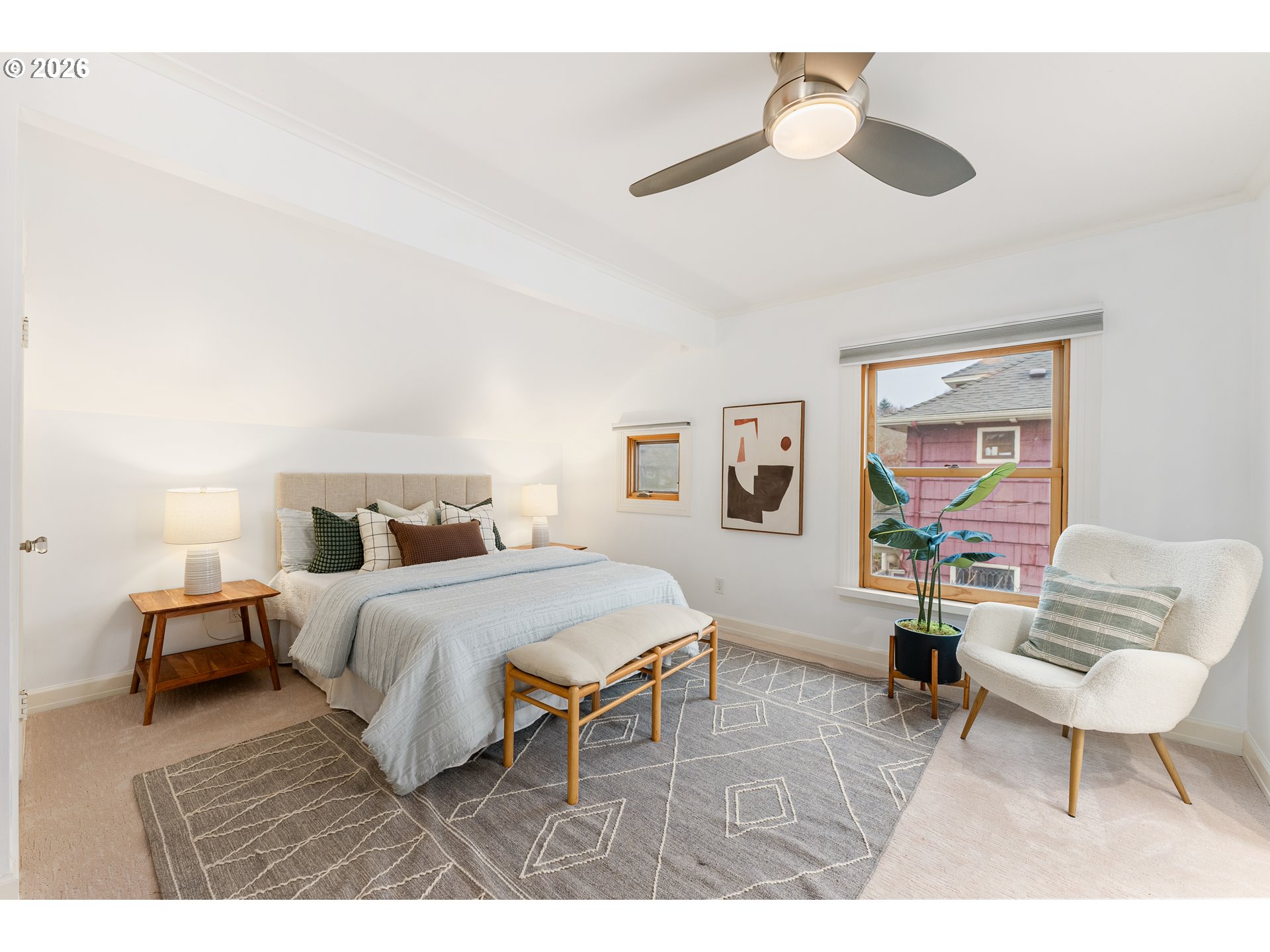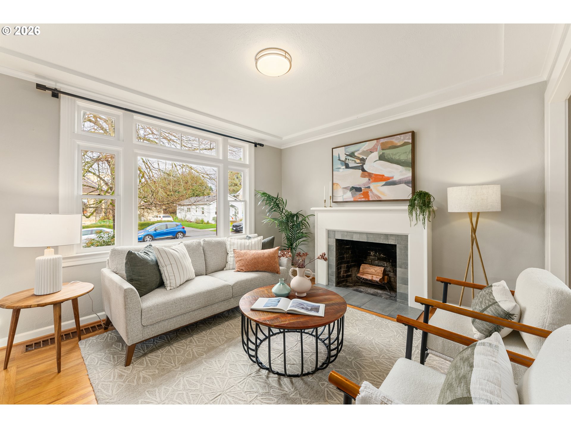 Updated 1905 bungalow in prime inner SE Portland location with 2,232 square feet across three finished levels on a level lot. The main level features hardwood floors, a wood-burning fireplace, and a functional layout connecting the living, dining, and kitchen areas. The kitchen includes quartz countertops, gas appliances, and an eating bar. One bedroom and a full bath are also located on the main level. The upper level is dedicated to the primary suite with a walk-in closet, double sinks, skylights, and a walk-in shower. Upper level also has flex space perfect for nursery, home office, dressing room - you decide! The finished lower level provides additional living space with a bedroom, full bath, utility room, and exterior entry. Outside you will find a fenced yard, covered patio, garden space, and a 2 car detached garage. A well-located home offering space. New carpet and fresh paint! OPEN SAT 1/10 11AM-1PM & SUN 1/11 1-3PM