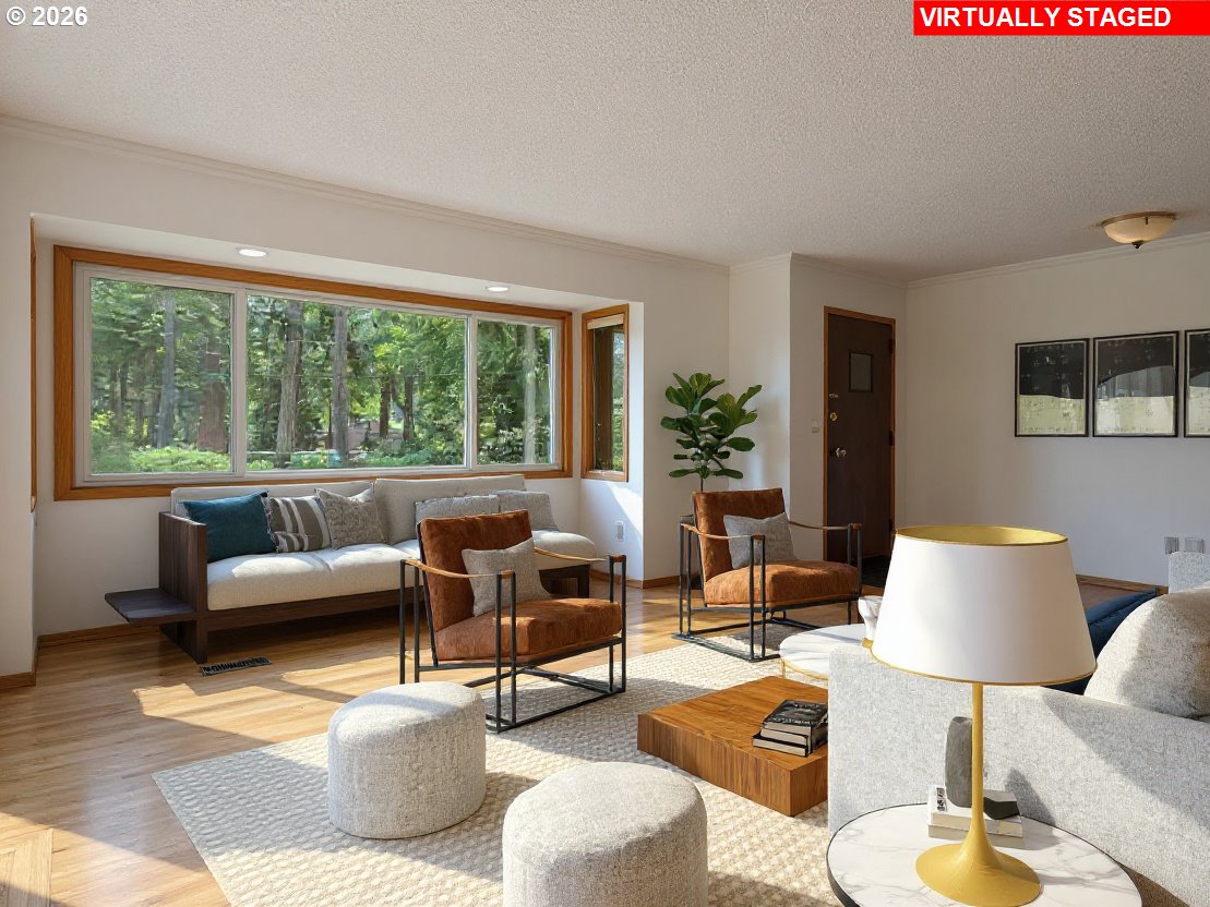 **SPECIAL OFFER: Prior to close, seller will install a new roof and a radon mitigation system with an acceptable offer. Clean sewer scope report available upon request.** Discover your private retreat in this expansive 3,000+ square foot home, nestled on an oversized lot at the end of a closed street. This charming ranch, dating back to the late 1960s, showcases the sturdy craftsmanship characteristic of its time, with a thoughtfully designed layout. Step into the living room, a quintessential mid-century space featuring generous front windows, original hardwood flooring, and a cozy brick fireplace outfitted with a gas insert. The rear addition enhances the home, significantly expanding the kitchen and dining areas into an inviting open concept. Natural light pours in through multiple solar tubes and two sets of sliding doors that lead to a spacious backyard deck. The main level houses three generously sized bedrooms, including a primary suite complete with its own ensuite bathroom. An additional fourth bedroom and a third bathroom can be found in the finished basement, ensuring ample space for everyone. The basement also boasts a large family room, highlighted by several large windows, a pool table, and a charming freestanding wood stove. For added convenience, there's a separate laundry room with plenty of room for storage. Need extra space? The sizable two-car garage provides plenty of room for vehicles or a workshop. There is even a deep driveway with enough room for RV parking. The front yard, stretching across this 100-foot wide lot, is adorned with a delightful mix of native shrubs, rose bushes, and trees that provide great shade. The fully fenced backyard features a dedicated area for dogs, a garden shed, and a flourishing bed of mature roses. Utilities and upgrades include a high-efficiency natural gas furnace with central A/C, double pane windows throughout the main floor, and a newly installed water service line from 2019. [Home Energy Score = 4. HES Report at https://rpt.greenbuildingregistry.com/hes/OR10239364]