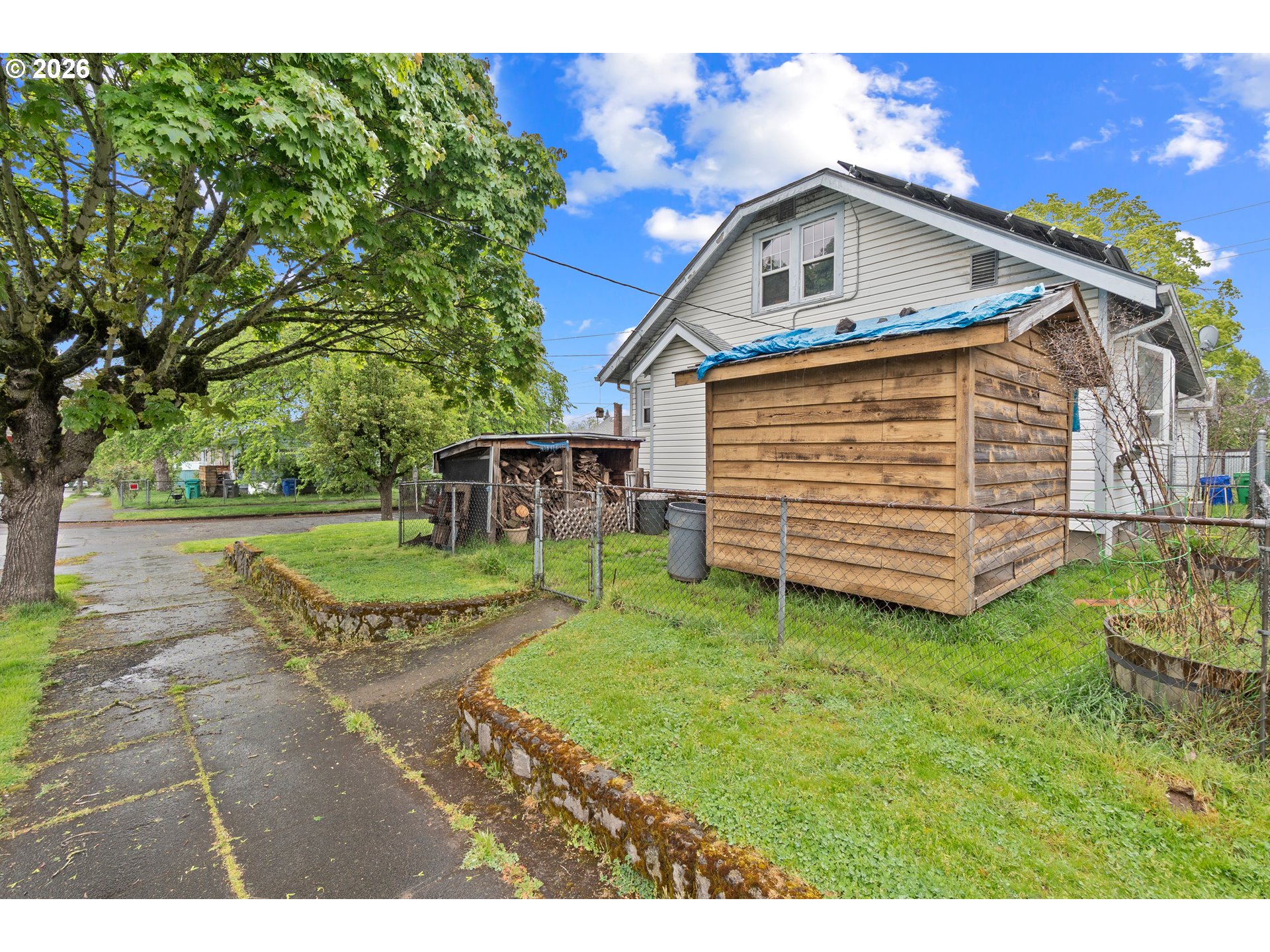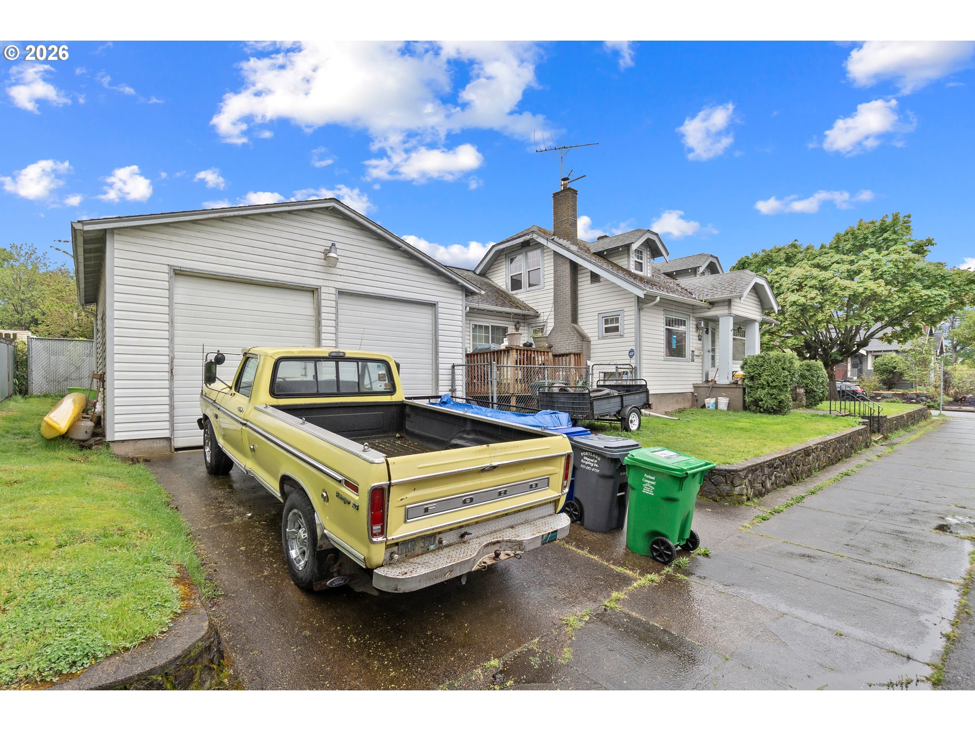 Piedmont Opportunity. Traditional home on a full size lot with a rare double-car detached garage. Living room with hardwoods and fireplace. Spacious dining room. Updated kitchen with custom cabinets and dining nook. Main level with expanded primary bedroom. Updated full bath on main with double sinks. Two bedrooms upstairs. Unfinished basement down. Many updated windows. Solar panels - extremely cheap electrical bills. The home needs work. Fantastic location close to Peninsula Park and community center, Dekum Triangle, New Seasons, and much more. [Home Energy Score = 1. HES Report at https://rpt.greenbuildingregistry.com/hes/OR10247598]