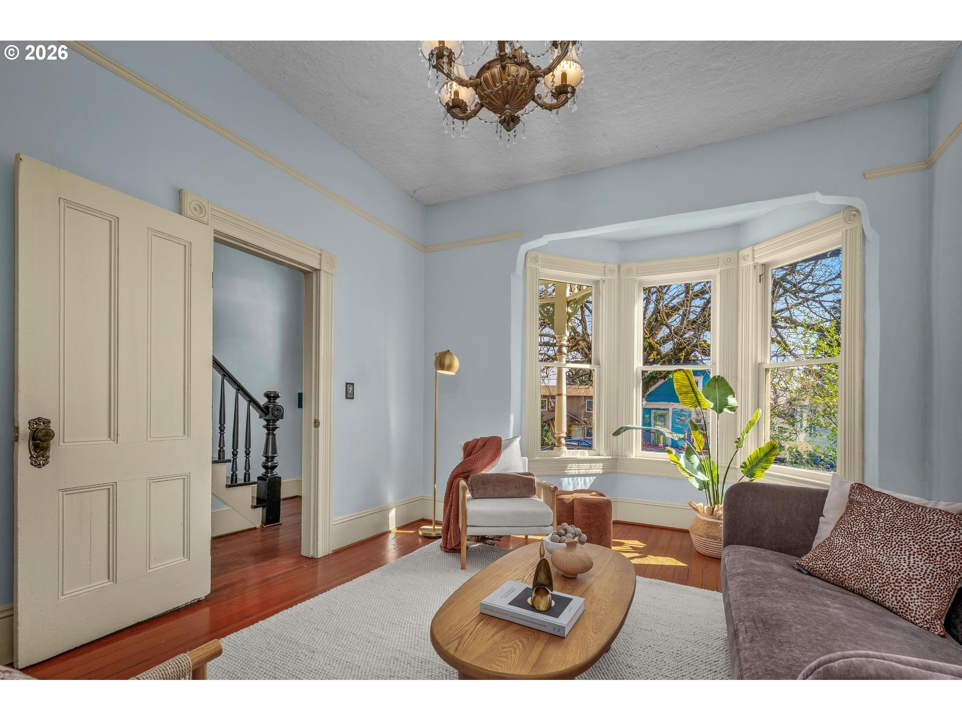 Quintessential Victorian in the heart of Brooklyn. This beautifully preserved Painted Lady blends timeless Portland character with thoughtful recent updates, including new roof and gutters (2025) and fresh exterior paint (2025). The inviting wrap-around porch offers the perfect place to start and end the day. Inside, soaring ceilings and abundant natural light showcase classic period details—decorative crown molding, stained glass, pocket door, intricate details and hardware, and warm fir floors. The floor plan flows naturally from the formal living room with bay windows to the spacious formal dining room, creating ideal spaces for gatherings, dinner parties, and everyday living. A flexible main-floor office (or 4th bedroom) provides a quiet retreat—ideal for working from home or creative projects. The kitchen features upgraded appliances, abundant storage, and plenty of room to cook and gather. Main floor bathroom has a jacuzzi tub for soaking. Upstairs, a wide landing connects three large bedrooms and a beautifully updated full bathroom. The recently refinished lower level with exterior entrance provides a perfect flex space—ideal for a media room, family room, guest quarters, studio, or play space. Step outside to a private backyard oasis with lawn, terraced garden beds, and a deck ideal for entertaining. Mature landscaping creates a natural sense of privacy, while seasonal plums, cherries, and grapes add to the charm. A large driveway provides valuable off-street parking. Located in one of Portland’s most beloved neighborhoods—stroll to the Aladdin Theater, explore Oaks Bottom Wildlife Refuge, or spend afternoons at Brooklyn Park. Easy access to Winterhaven School, Sellwood, and the vibrant Division/Clinton dining district. Classic architecture, modern livability, and an unbeatable neighborhood—this Brooklyn gem is truly special. [Home Energy Score = 1. HES Report at https://rpt.greenbuildingregistry.com/hes/OR10244177]