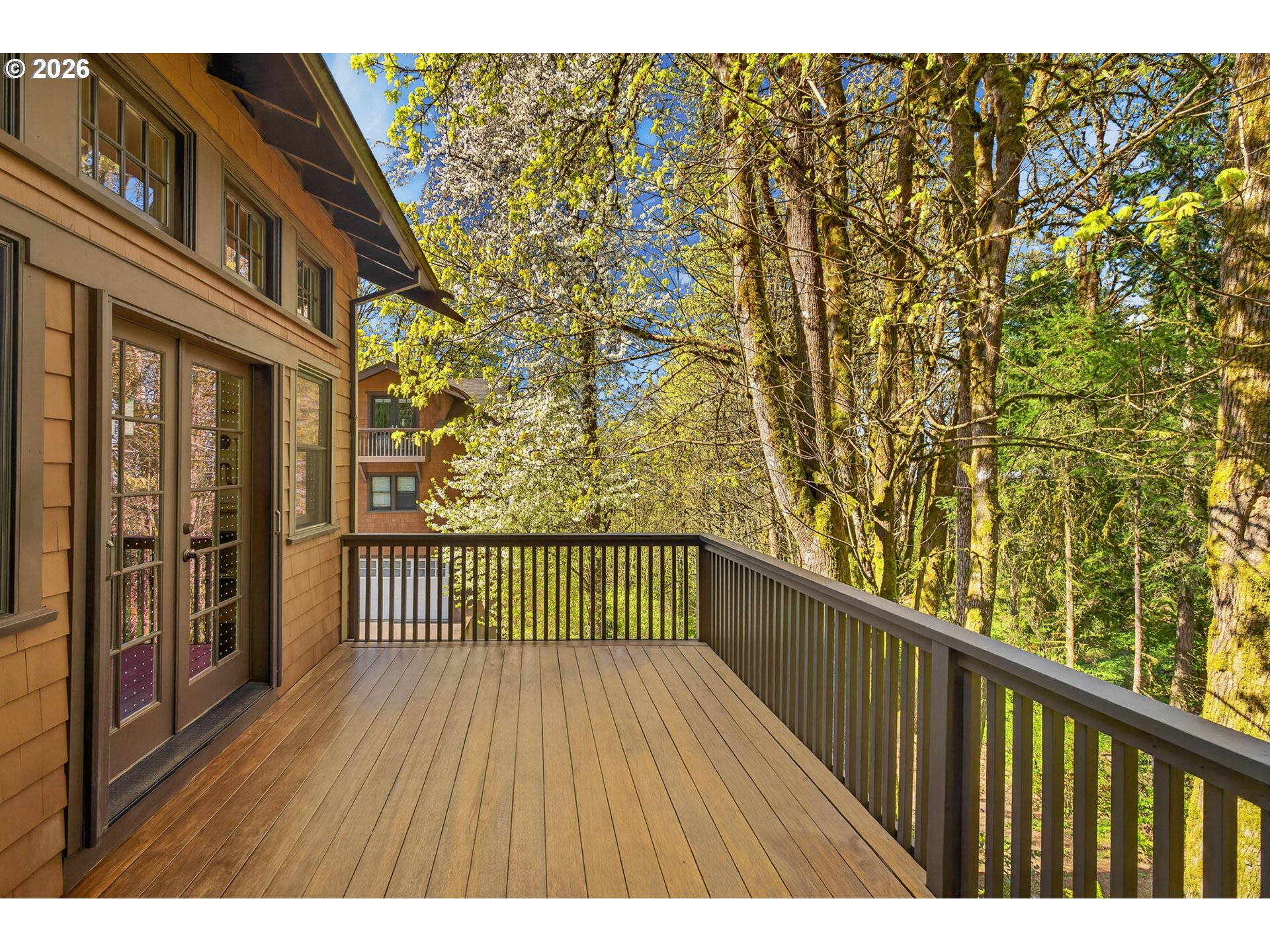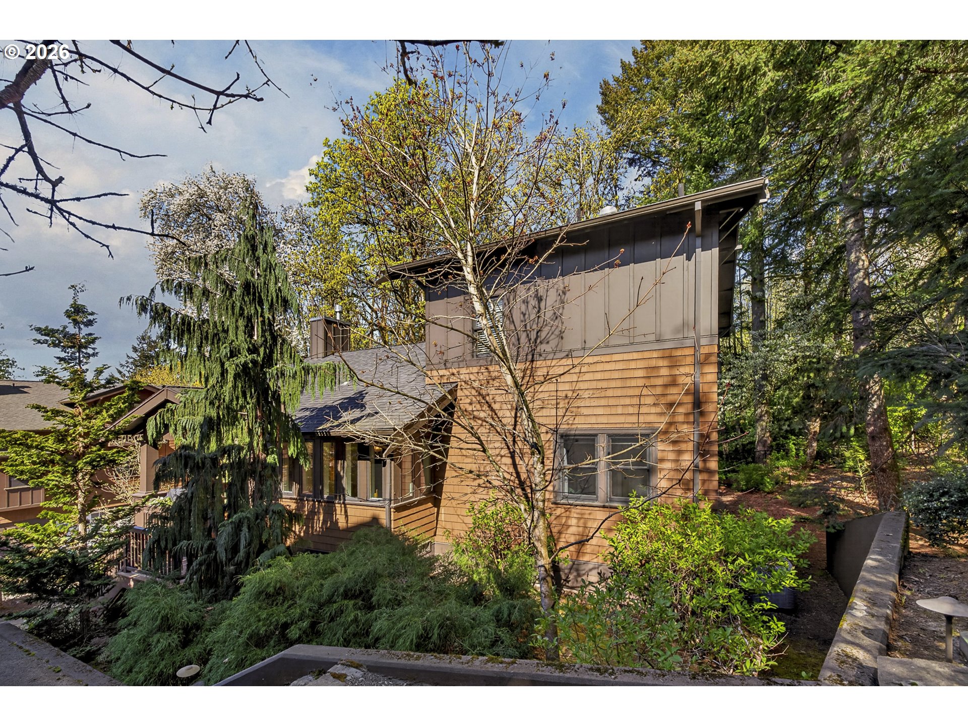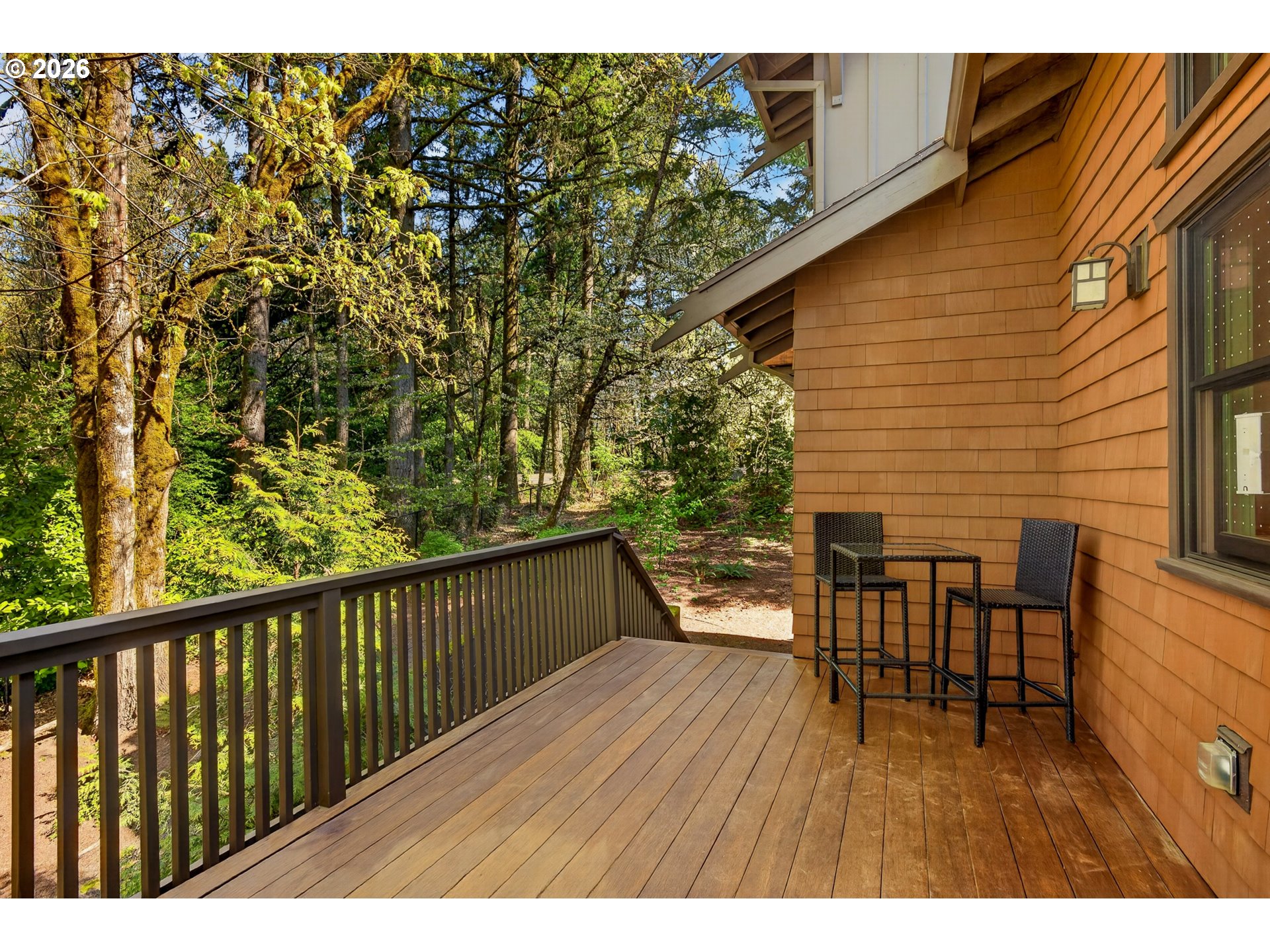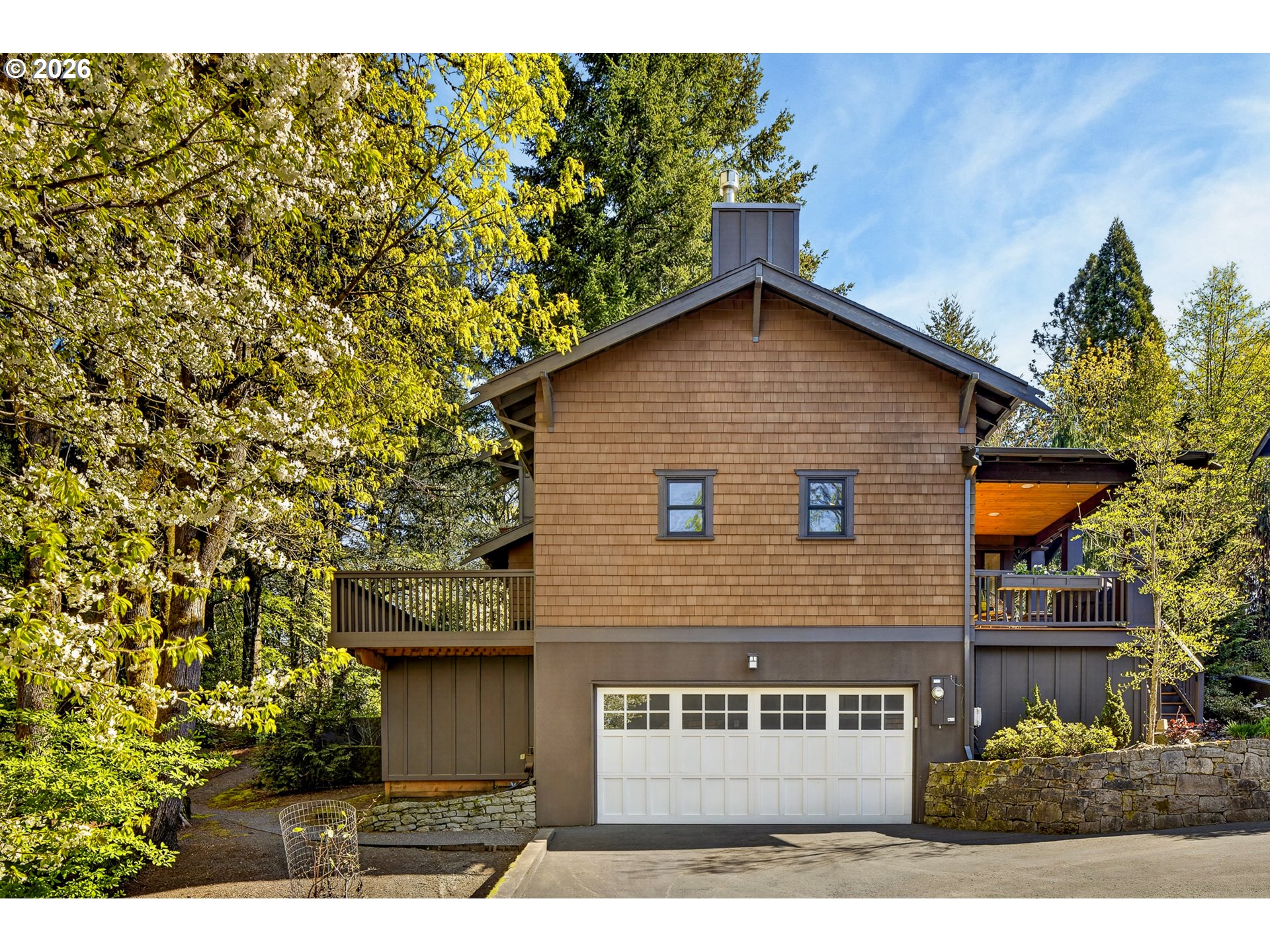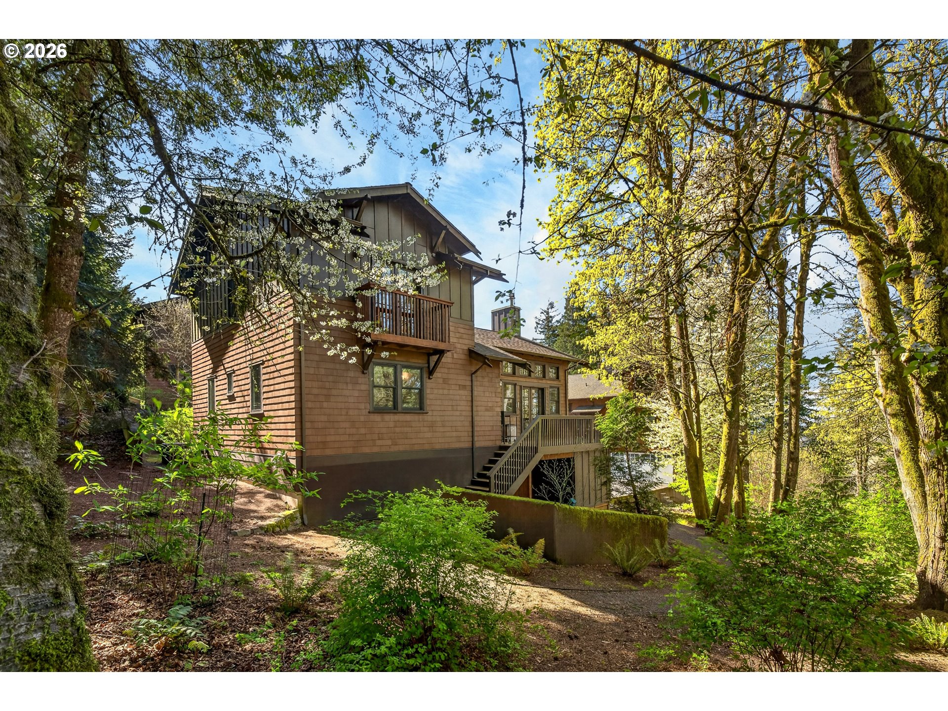 Perched at the edge of Forest Park - one of the country’s largest urban parks with over 5,200 acres and 80 miles of trails - and mere minutes from all of the shopping, dining and entertainment venues of Portland’s vibrant NW District and Beaverton's thriving Cedar Hills and Cedar Mills districts, is a very special enclave of beautifully designed and exceptionally well-built detached condominiums known as Macleay Overlook. With Forest Park as its backdrop, nature and serenity are woven into the fabric of this community and into the design of each individual home. With soaring, vaulted ceilings and walls of windows, natural, filtered light and tranquil forest views permeate every inch of this three-bedroom, two-bathroom urban sanctuary. The main floor living areas, thoughtfully appointed with timeless, tasteful, quality finishes, are open yet intimate. The kitchen features a large center island with slab, honed granite countertops and bar seating, open to distinct living and dining spaces. Upstairs, the primary suite features more vaulted ceilings, a private balcony, ensuite bathroom, walk-in closet, and a built-in desk/office area. Downstairs, the lower-level family room is designed for fun and entertaining, complete with its own kegerator and beverage cooler - ideal for recreation, workouts, or hosting friends. A variety of outdoor spaces — from the spacious covered front porch to the large, uncovered deck off the kitchen and living room, to the private primary balcony — provide year-round enjoyment and connection to nature. Here you can enjoy all the benefits of space, privacy, and outdoor living without the burden of landscape maintenance. Quick, easy trips into Beaverton, downtown Portland, Slabtown and the Alphabet District will satiate all your urban cravings, and the sights and sounds of Forest Park - with one of its many trailheads less than a quarter mile away - will soothe your soul. [Home Energy Score = 2. HES Report at https://rpt.greenbuildingregistry.com/hes/OR10202769]