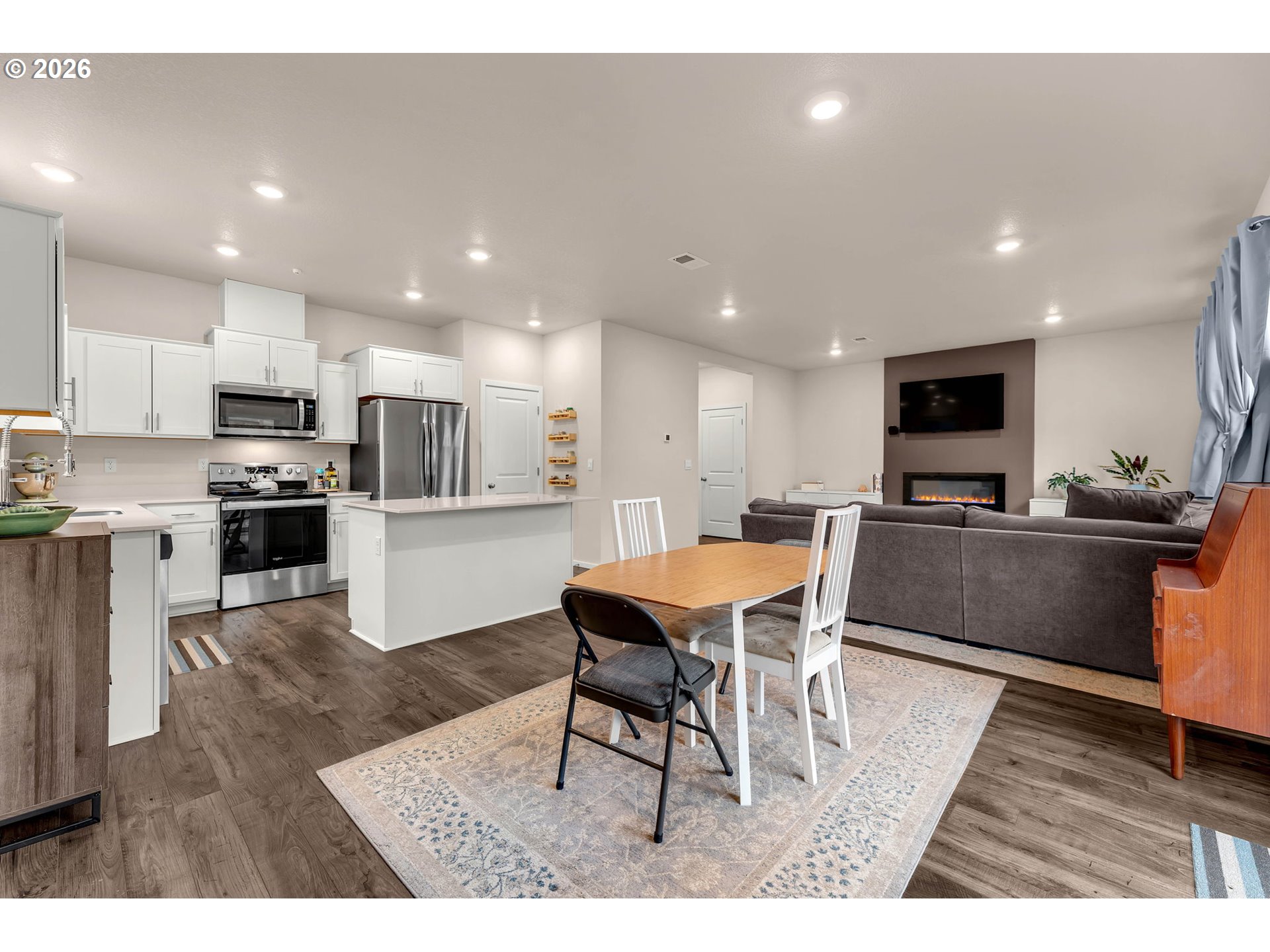 Enjoy the ease, comfort, and uplifting feel of this beautifully built, nearly new home in the welcoming community of Telford Estates. Thoughtfully designed for modern living and just three years old, this quality residence greets you with soaring ceilings, abundant natural light, and an open floor plan that creates a bright, cheerful sense of space. The main level features a generous great room centered around a cozy fireplace—perfect for gathering or relaxing—along with a versatile den ideal for a home office, reading nook, or guest space. Upstairs, four spacious bedrooms provide room for everyone, plus a conveniently located laundry room and a well-appointed full bath. The serene primary suite offers a peaceful retreat with a spa-inspired ensuite featuring quartz countertops, double sinks, a walk-in shower, and an expansive walk-in closet.At the heart of the home is a beautifully designed kitchen with quartz counters, stainless steel appliances, a large island with eating bar, and a generous pantry—perfect for everyday living or hosting friends and family. The adjoining dining area opens directly to the patio and peaceful backyard, creating a wonderful setting for summer evenings, outdoor dining, and relaxed al fresco living. Telford Estates offers a friendly neighborhood feel with easy access to parks, shopping, and dining, making daily life both comfortable and convenient. You’ll appreciate being just minutes from local amenities—and about 8 minutes to Trader Joe’s—so errands, groceries, and weekend treats are always close to home. This home blends comfort, style, and location in a way that makes everyday living feel just a little brighter.