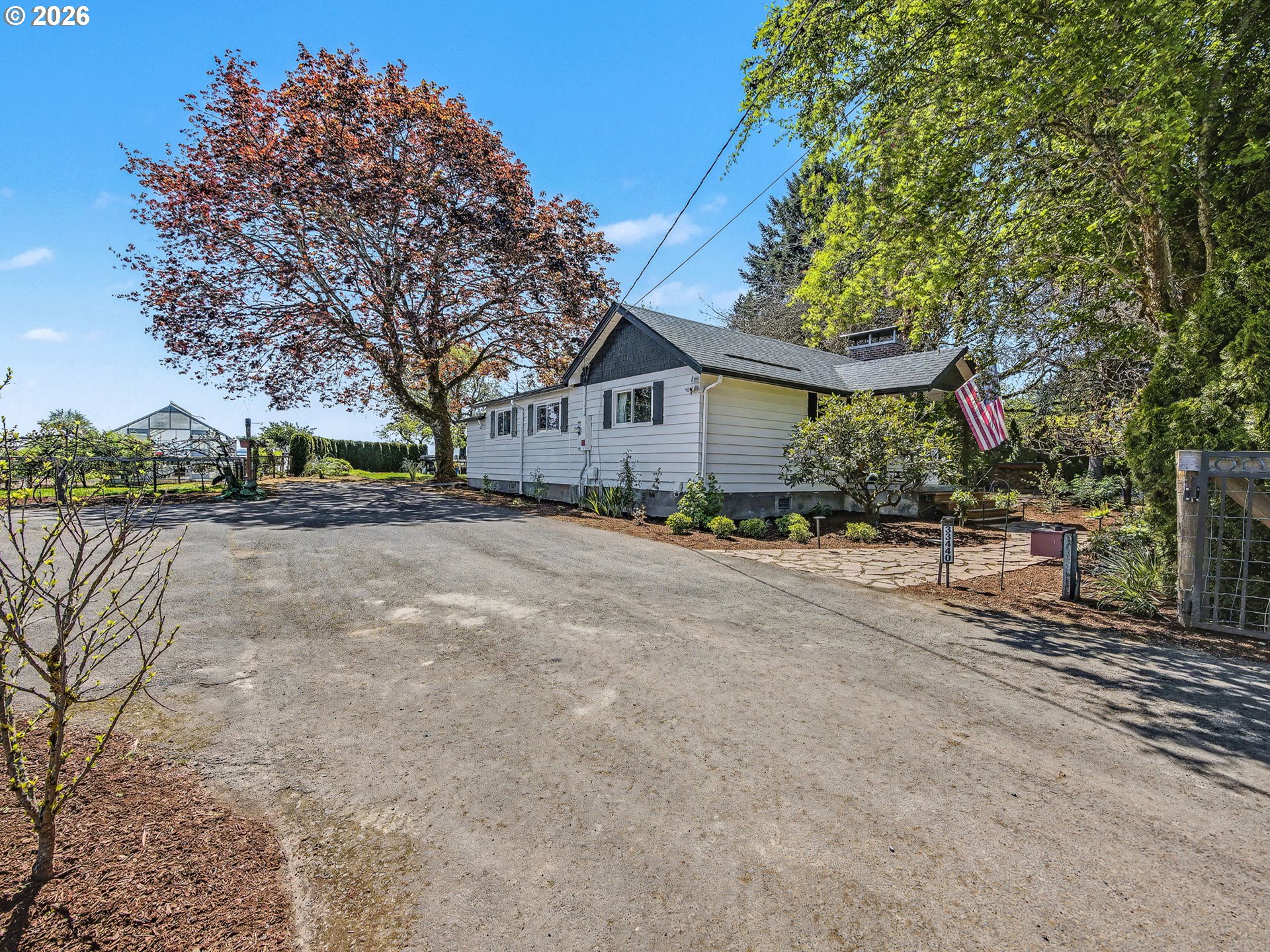 A rare opportunity to live immersed in beauty, abundance, and thoughtful design. This beautifully remodeled home blends modern comfort with timeless craftsmanship—featuring a new roof, vinyl windows, PEX plumbing, certified wood stove with new chimney, and stunning custom cabinetry with soft-close doors and dovetail joints. Save hundreds of dollars a year with the paid off solar panels. The kitchen is both functional and striking with granite counters featuring garnet accents, stainless steel appliances, double oven, built-in microwave with retractable hood, and a bespoke spice and grain wall design. The remodeled bath offers dual sinks with pull-down faucets, a walk-in shower, dual-flush toilet, and subtle automatic floor lighting. Central heat and A/C provide year-round comfort, with abundant storage including an outside pantry. Step outside and experience something truly special. Designed with intention, the grounds offer extensive artistic landscaping with native plants, heirloom peonies, herb and medicinal gardens, and expansive vegetable beds already producing. Enjoy a remarkable collection of fruit and specialty plants including Rainier cherries, espaliered fruit trees, kiwis, apples, currants, plums, elderberry, raspberries, blueberries, strawberries, rhubarb, black walnut, mature asparagus, garlic, lavender, and more—including wine grapes. A traditional greenhouse and large high tunnel support year-round growing. Additional features include a triple garage/shop with three bay doors and automatic openers (new roof and doors), separate guest quarters, fenced and cross-fenced pasture, irrigation system, multiple outdoor spigots, tool shed, paved driveway, gated entry, and privacy hedge and plenty of outdoor storage. The covered front and back porches provide practical year-round protection from the elements, while the gazebo becomes the perfect place to relax and take in the peaceful setting. A place to grow, gather, and truly live—this is more than a home