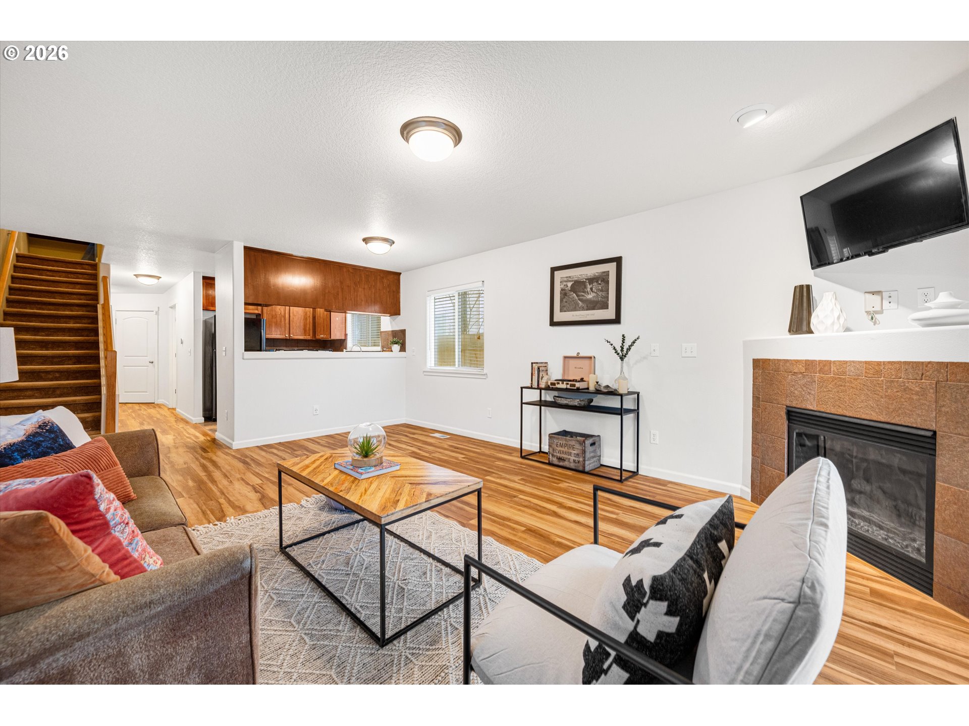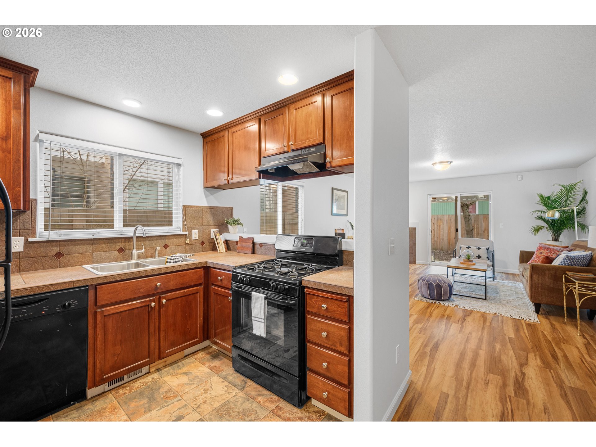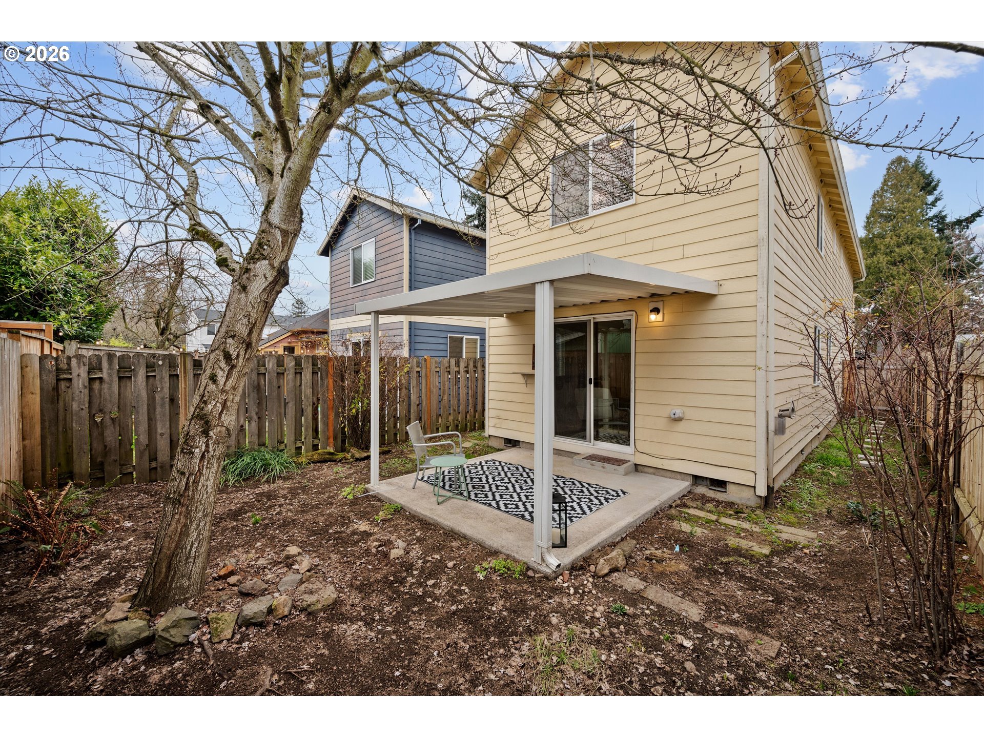 Enjoy comfort and style in the light filled newer construction home located in the thriving Kenton-Portsmouth neighborhood of North Portland. This move in ready home features an open-concept floor plan across its 1,464 sq ft. Thoughtfully designed with 3 spacious bedrooms and 2.5 baths, it is perfectly suited for modern living. The primary suite features a dramatic vaulted ceiling, en-suite bathroom, and 2 walk in closets. Enjoy indoor-outdoor living with a glass slider off the living area to your private fenced backyard oasis with a covered patio - perfect for summer entertaining or cozy year-round gatherings. Laundry room conveniently located on the main level with washer and dryer included. Large 465 SF garage with EV Charger. Excellent location just blocks to Downtown Kenton, Overlook, and Arbor Lodge. 5 public parks within a mile and some of the top rated schools in the area.