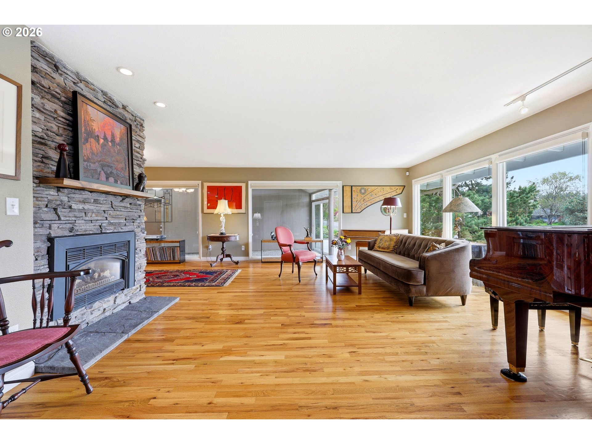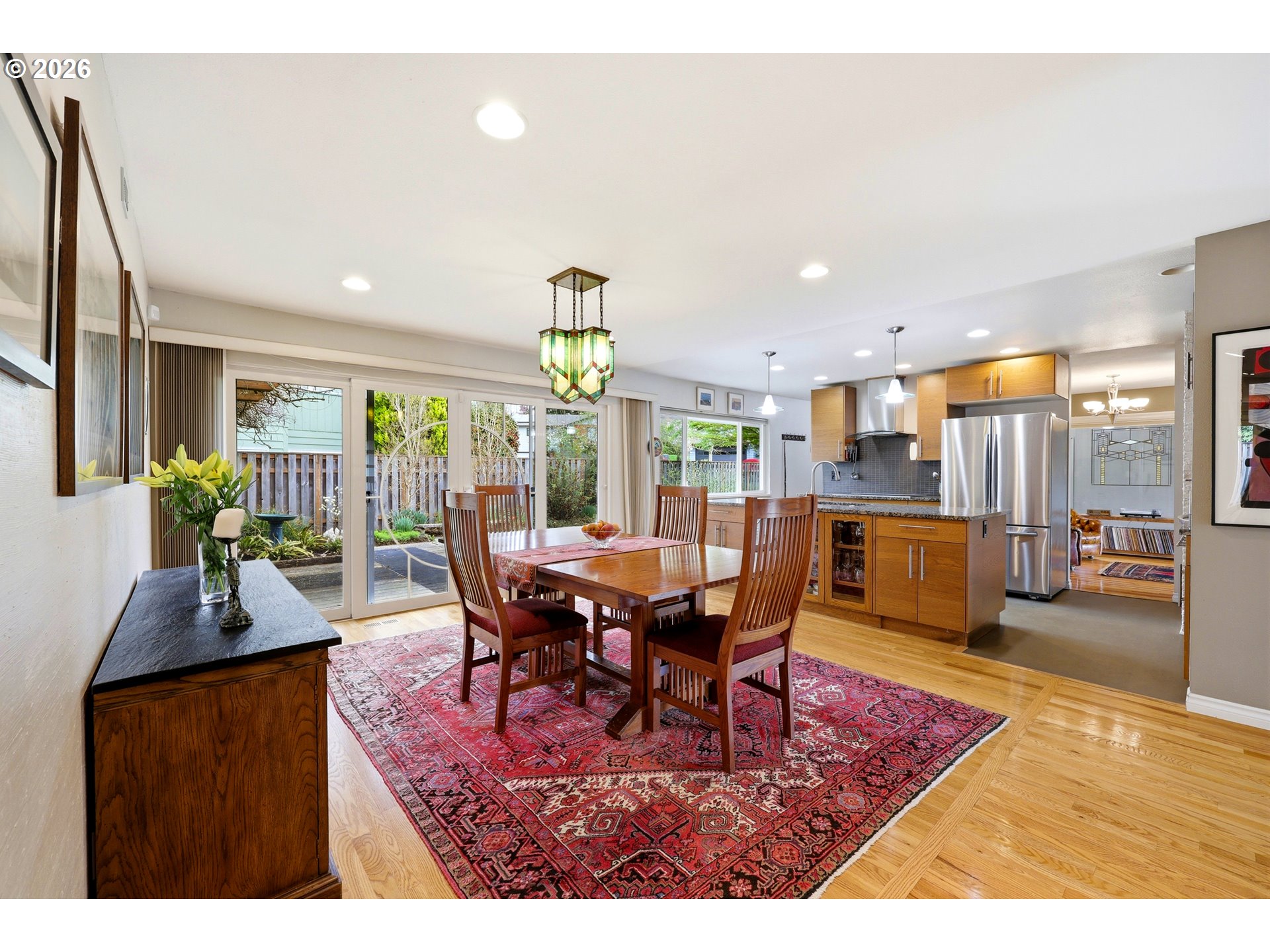 Spacious mid-century in sought-after Reedwood on a corner lot! This well-maintained home features 4 bedrooms, 3 baths and flexible living space throughout. Bright main level with generous living areas, gas fireplace and large picture windows overlooking an enclosed breezeway. Chef’s kitchen with induction cooktop and abundant storage opens to dining with sliders to a large patio and mature, fenced backyard—perfect for entertaining. Primary suite offers French doors to a private outdoor retreat. Finished basement adds versatility with a second gas fireplace, family room and space for guests or a home office. Oversized 10,000 SF lot with room to garden, play, or expand. Attached garage and ample storage. Prime location in a special SE PDX mid century neighborhood near parks, schools, Reed College and Reed canyon, Rhododendron Gardens and neighborhood amenities—an incredible opportunity!