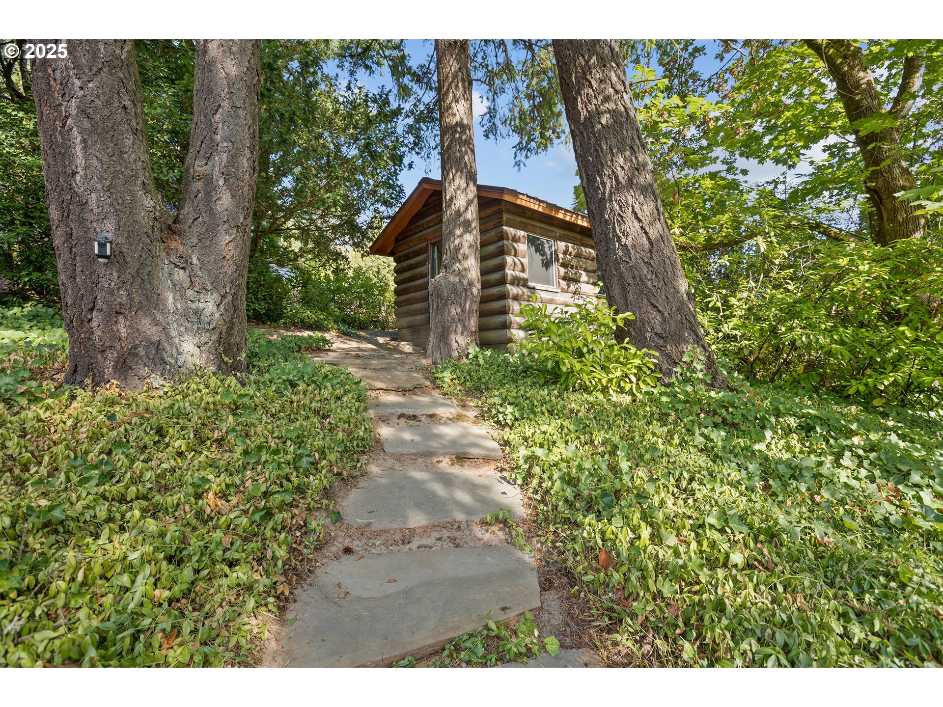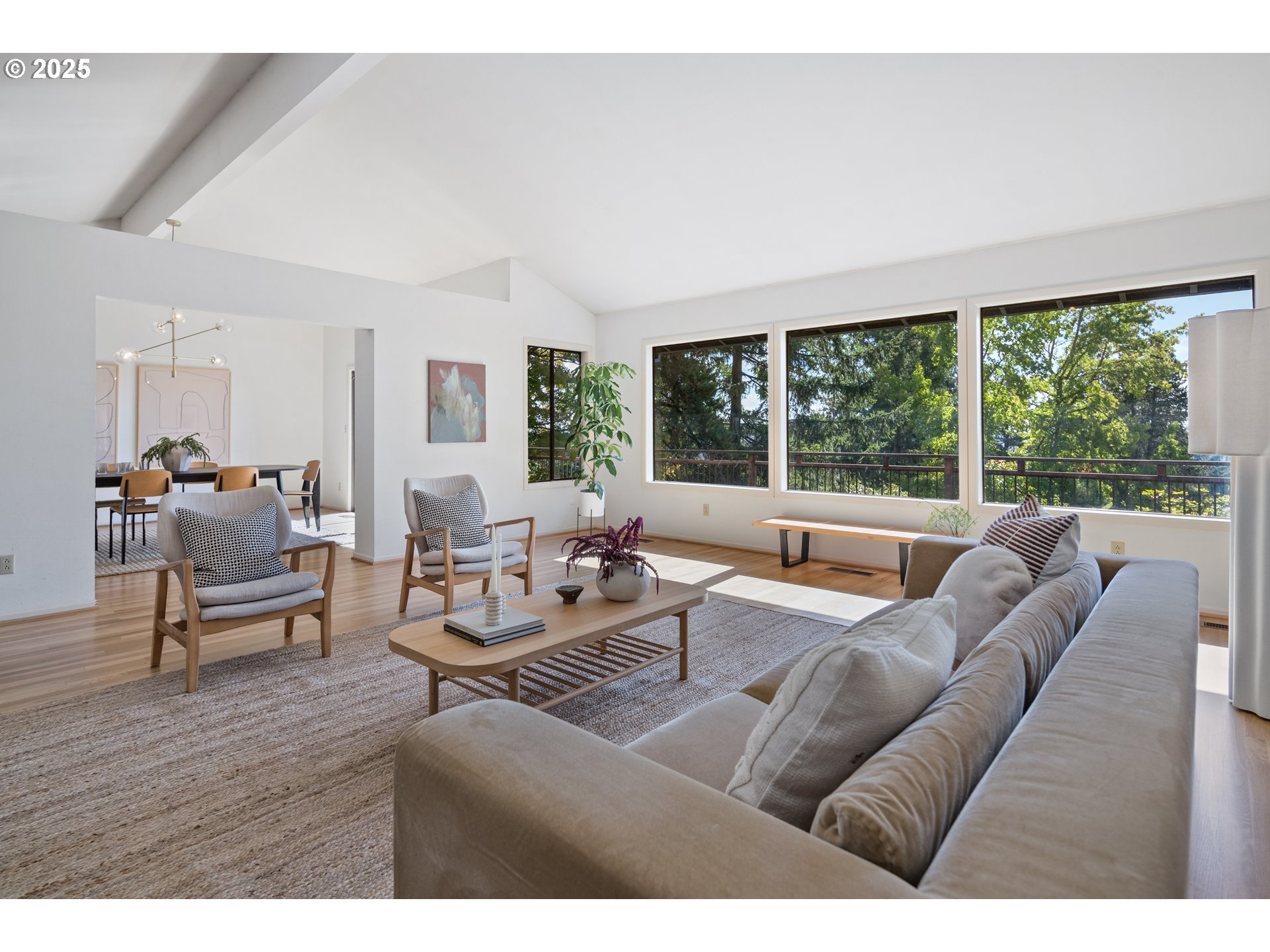 Set on nearly an acre of private, south-facing land, this beautifully updated mid-century home offers exceptional design, functionality, and breathtaking valley vistas. The thoughtfully designed floor plan provides mostly main-floor living, including generous living and dining areas, a spectacularly remodeled kitchen/family room, and three luxurious ensuite bedrooms. Perfectly suited for entertaining, the home seamlessly separates social and private spaces. On the lower level, discover a spacious great room, a fourth bedroom (no closet), a full bath, and a fun indoor pool with a sauna — ideal for year-round enjoyment. Outdoor living is just as impressive, with a large deck for gatherings, a sprawling backyard, and multiple serene spaces to relax and unwind. Additional features include electronic gate, abundant parking, detached boat garage, and a versatile outbuilding that is perfect for a home office or studio space. Tesla charge in the garage is included. Lot may be divided - possible to build another home,, buyer to perform due diligence. [Home Energy Score = 2. HES Report at https://rpt.greenbuildingregistry.com/hes/OR10184129]