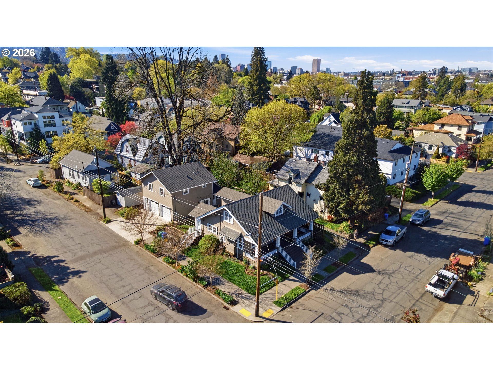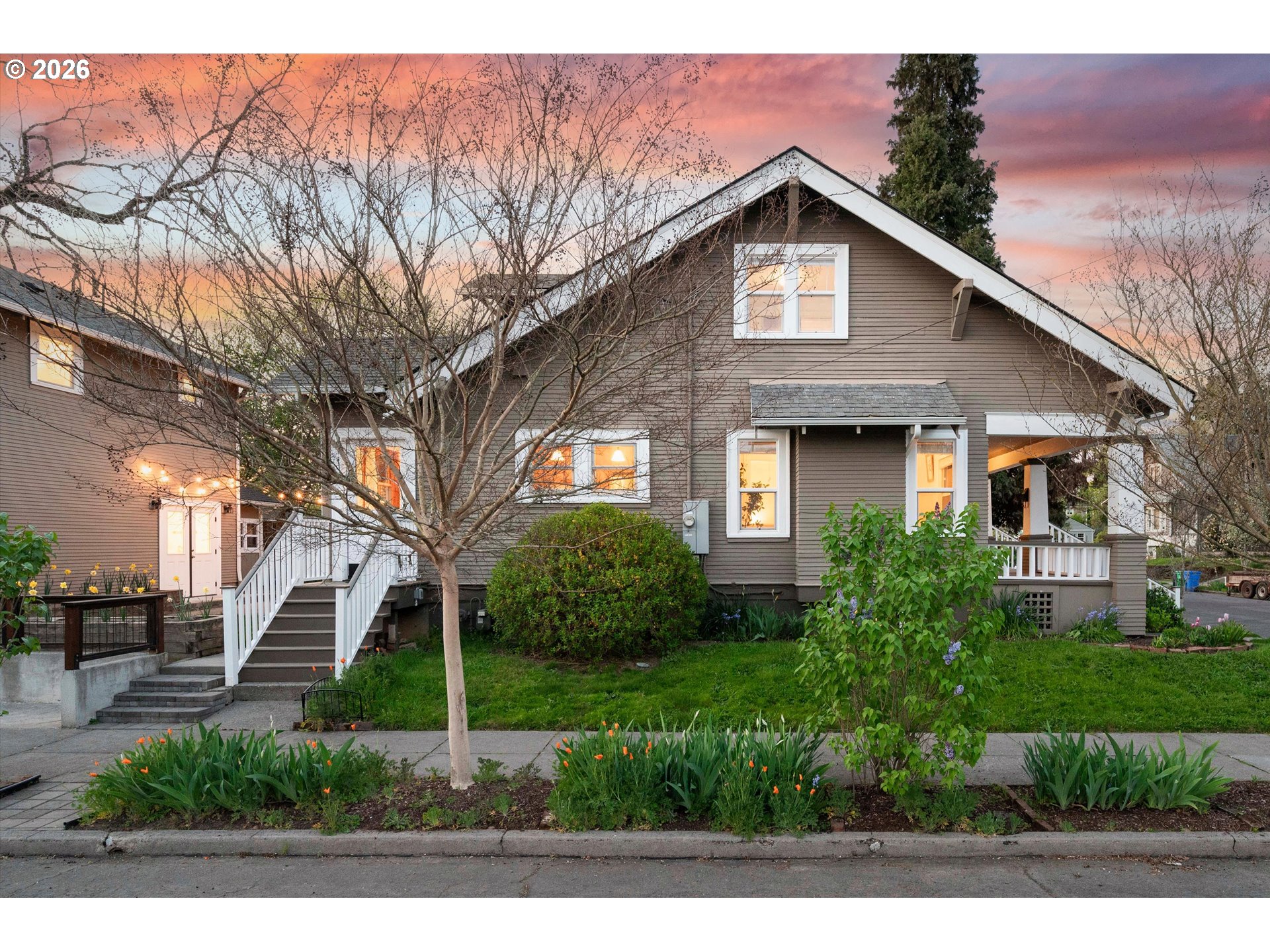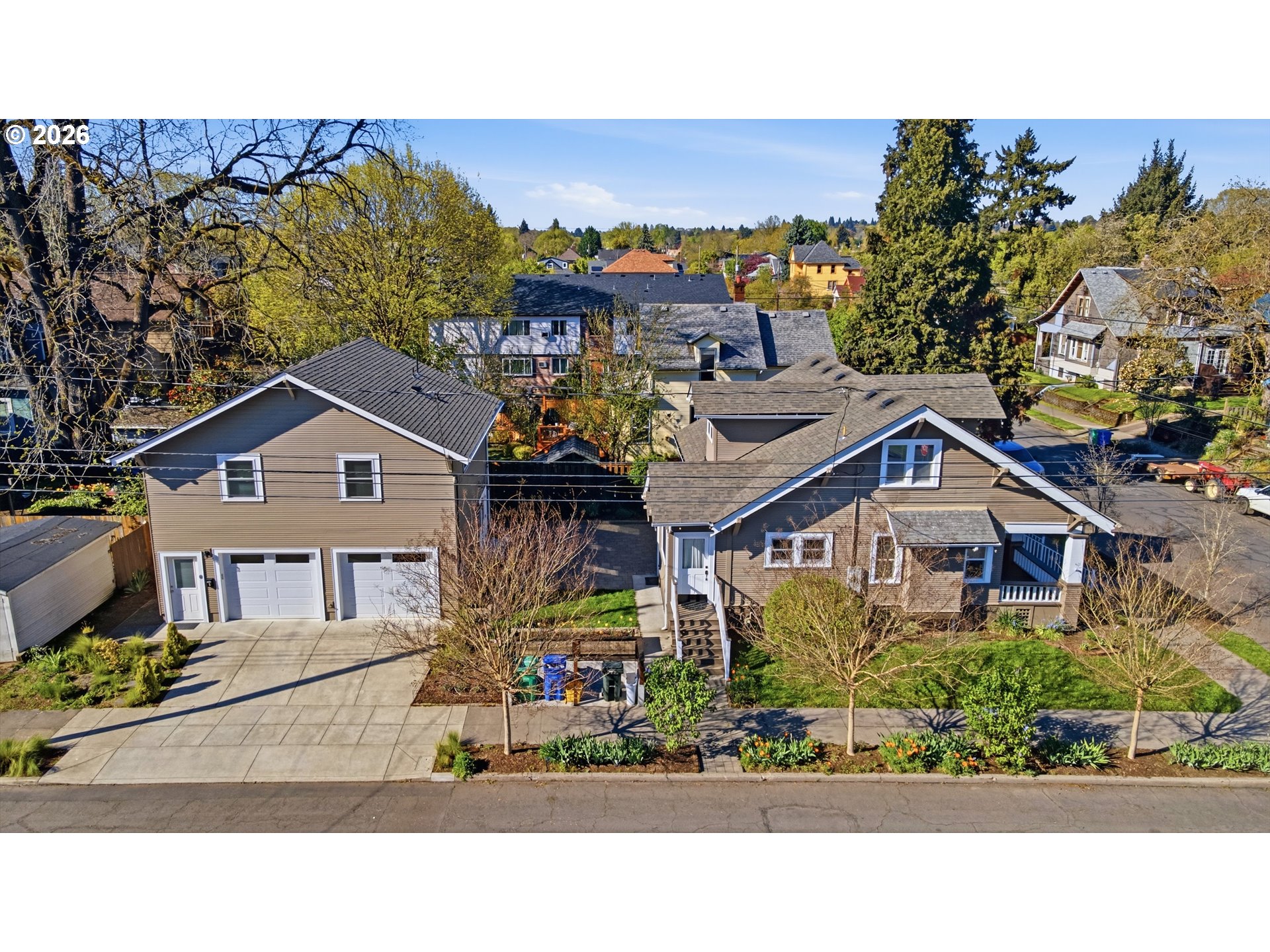 Brooklyn beauty that truly has you at hello, set on a corner lot with a welcoming front porch and that classic SE Portland feel in one of the city’s most central locations. Inside, there isn’t a surface that hasn’t been touched. This home has been extensively remodeled with a level of craftsmanship you can feel, thanks to a longtime carpenter owner, especially in the kitchen where custom all-wood cabinetry, soft-close hinges, full-extension drawers, and thoughtful built-ins for everything from recycling to small appliances make everyday living incredibly functional. The kitchen and main bath were fully remodeled, and major system updates include electrical and plumbing upgrades, a tankless water heater, serviced HVAC, and newer stainless steel appliances including a recently updated refrigerator. Both sides of the roof have been replaced, offering added peace of mind, and the home blends its 1914 character with modern updates seamlessly, from crown molding and built-ins to dimmable lighting and smart storage throughout. Upstairs features new carpet and added built-in storage, while the main living spaces offer warmth and flexibility with timeless details. Outside, the backyard is dialed with hardscaping, pavers, raised garden beds, drip irrigation, and established plantings, creating a private and usable outdoor space. A standout feature is the detached two-car garage built in 2021 with a one-bedroom ADU above, offering flexibility for rental income, guests, or a work-from-home setup, complete with its own kitchen, full bath, walk-in closet, laundry, and strong rental history. All of this just moments from neighborhood coffee shops, restaurants, parks, and great schools including Winterhaven School, plus local favorites like the Aladdin Theater.