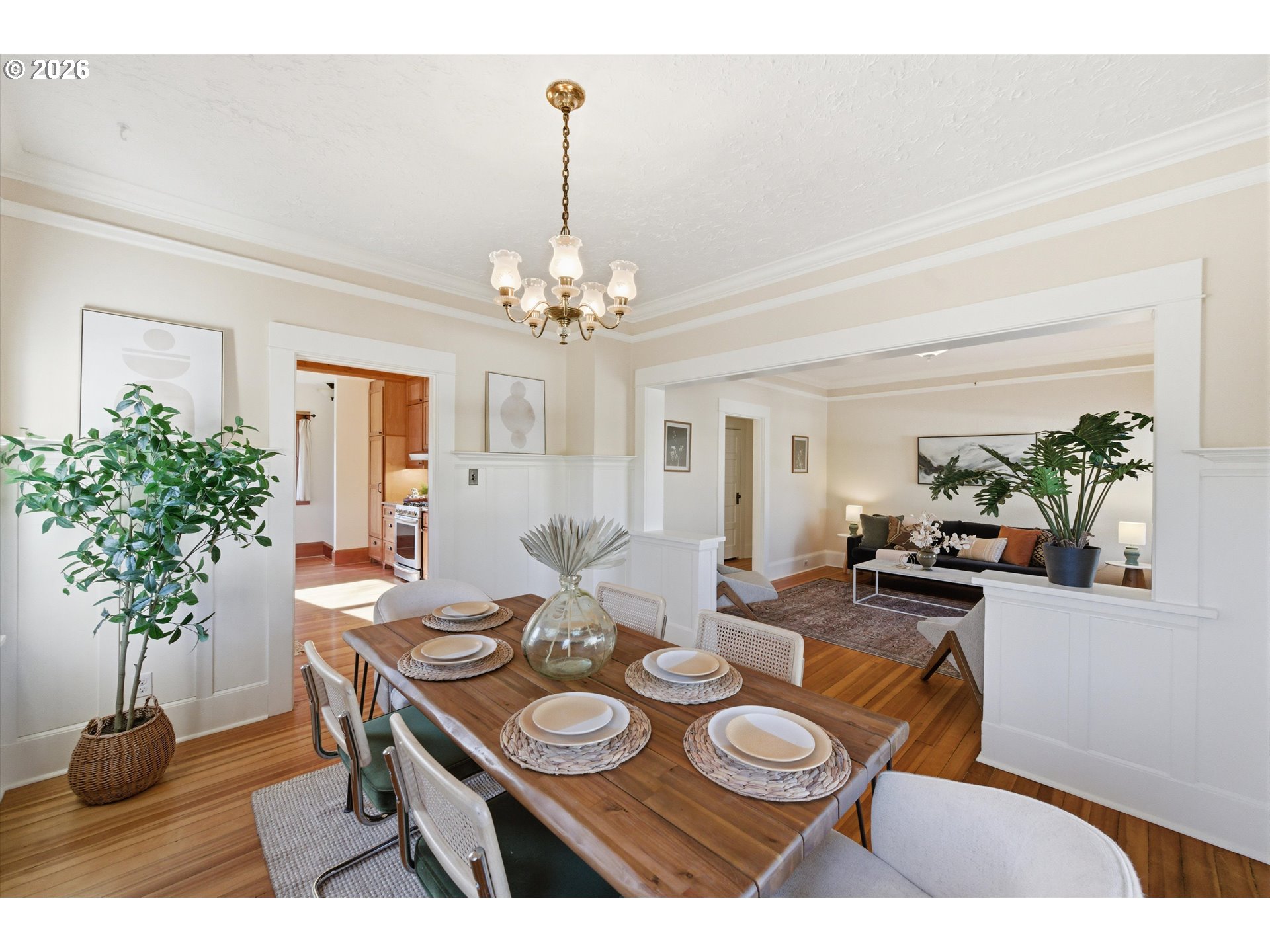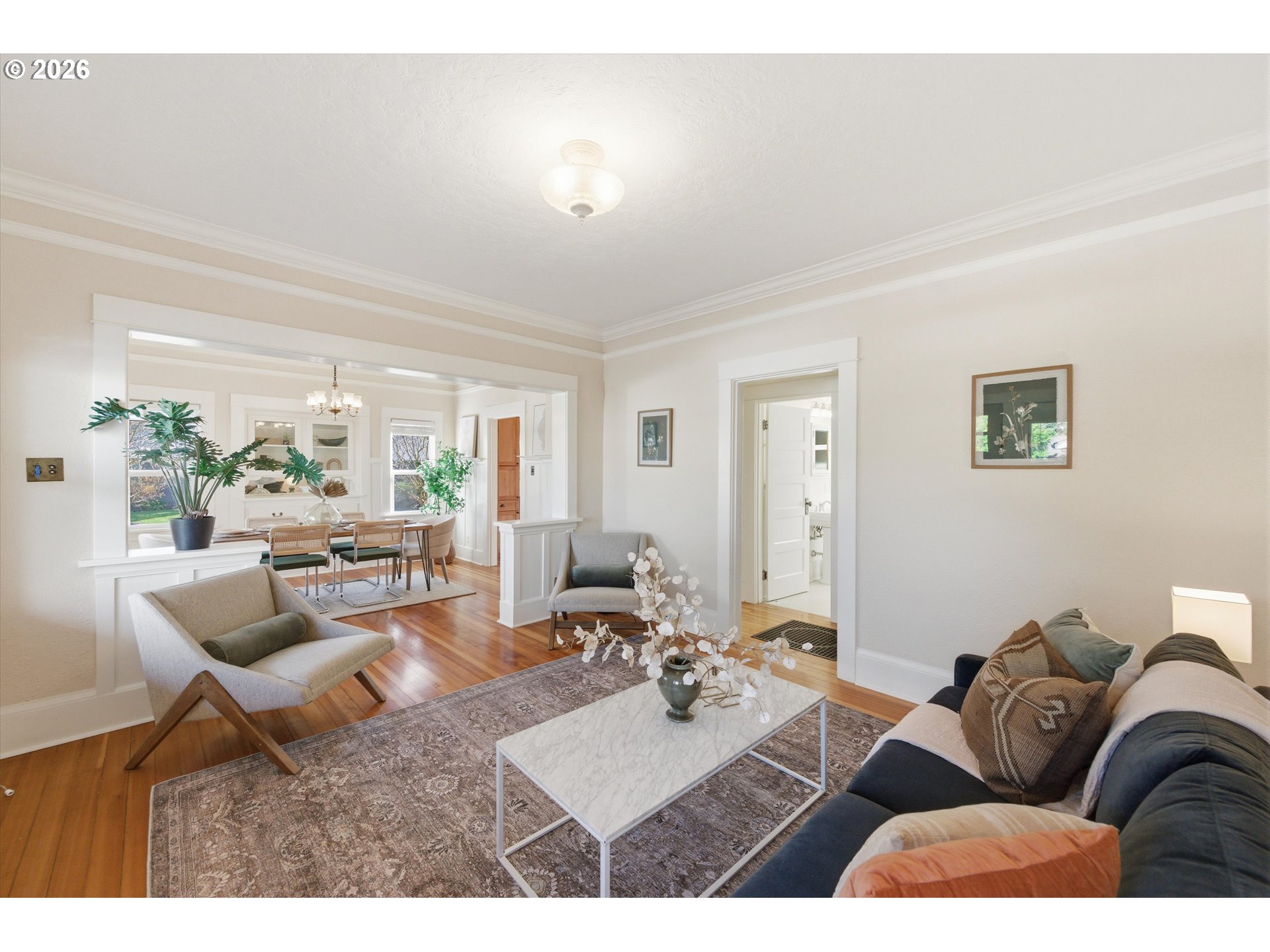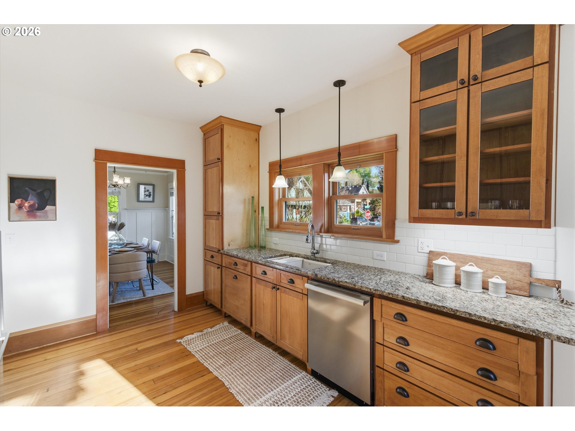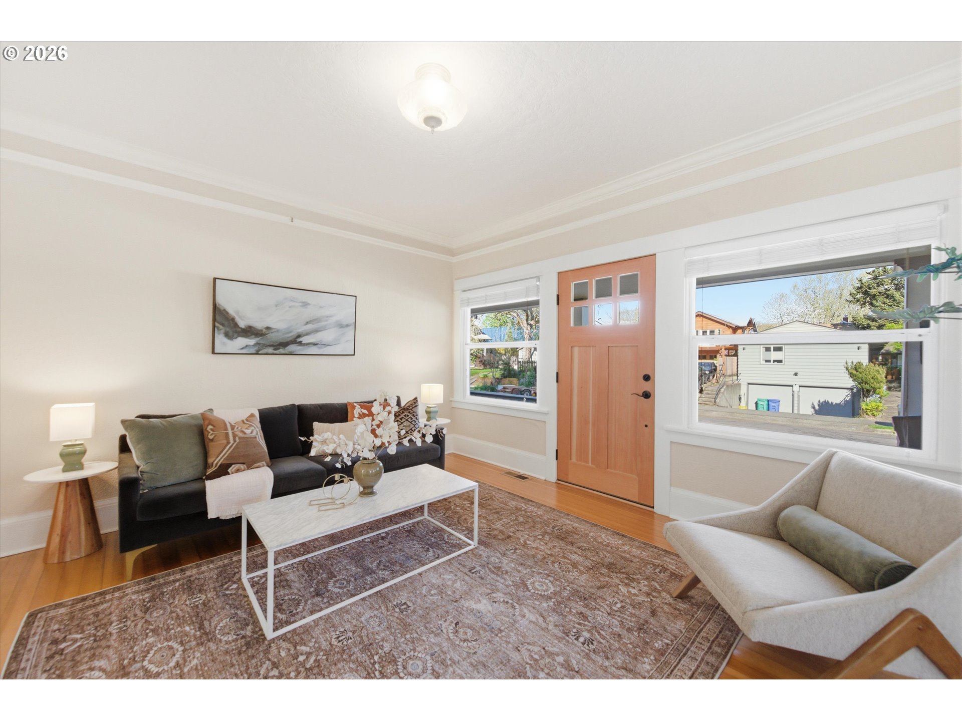 Brooklyn beauty that truly has you at hello, set on a corner lot with a welcoming front porch and that classic SE Portland feel in one of the city’s most central locations. Inside, there isn’t a surface that hasn’t been touched. This home has been extensively remodeled with a level of craftsmanship you can feel, thanks to a longtime carpenter owner, especially in the kitchen where custom all-wood cabinetry, soft-close hinges, full-extension drawers, and thoughtful built-ins for everything from recycling to small appliances make everyday living incredibly functional. The kitchen and main bath were fully remodeled, and major system updates include electrical and plumbing upgrades, a tankless water heater, serviced HVAC, and newer stainless steel appliances including a recently updated refrigerator. Both sides of the roof have been replaced, offering added peace of mind, and the home blends its 1914 character with modern updates seamlessly, from crown molding and built-ins to dimmable lighting and smart storage throughout. Upstairs features new carpet and added built-in storage, while the main living spaces offer warmth and flexibility with timeless details. Outside, the backyard is dialed with hardscaping, pavers, raised garden beds, drip irrigation, and established plantings, creating a private and usable outdoor space. A standout feature is the detached two-car garage built in 2021 with a one-bedroom ADU above, offering flexibility for rental income, guests, or a work-from-home setup, complete with its own kitchen, full bath, walk-in closet, laundry, and strong rental history. All of this just moments from neighborhood coffee shops, restaurants, parks, and great schools including Winterhaven School, plus local favorites like the Aladdin Theater.