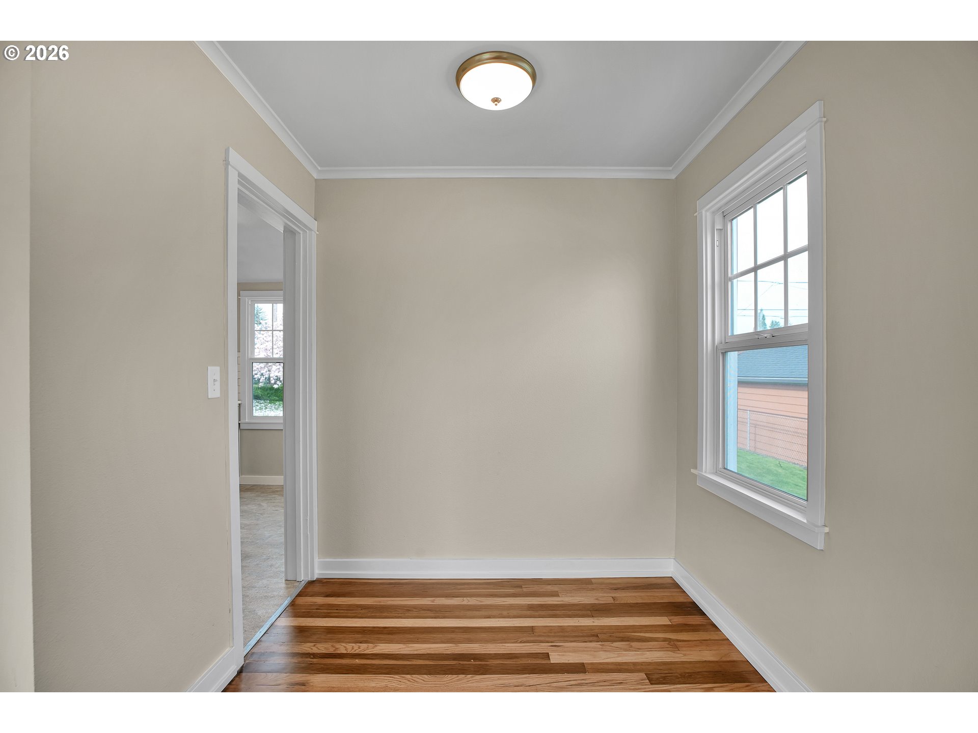 Turnkey Cottage! Storybook charm meets modern living in this beautifully renovated property, perfectly situated on an oversized, level lot. Offering 746 sqft, 2 bedrooms, and 1 bath, this thoughtfully updated home blends timeless character with desirable modern finishes. Step inside to the living room to discover gleaming hardwood floors, and new interior paint, while enjoying the view out of the picturesque large window. The renovated kitchen is a chef’s delight, showcasing new cabinetry, quartz countertops, stainless steel appliances, a custom tile backsplash, and refined contemporary finishes throughout. Recent improvements include a new roof, updated plumbing, and electrical. Plus, energy-efficient windows. The expansive lot offers a lush, grassy yard—ideal for relaxing, entertaining, gardening, or future possibilities. Walking distance to Parkrose Middle & High School along with community parks. Conveniently located close to shopping, amenities, major commuter routes, this home offers the perfect balance of tranquility and accessibility. Every detail has been carefully curated to create a move-in-ready home with both comfort and appeal. A unique opportunity to own a modern cottage where charm meets effortless living, both inside and out.