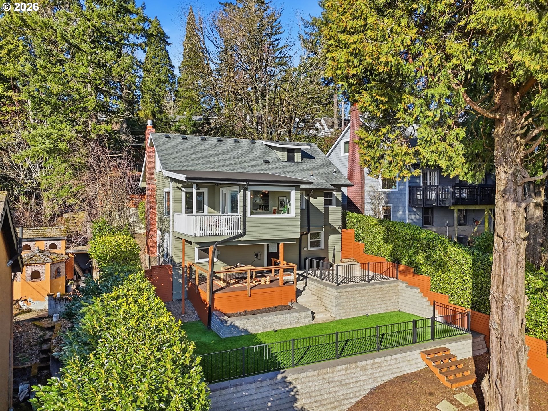 This is one of those Portland homes that simply feels special. Built in 1925 and a long-time home to an artist, this Portland classic blends creative history with thoughtful modern updates and sweeping views. While Patton Road sees moderate activity, the experience changes immediately upon entry. The home feels quiet, warm, and inviting, with cozy rooms, layered textures, a gas fireplace, and the comfort of a gas furnace paired with a ducted heat pump providing efficient heating and air conditioning. Everything you need is on the main level, with beautiful tree and valley views throughout. Upstairs offers a cozy bedroom and family room, while the daylight basement expands the home with several finished living spaces and a bathroom. Outdoor living was a key focus in the renovation of this home. Step out from the lower level onto a spacious deck with elevated outlooks—perfect for relaxing or entertaining. A separate patio offers space for a fire pit or hot tub, while the fully-fenced terraced yard offers multiple usable levels for relaxation, play, or pets. Parking is easy with a private driveway that accommodates up to three vehicles. Rich with history, full of personality, and charming in the best Portland way, this home offers something genuinely special for buyers who value character and livable history.