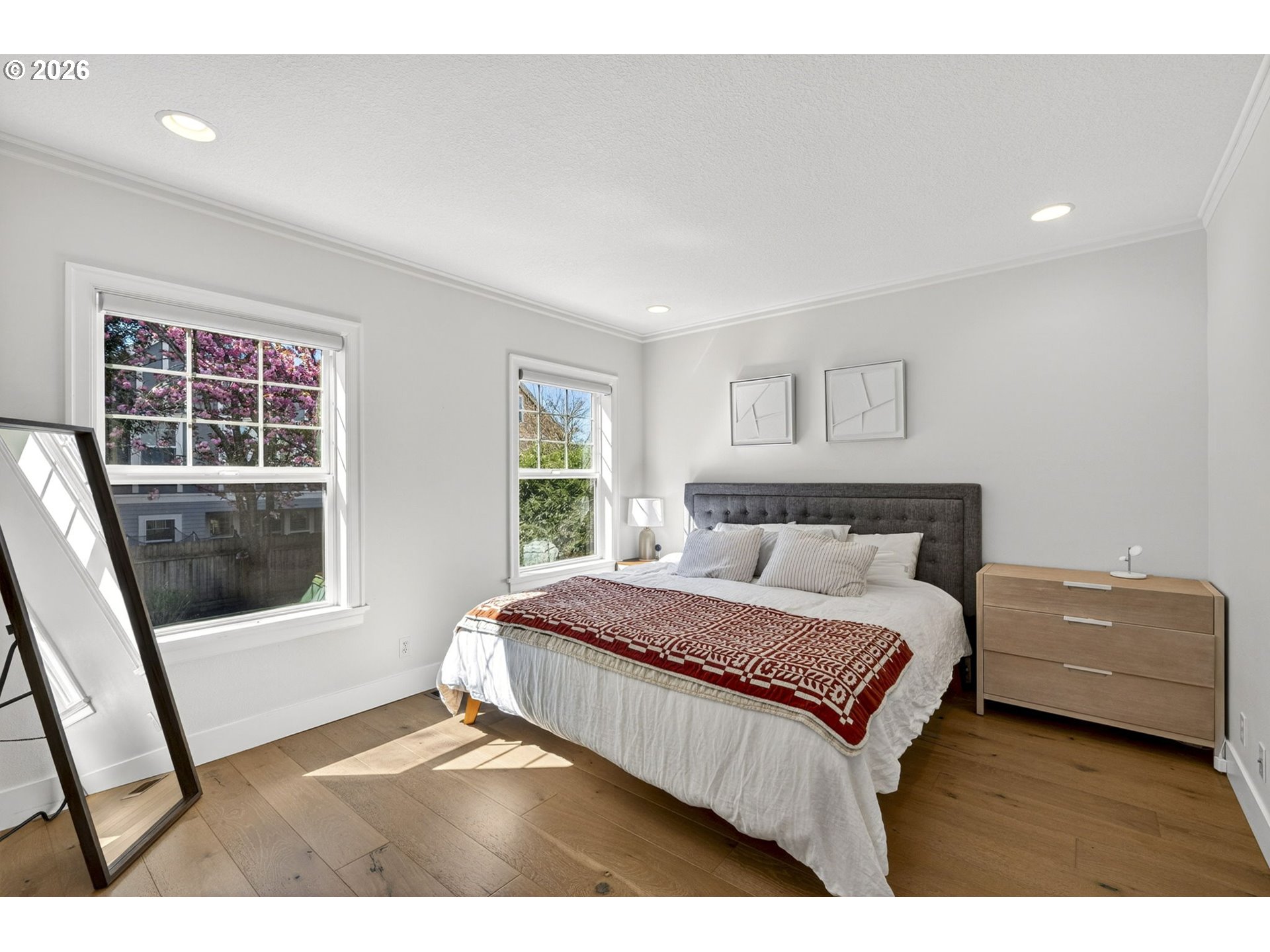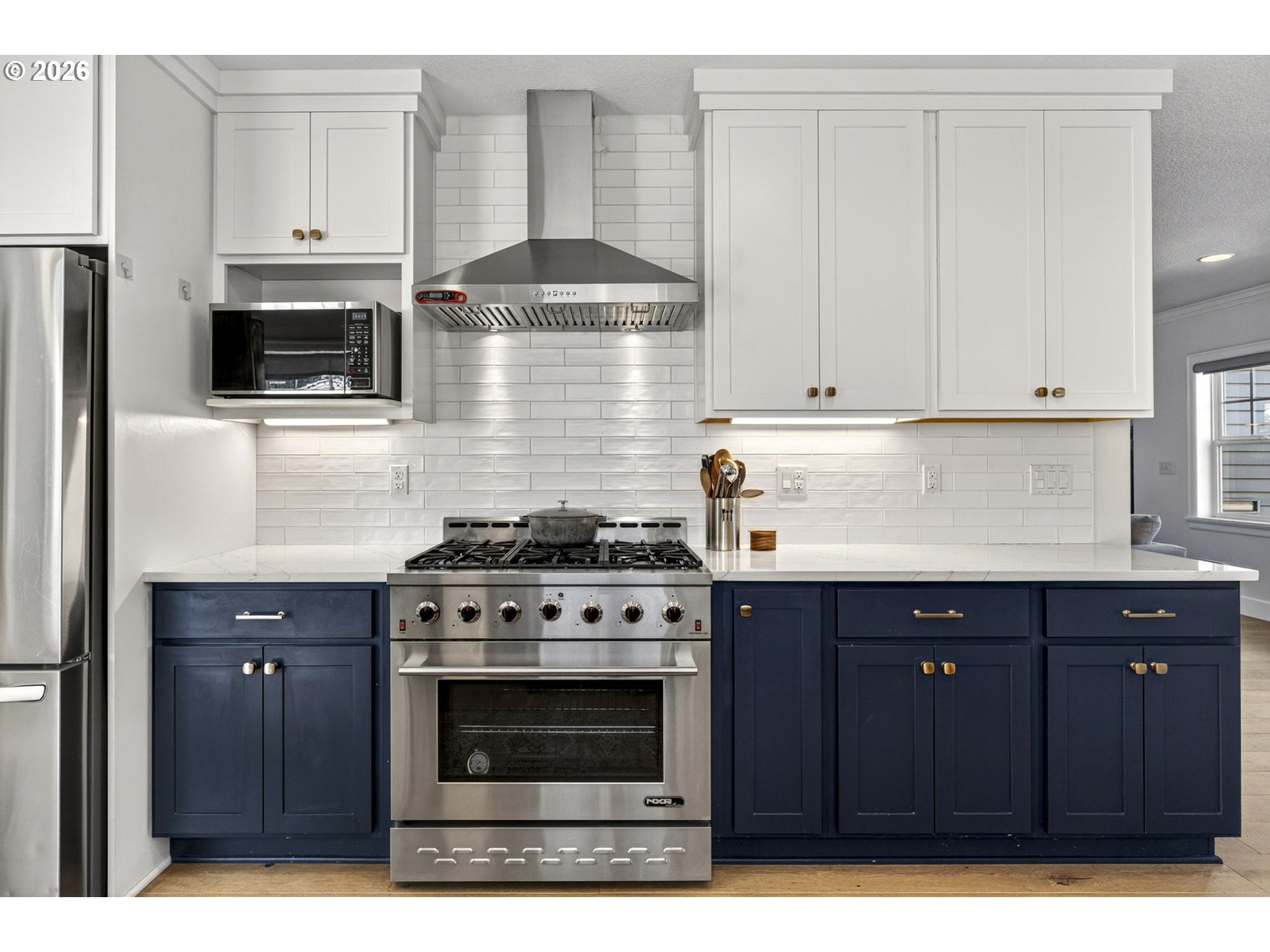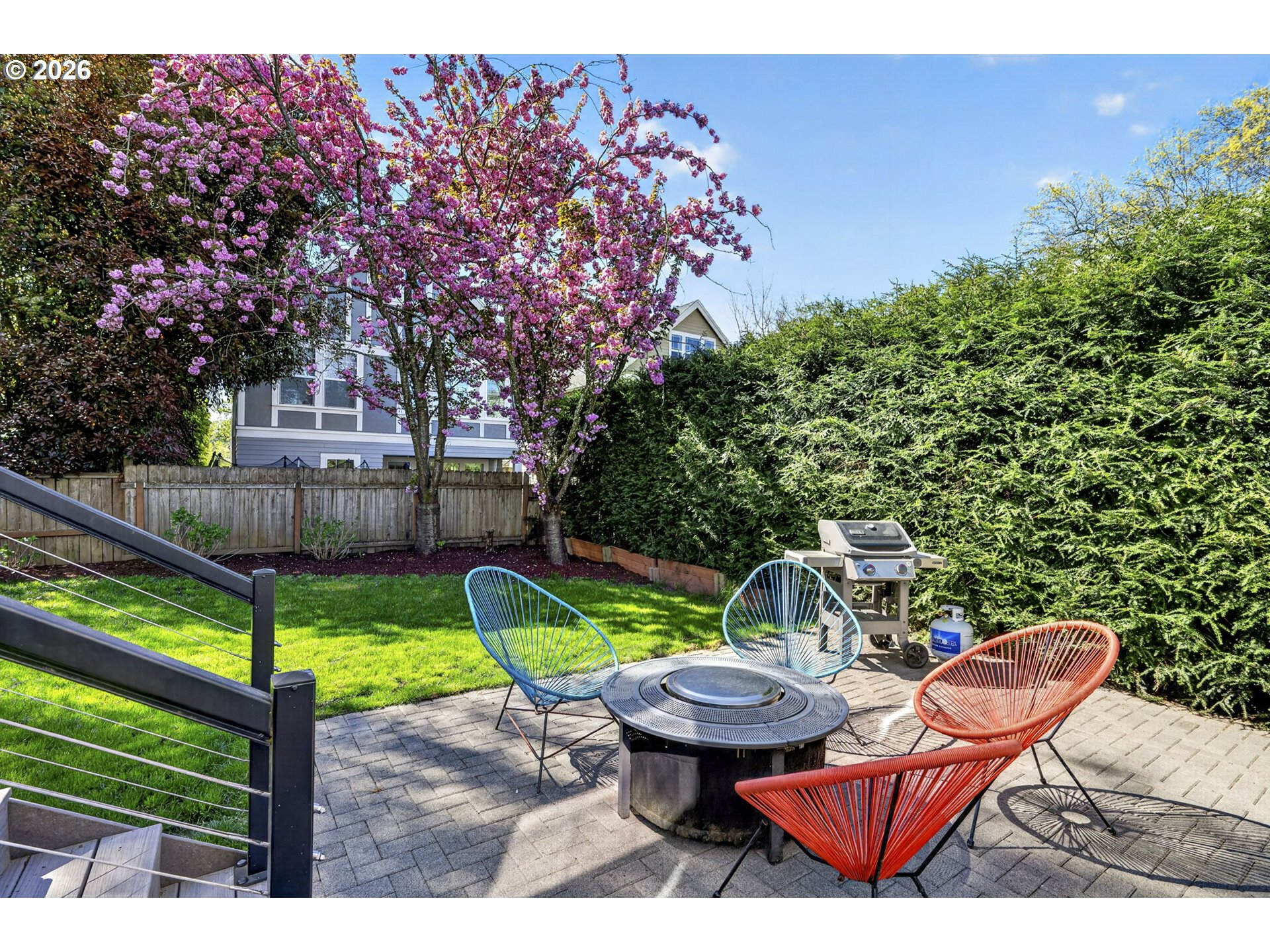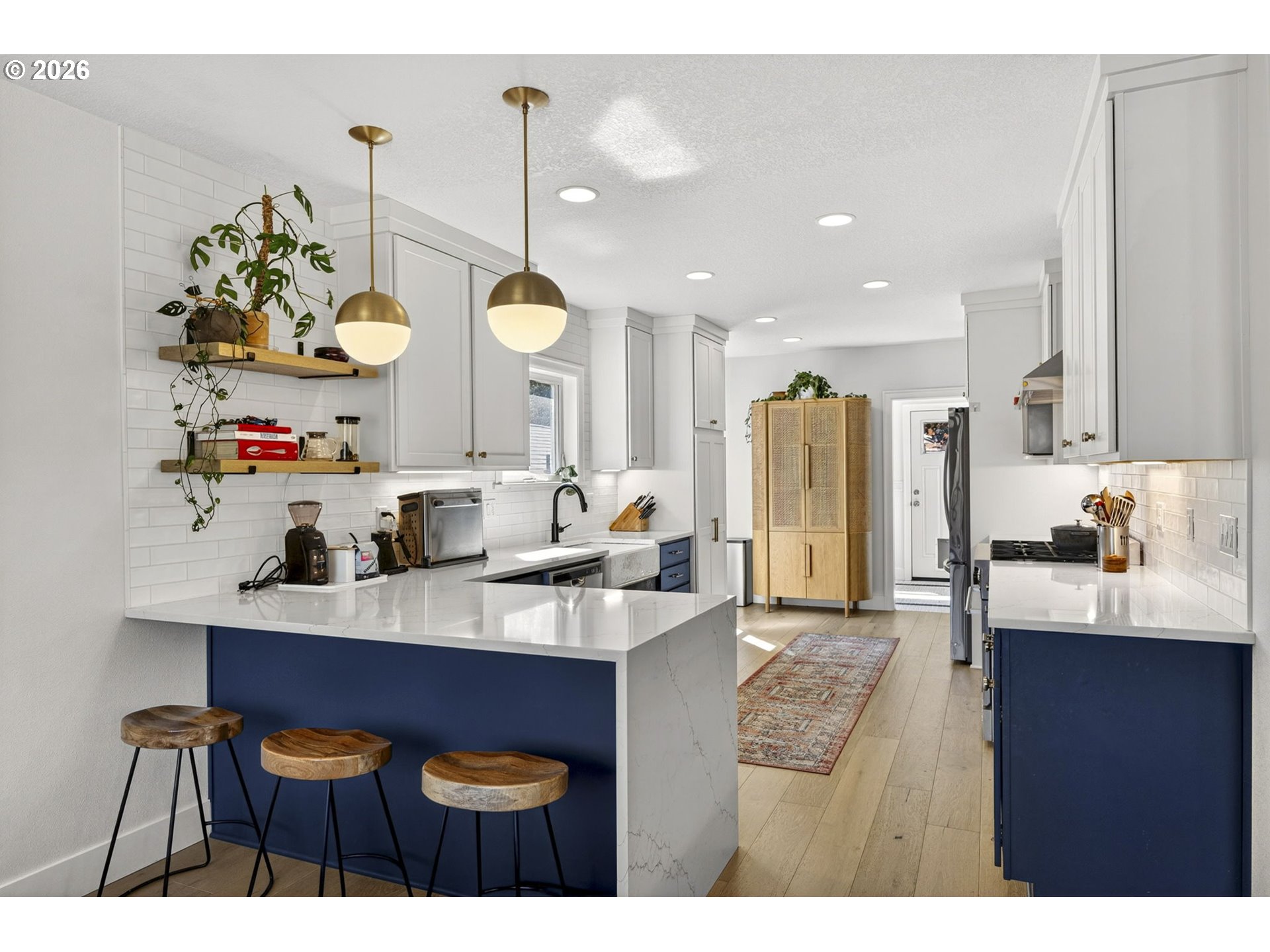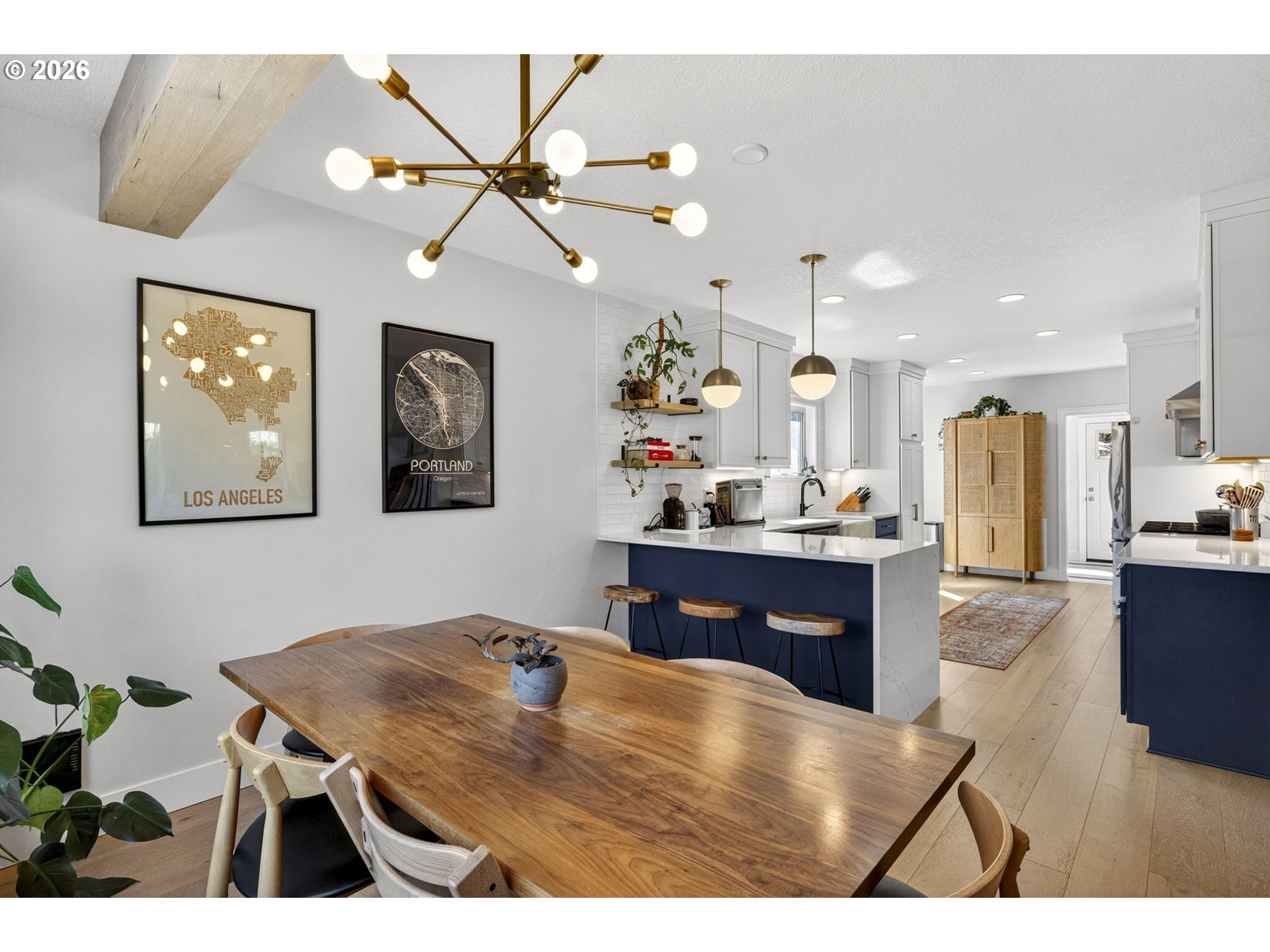 Nestled in one of Portland’s coveted neighborhoods, this Cape Cod–inspired home blends classic charm with thoughtful updates. Steep gables, dormer windows, and crisp white trim create timeless curb appeal, while a 2019 renovation refreshed nearly every surface inside. The wide-plank white oak floors and an open, airy layout set the tone for easy living and entertaining. At the center, the updated kitchen features new cabinetry, a quartz island with seating, subway tile backsplash, farmhouse sink, and updated lighting—flowing seamlessly into the living area anchored by a fireplace.The main-level primary suite offers convenience and comfort with an ensuite bath featuring a walk-in shower and double vanity. Upstairs, two additional bedrooms are complemented by a vaulted bonus room with dormers—ideal as a fourth bedroom, office, or media space. All bathrooms were updated in 2019, and new window treatments throughout add a cohesive, finished feel to the home. From the Trex deck to the paver patio with its perfect fire pit setting, this fully fenced backyard is made for summer nights and easy entertaining. Inside, you'll find peace of mind with a newer furnace (2023), central AC (2019), a dedicated laundry room, and an EV-ready tandem garage. In the coveted Duniway school district and conveniently located near Reed College, with easy access to the shops and restaurants in Woodstock and Sellwood.