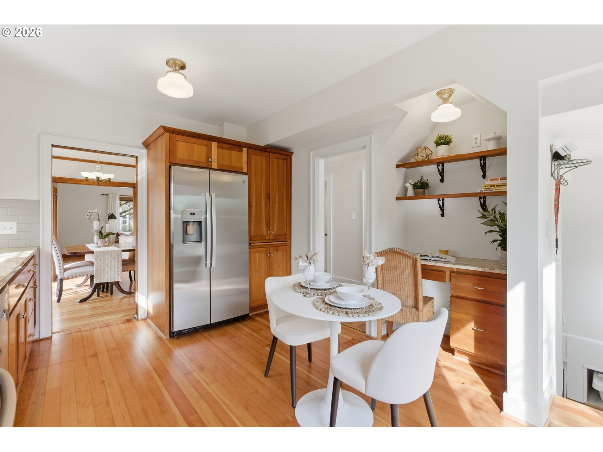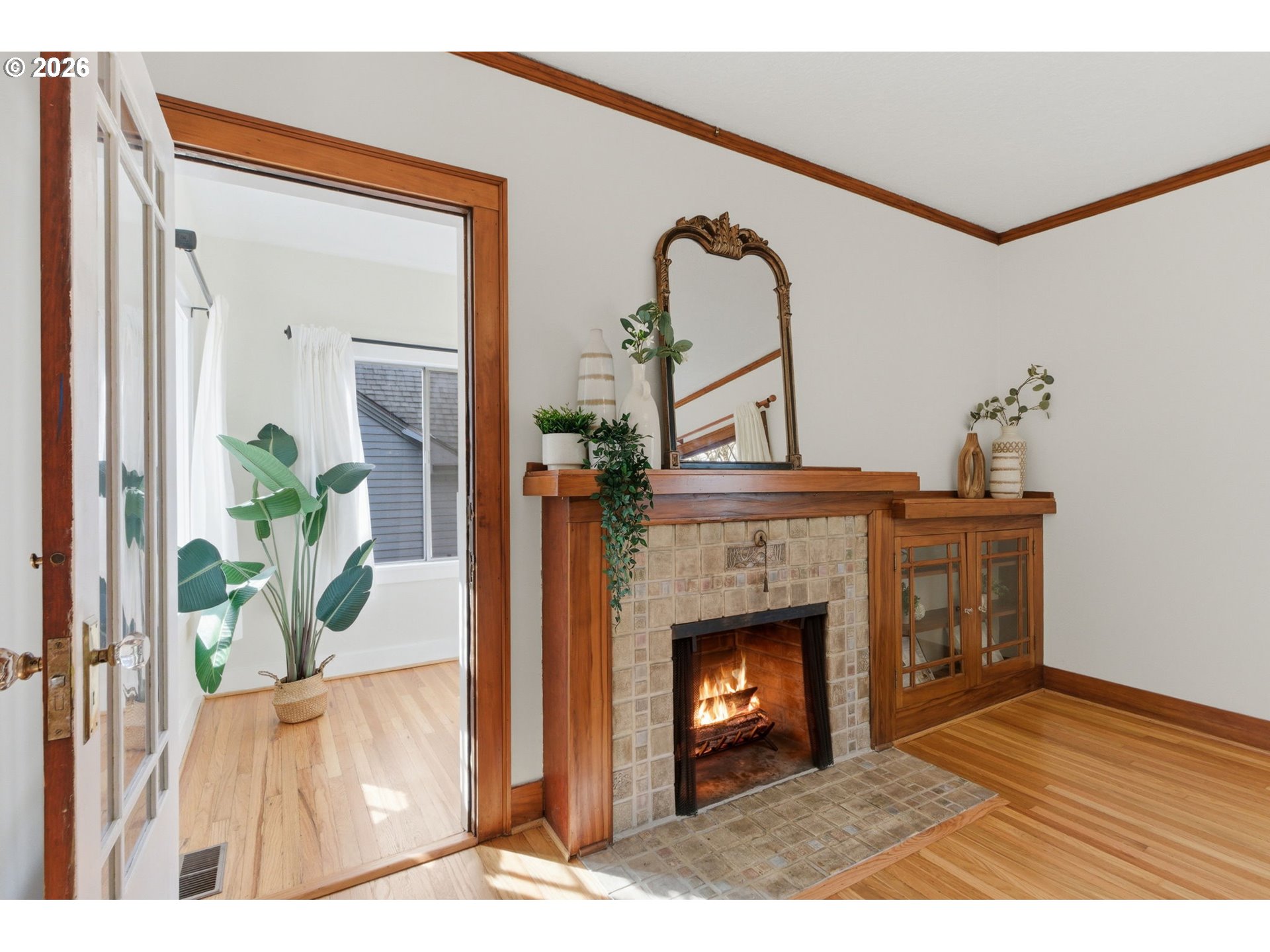 Pristine Alameda Tudor will wow you with its timeless charm and incredible upgrades. In the same family for 42 years, this cherished home has been meticulously cared for and it shows! Sunny and bright with newly-finished hardwood floors throughout the entire home. The gracious living room is centered around the original fireplace with vintage Batchelder tile, classic built-ins, and picture window. The sunroom is the perfect space for a home office, reading or play area. Stunning kitchen with custom wood cabinetry, granite countertops, updated appliances, pantry, and a built-in desk nook includes French doors that open to the patio and garden.Two bedrooms and a full bath on the main level offer wonderful flexibility. Upstairs, three bedrooms with oak hardwoods, and lots of storage. Spacious primary has an ensuite bath with a jetted tub, an incredible skylight, and a double vanity. There's even plumbing brought up for a 2nd bath on this floor! Major updates provide peace of mind for many years to come: New 25-year roof & gutters (2023), new sewer line (2024), decommissioned oil tank (2024), new water heater (2023), newer furnace (2021), ext paint (2024), updated electrical panel, and more.The backyard is a magical oasis, especially on summer nights. Gardeners will swoon for the incredible array of plants,mature blueberry bushes, and flowers all thoughtfully curated and cultivated with irrigation. Southern exposure. Perfect side yard for sun-loving tomatoes & veggies. Don’t miss the secret garden tucked away behind the oversized garage. This home is filled with many years of happy memories and ready for its next chapter. One of the best Portland neighborhoods: perfectly positioned to offer easy access to grocery, farmers markets, incredible parks, shops, and dining on Alberta, Fremont, or Broadway. These along with proximity to quality schools and simply enjoying the friendly neighbors all lend themselves to a quality of life that makes living in this house a real joy. [Home Energy Score = 1. HES Report at https://rpt.greenbuildingregistry.com/hes/OR10244180]