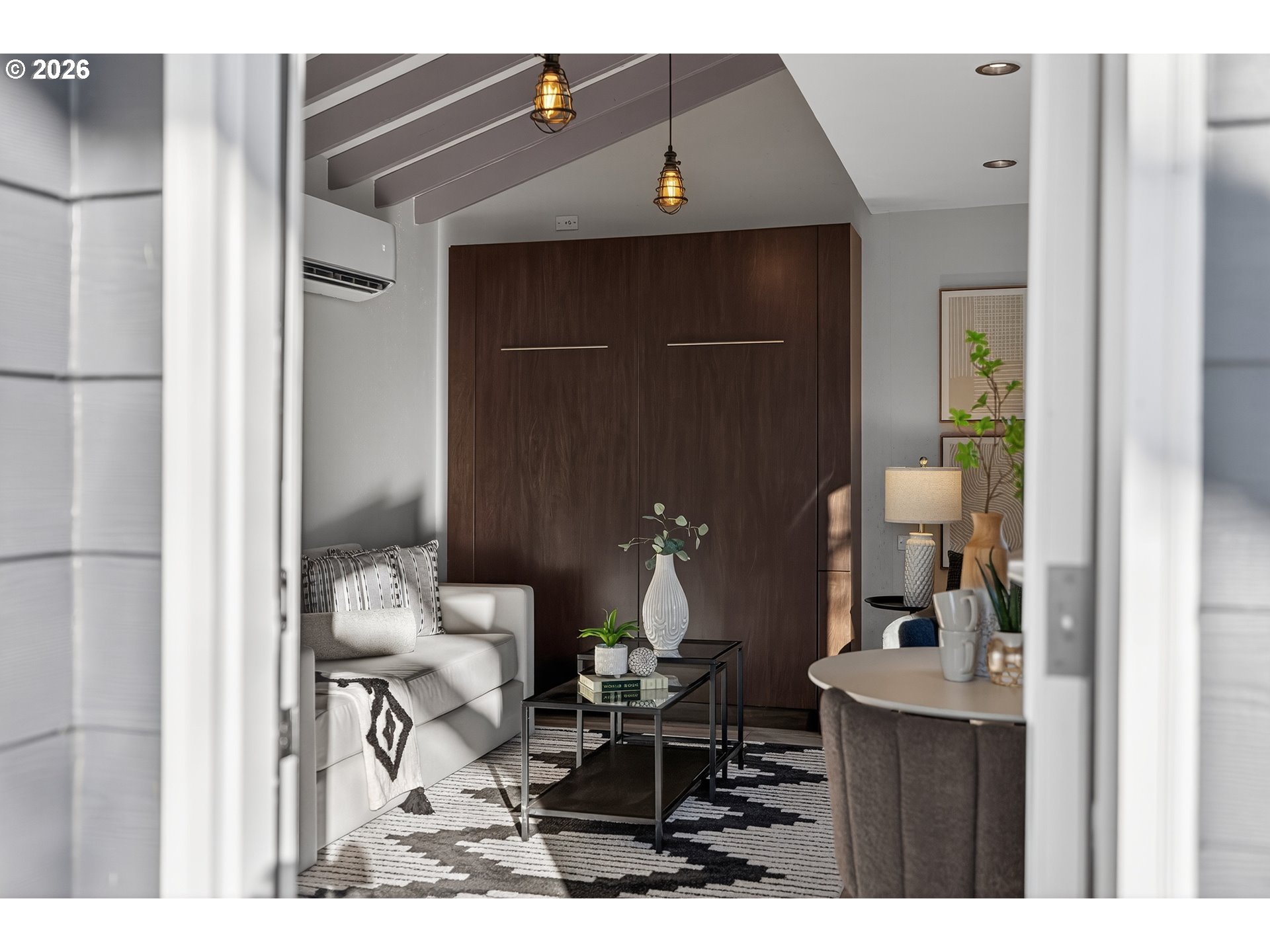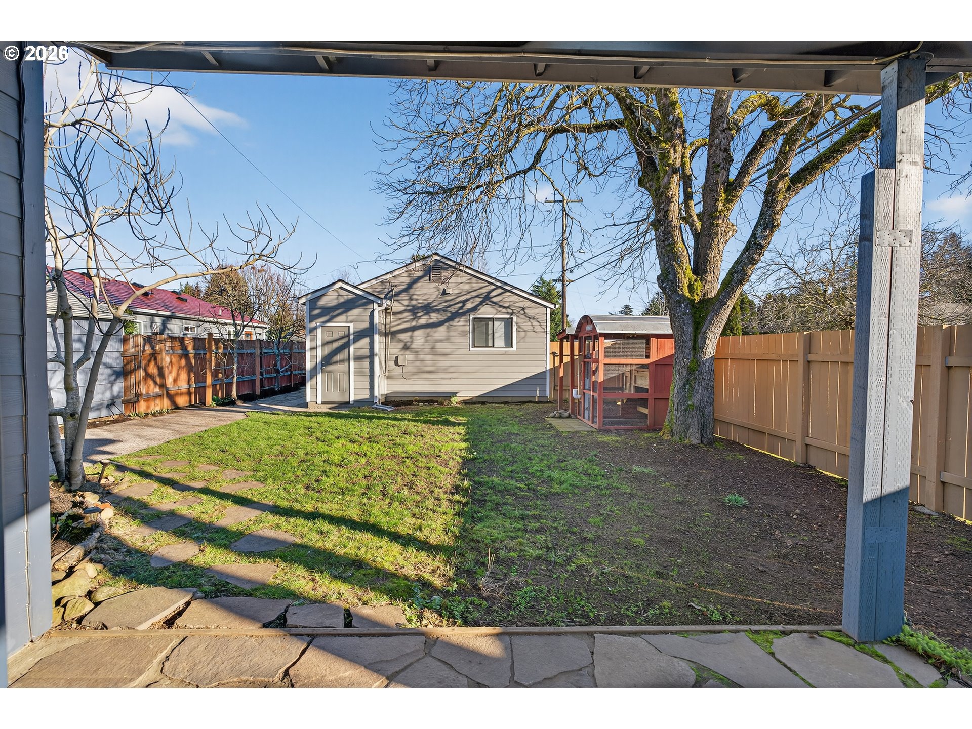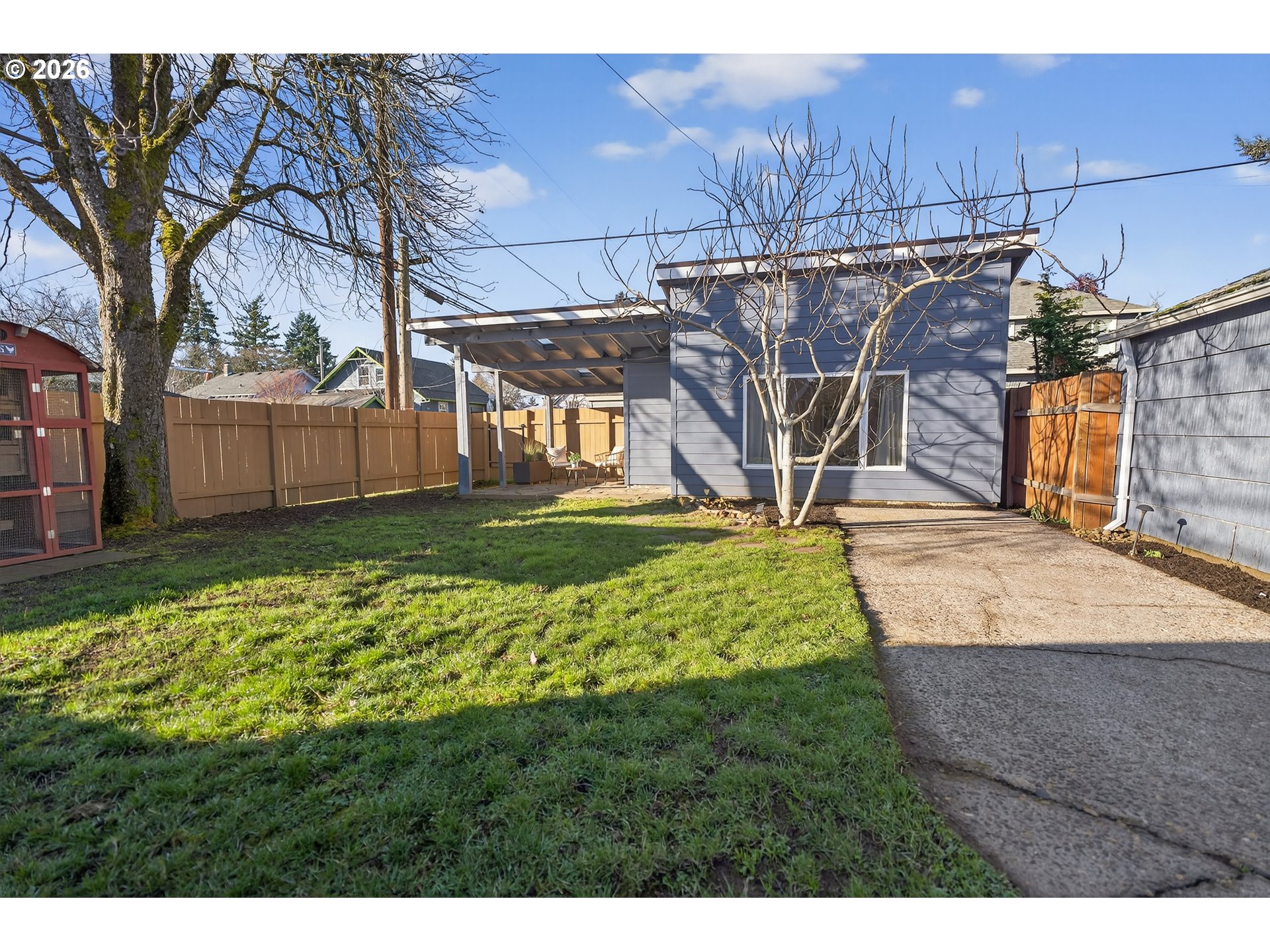 Wrap it up in frosting, this is the sweetest house in Foster-Powell! Refined mid-century ranch delivers a lovely combination of modern efficiency and urban homesteading and lives larger than it looks. The interior has been re-imagined for an open, airy flow, featuring refinished original oak hardwoods and fresh paint completed in late 2025. Significant updates provide peace of mind: a tankless water heater, HardiePlank siding and trim (2022), and a suite of recent appliances including a 2025 oven, dishwasher, and faucet. Updated bath with tub, wood floors, vinyl windows, washer, dryer, & ceilng fan. Tucked in the backyard is a detached bonus creative retreat equipped with a heat pump, queen Murphy bed, and full bathroom, this space is the ultimate creative escape or home office. The separate alley entrance and private gate provide easy access, making it a perfect 'bonus'. The yard is absolutely delightful with a covered patio designed for year-round enjoyment, featuring a chicken coop, raised garden beds, and an established mini-orchard of fig, apple, and Asian pear trees. Located blocks from restaurants, shops, multiple parks: Kerns & Essex, Higgins Boiled Bagels, HK Cafe, Ph? Hùng, not far from Mt. Scott Park. This home offers low-maintenance lifestyle in one of Portland's most communal neighborhoods. See virtual tour & updates list!
