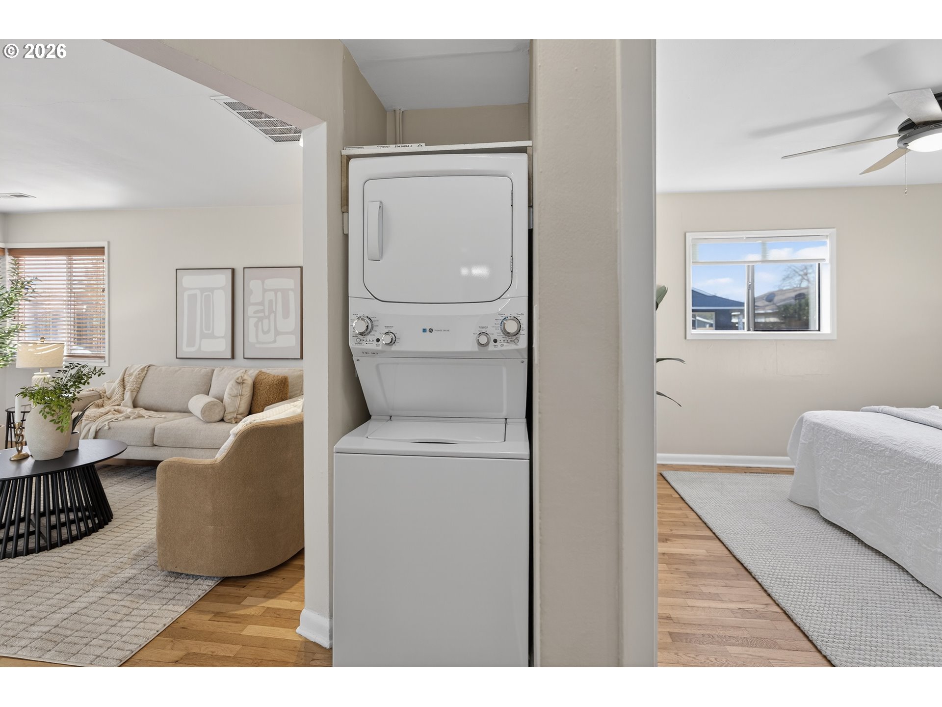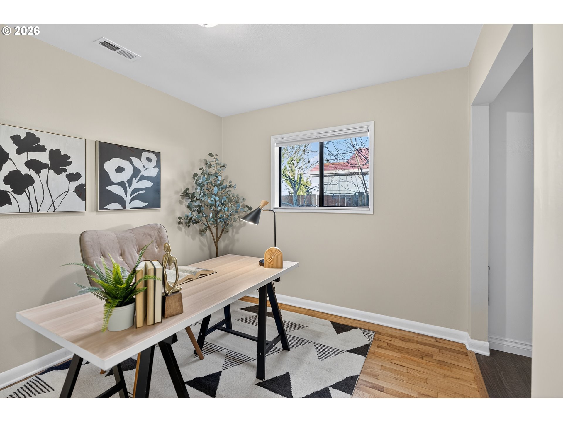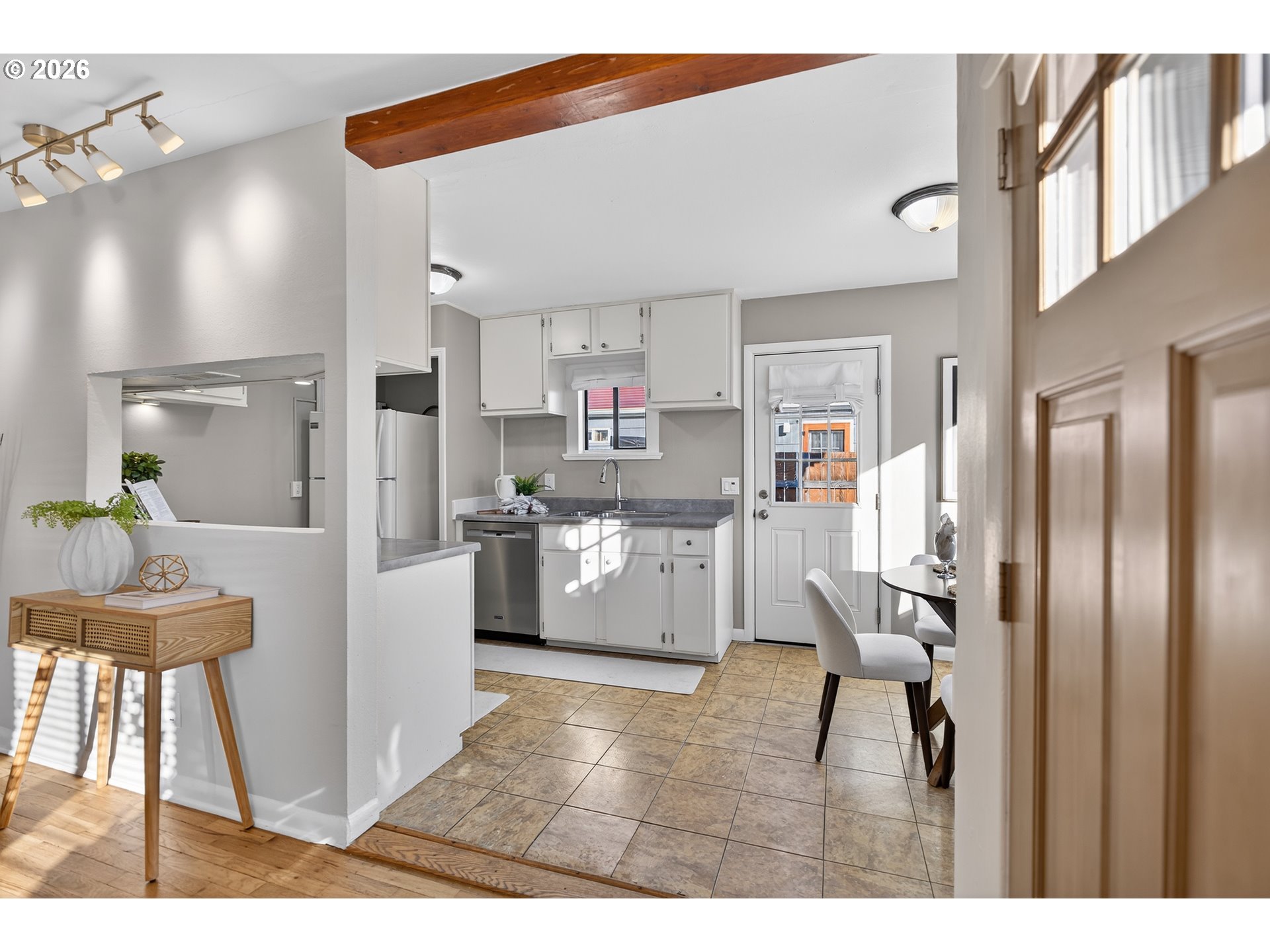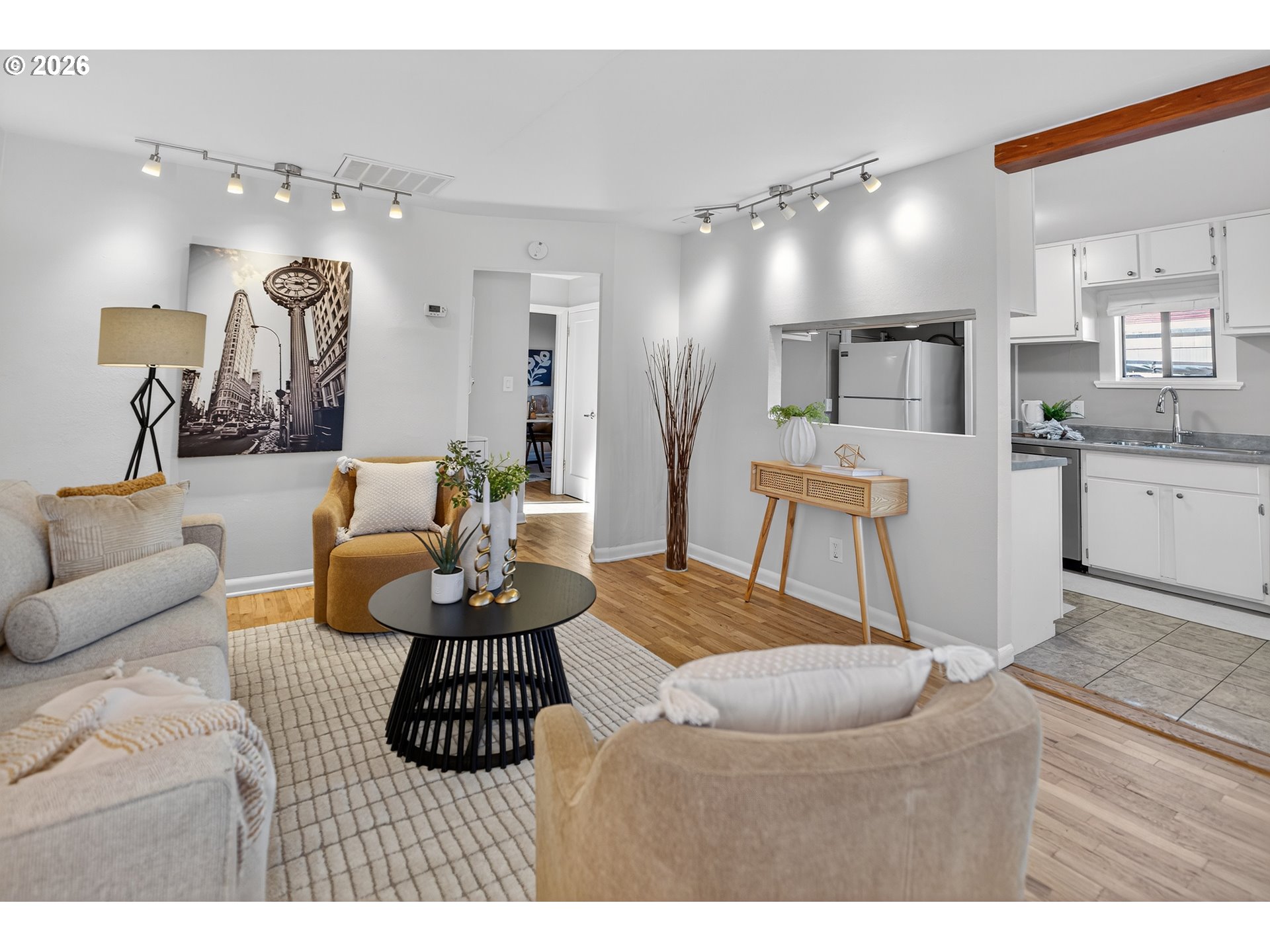 Wrap it up in frosting, this is the sweetest house in Foster-Powell! Refined mid-century ranch delivers a lovely combination of modern efficiency and urban homesteading and lives larger than it looks. The interior has been re-imagined for an open, airy flow, featuring refinished original oak hardwoods and fresh paint completed in late 2025. Significant updates provide peace of mind: a tankless water heater, HardiePlank siding and trim (2022), and a suite of recent appliances including a 2025 oven, dishwasher, and faucet. Updated bath with tub, wood floors, vinyl windows, washer, dryer, & ceilng fan. Tucked in the backyard is a detached bonus creative retreat equipped with a heat pump, queen Murphy bed, and full bathroom, this space is the ultimate creative escape or home office. The separate alley entrance and private gate provide easy access, making it a perfect 'bonus'. The yard is absolutely delightful with a covered patio designed for year-round enjoyment, featuring a chicken coop, raised garden beds, and an established mini-orchard of fig, apple, and Asian pear trees. Located blocks from restaurants, shops, multiple parks: Kerns & Essex, Higgins Boiled Bagels, HK Cafe, Ph? Hùng, not far from Mt. Scott Park. This home offers low-maintenance lifestyle in one of Portland's most communal neighborhoods. See virtual tour & updates list!