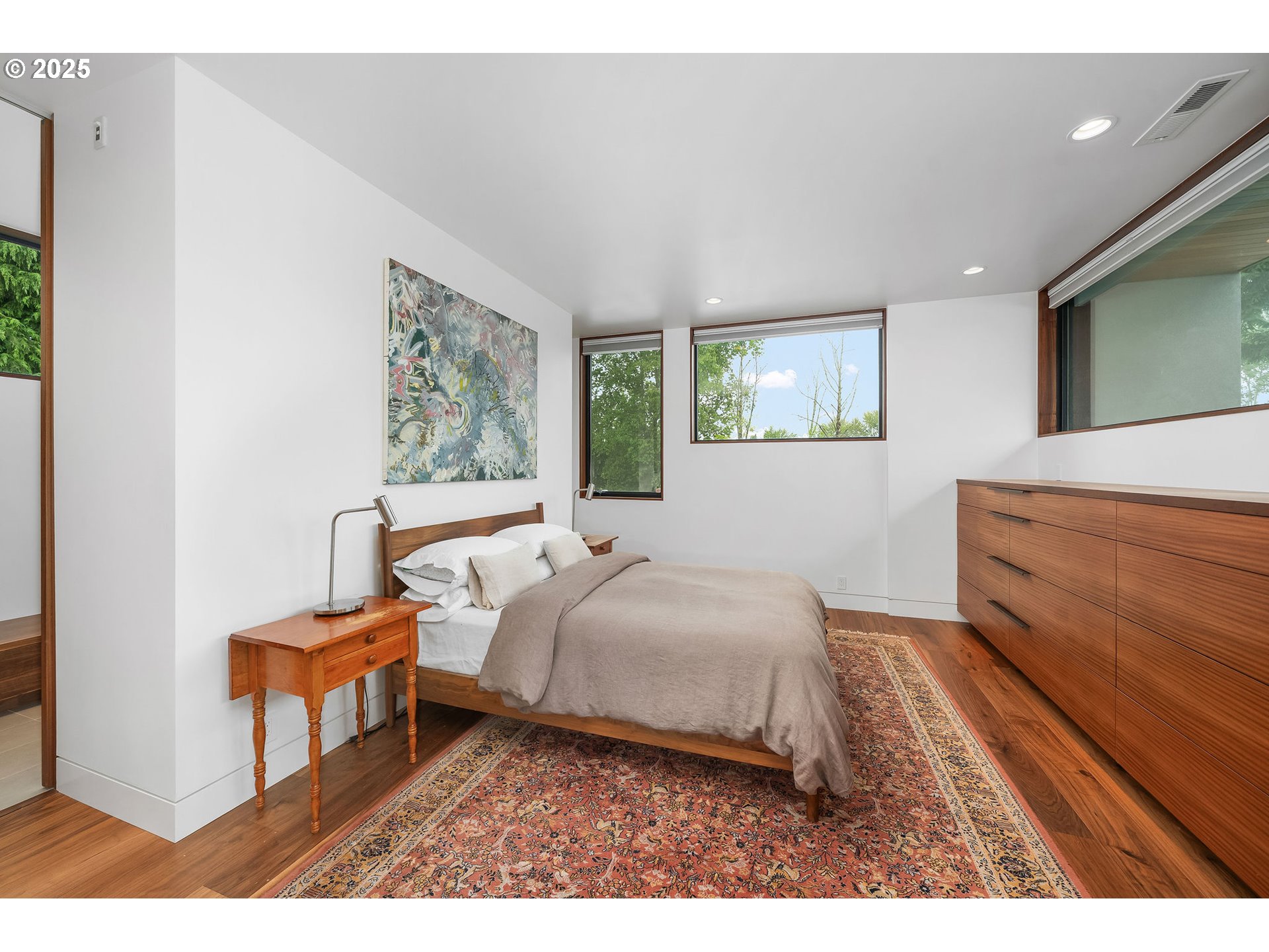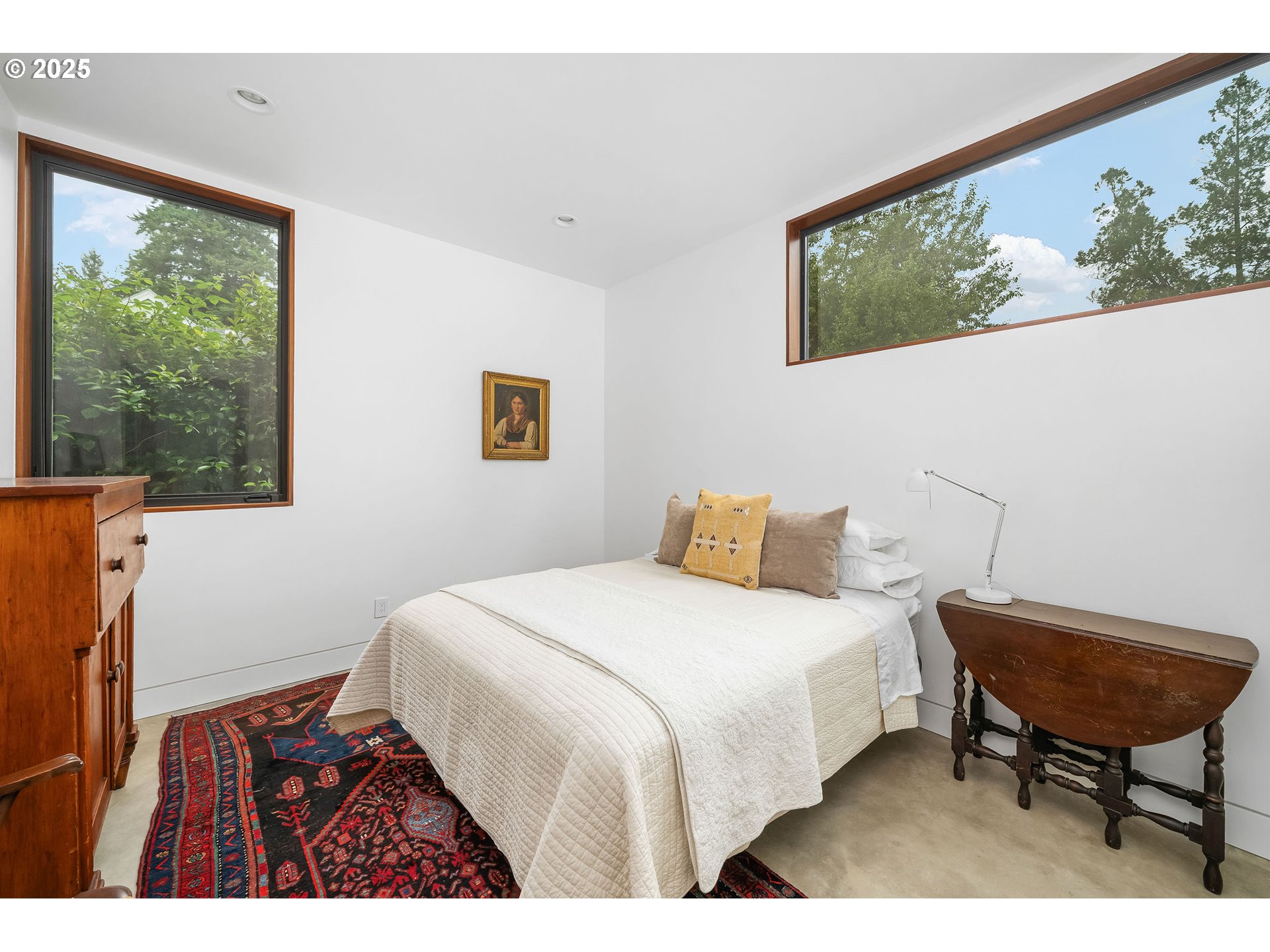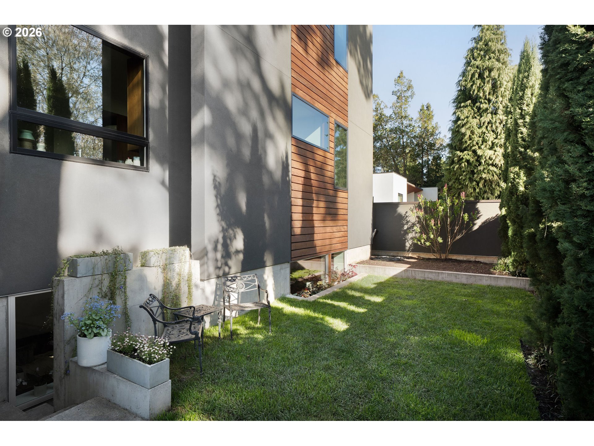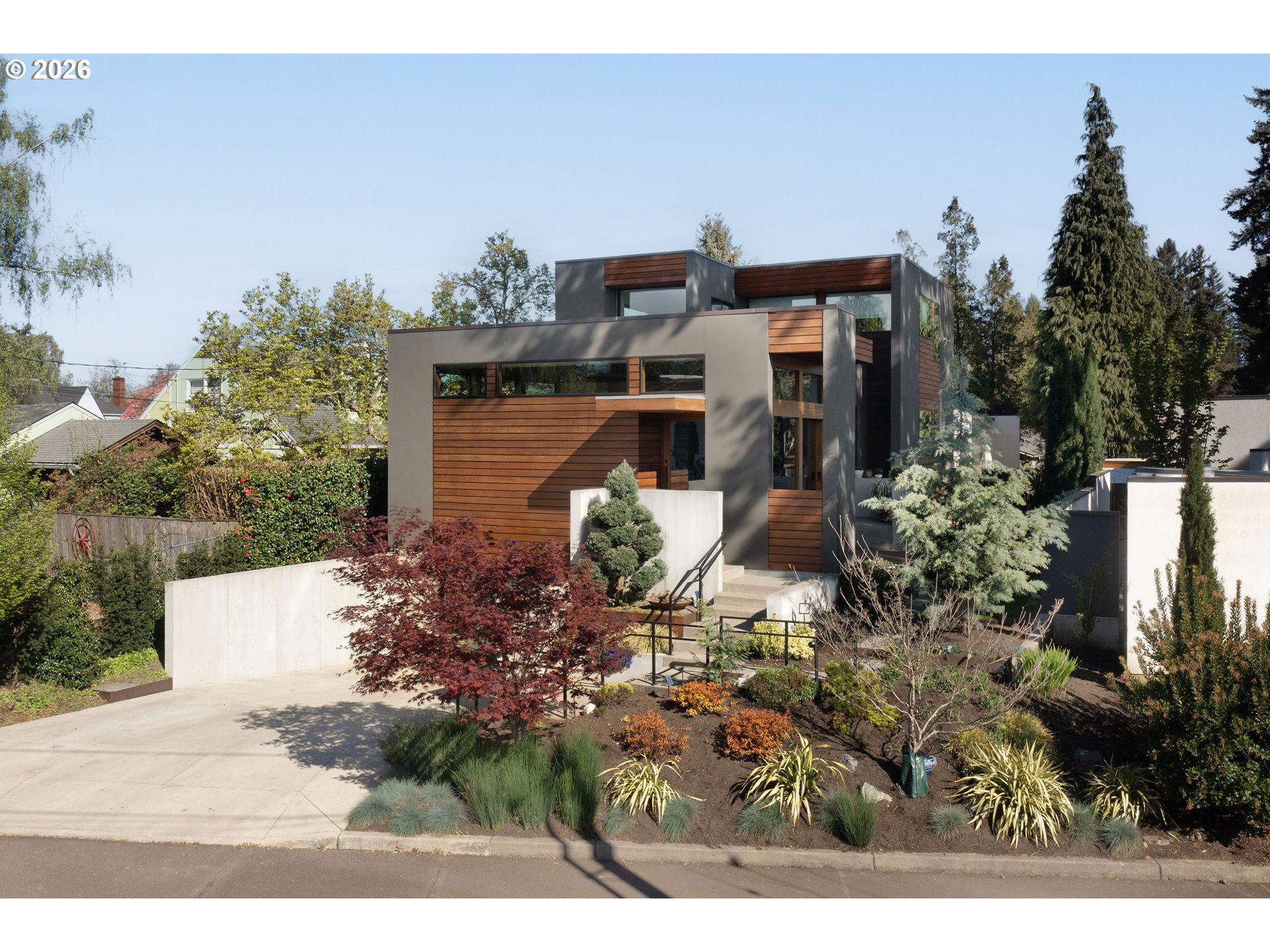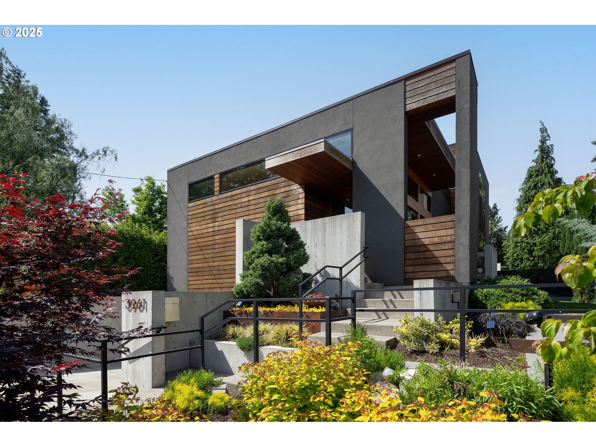 A Rare Modern Masterpiece by Eric Butler Design. This is not your typical new-construction modern! Designed and built by renowned local architect and master craftsman, Eric Butler, this custom home delivers exquisite craftsmanship and thoughtful detail at every turn. Located on a quiet, private street composed entirely of modern homes — a true “Street of Dreams” — this is a rare opportunity to own a standout modern property in a class of its own. Natural light pours through expansive windows and skylights, blurring the line between indoors and out. Every window is intentionally placed to frame the surroundings while maintaining privacy throughout the home. Rich walnut and sapele woodwork add warmth, and polished concrete floors ground the main level. The chef-designed gourmet kitchen is built for serious culinary work and effortless entertaining, with premium stainless appliances, gas cooking, and intuitive flow.Upstairs, the primary suite offers a retreat-like experience with a heated tile bath, spacious walk-in closet, and private rooftop sun deck. Downstairs, a 865 sq ft ADU with full kitchen, private entrance, and bedroom suite offers ideal space for guests, income, or flexible living.Fully landscaped and tucked at the peaceful end of the street, this home is a bold yet refined expression of modern architecture, livability, and design integrity.