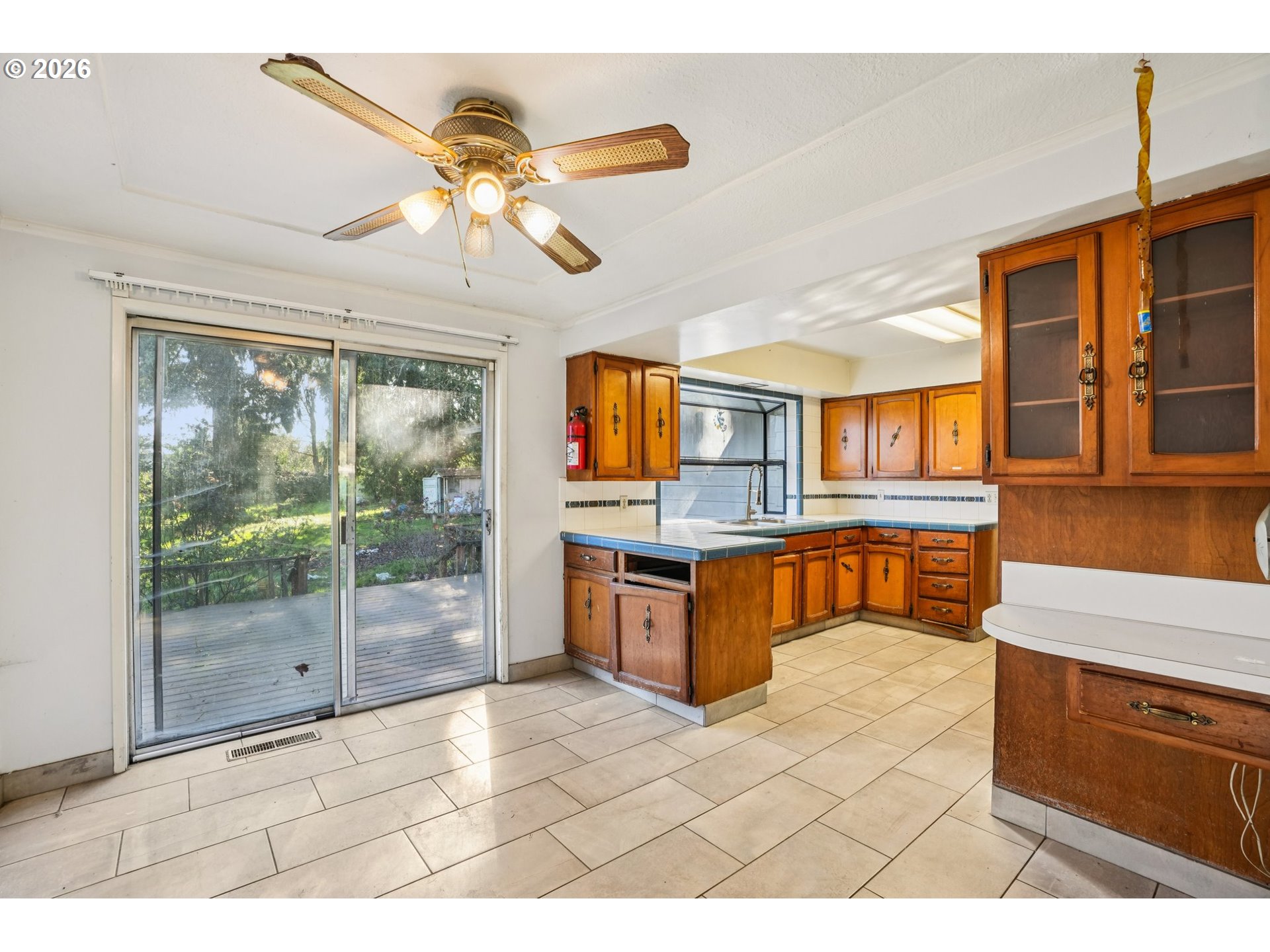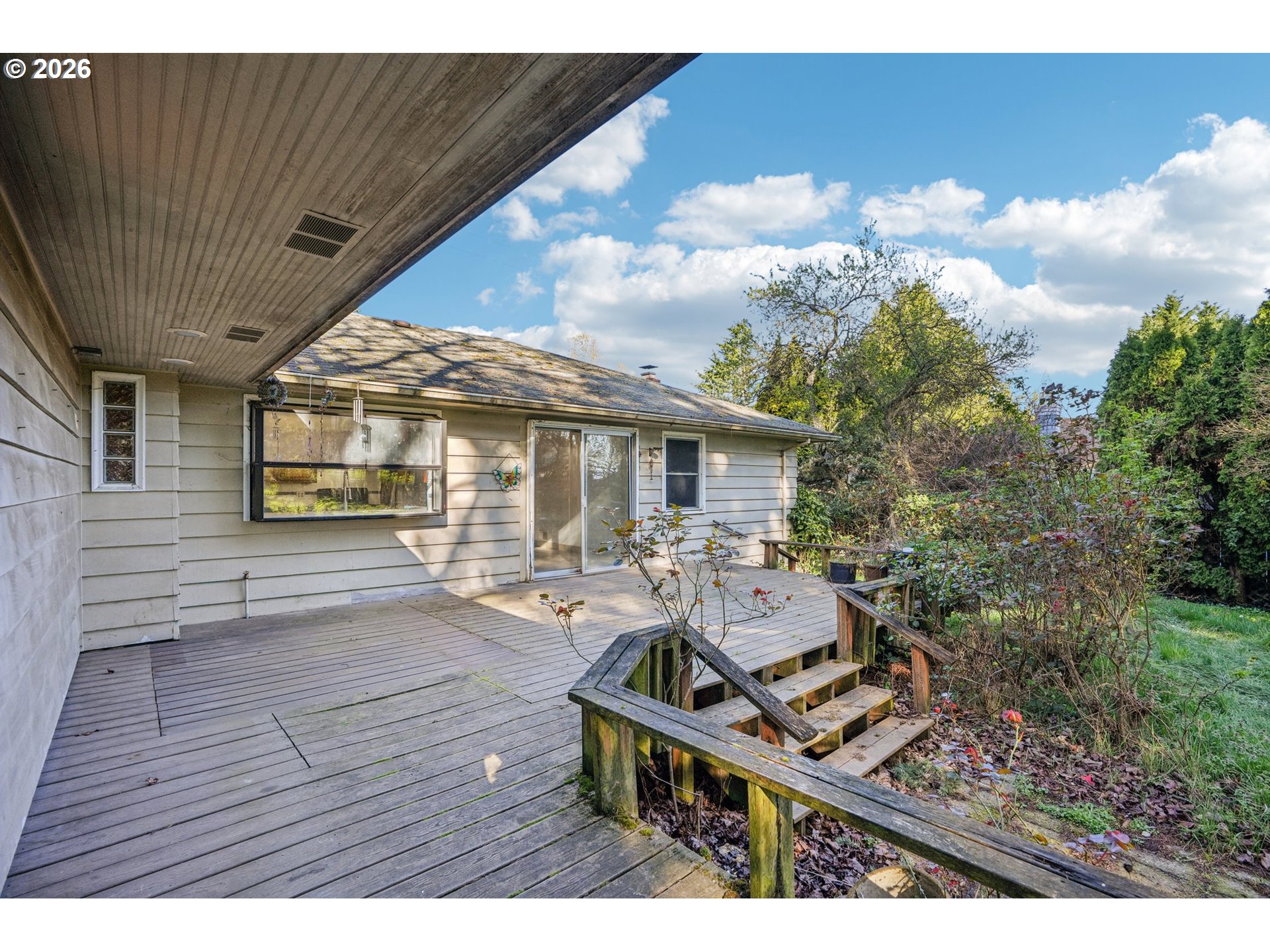 Rare opportunity on a private, level .41-acre R7-zoned lot! This 4BR/2BA ranch offers 1,652 sq ft on the main level with all bedrooms and baths conveniently on one floor, plus a full high-ceiling basement with partial finishes and excellent potential for additional living space, storage, or possible ADU conversion (buyer to verify). The lot is fenced, treed, and offers a hard-to-find sense of privacy while still being centrally located with easy access to freeways and the airport. Ideal setup for investors, flippers, or buyers looking to maximize the potential of a larger parcel. Home is livable but in need of significant repairs and updates, including roof replacement, exterior dry rot repair, garage door replacement, and deck repairs. Interior is ready for a full cosmetic overhaul. Existing features include a spacious primary suite with wet bar and slider to back deck, wood-burning fireplace, newer laminate flooring, some original wood floors, tile flooring in kitchen and laundry, and attached laundry room. Major systems include a newer electrical panel and service (2025), heat pump for heating and cooling, and some updated windows. Outside features fruit trees and 2 outbuildings - Start your urban farm here! Bring your vision and toolbelt—this is a true fixer with strong upside potential. Likely cash or rehab financing only but seller open to creative options. [Home Energy Score = 1. HES Report at https://rpt.greenbuildingregistry.com/hes/OR10246168]