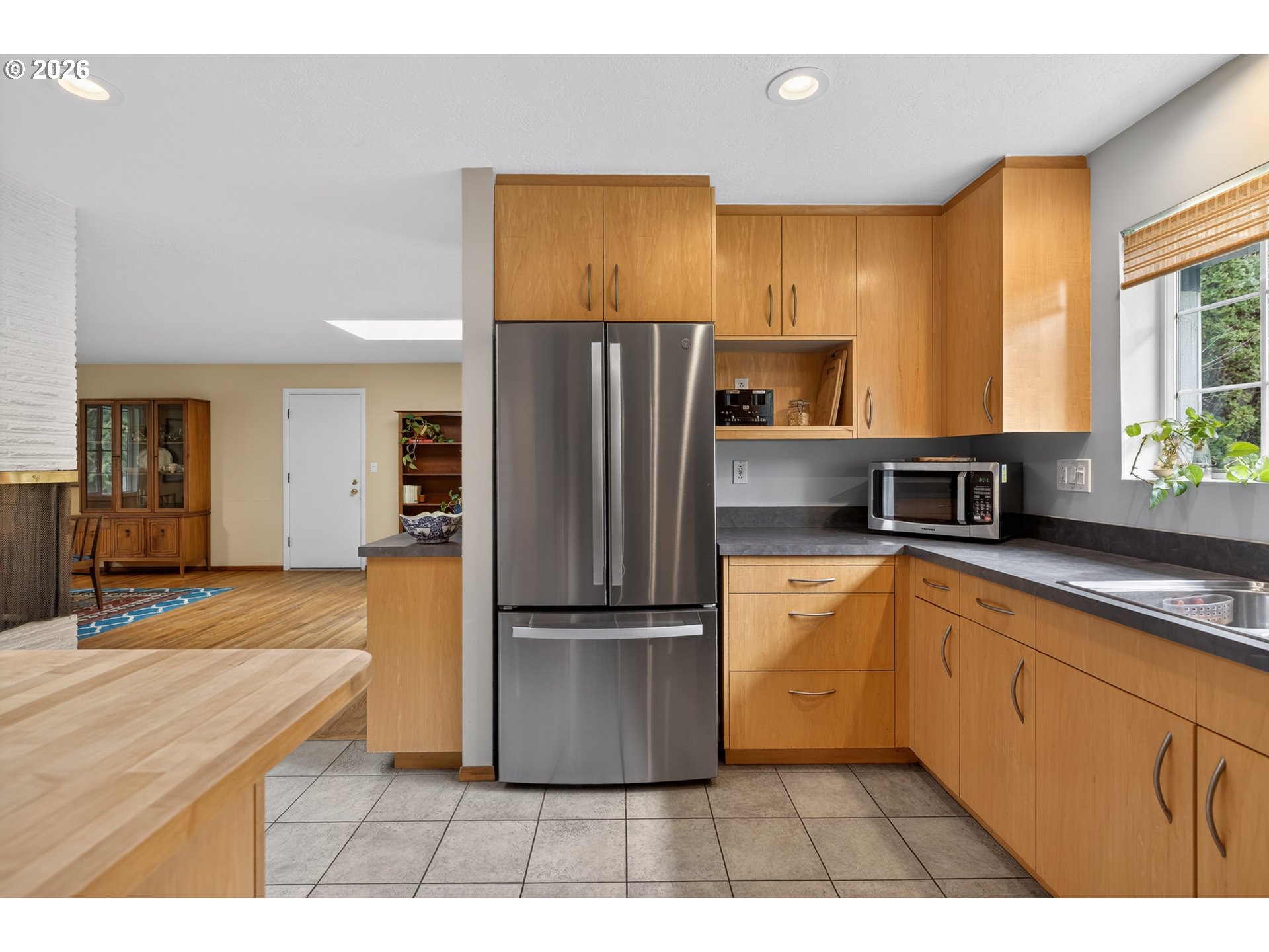 One of Bridlemile's best-positioned single-level homes, thoughtfully remodeled and sitting on a generous 13,580 SF lot in Portland's top public school corridor. 2,040 SF of efficient single-level living with 4 bedrooms and 2 full baths. The remodeled primary suite features a walk-in closet, soaking tub, walk-in shower, and bidet. The updated kitchen includes stainless steel appliances, a gas range, and flows naturally into the living areas. A dual-sided wood-burning fireplace anchors the main living space, with skylights and vaulted ceilings bringing in natural light year-round. Hardwood floors run throughout.The lot is the real differentiator. At just over a third of an acre, the large fenced yard offers space for gardening, entertaining, kids, pets, or future expansion (ADU potential?). Location is ideal: 12 minutes to downtown Portland, 5 minutes to the Beaverton-Hillsdale corridor (New Seasons, Fred Meyer, restaurants), and steps from Hamilton Park and Albert Kelly Park trail systems. Zero-step living potential, no stairs, and an attached garage.Central heat and A/C, washer/dryer included, built-in features, and a patio round out a home that checks every practical box while delivering real neighborhood value. Quiet streets, strong community, exceptional schools Bridlemile/Gray/Ida B Wells, and easy access to everything Portland offers.