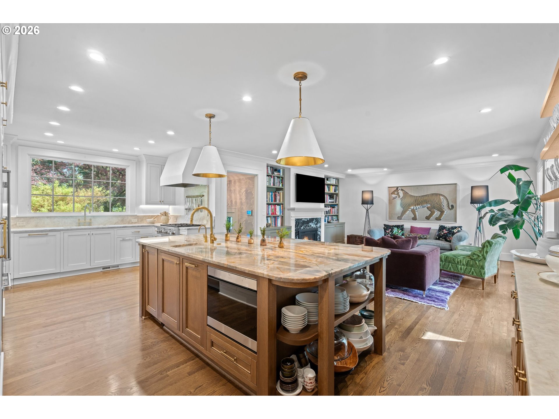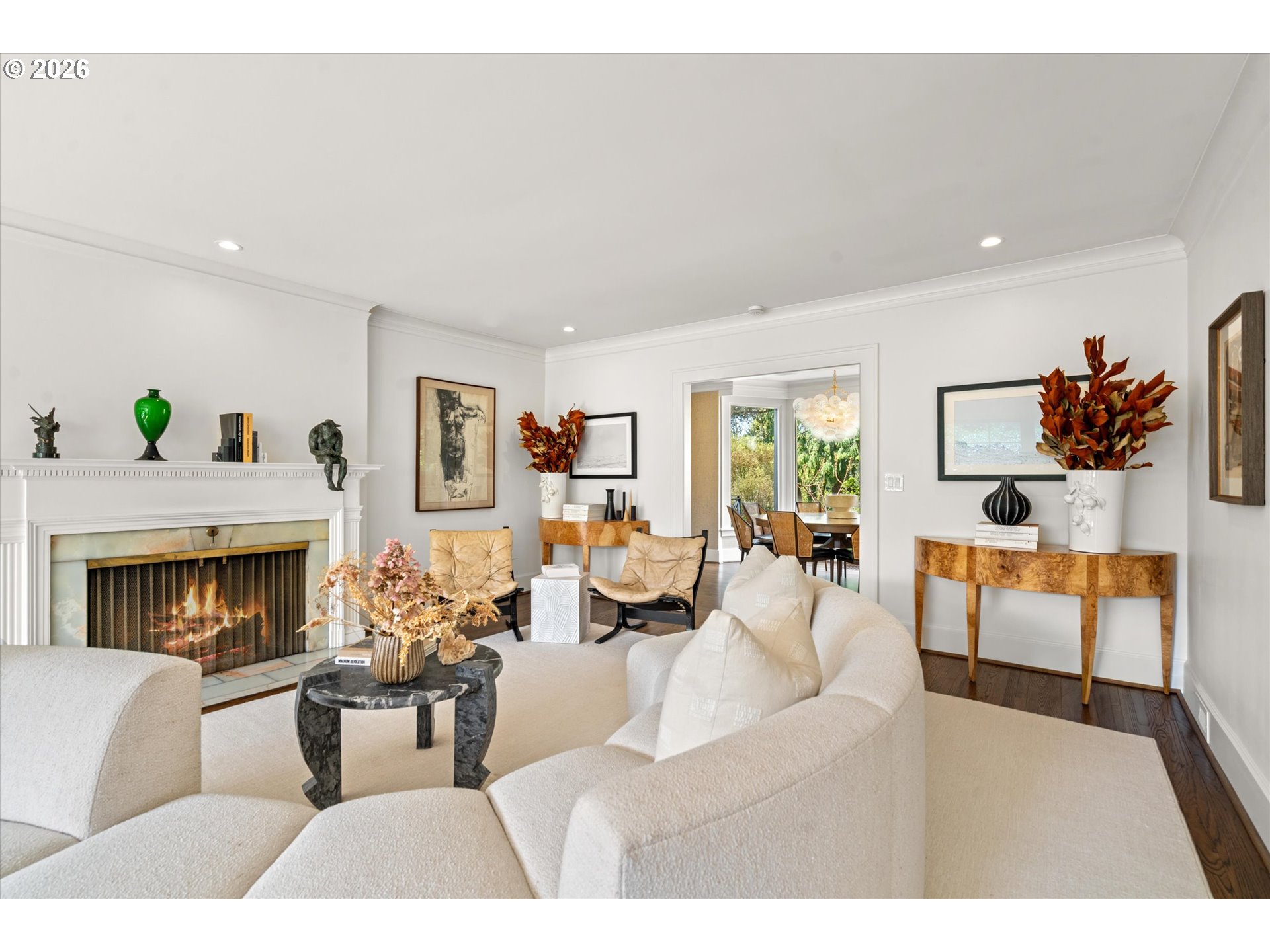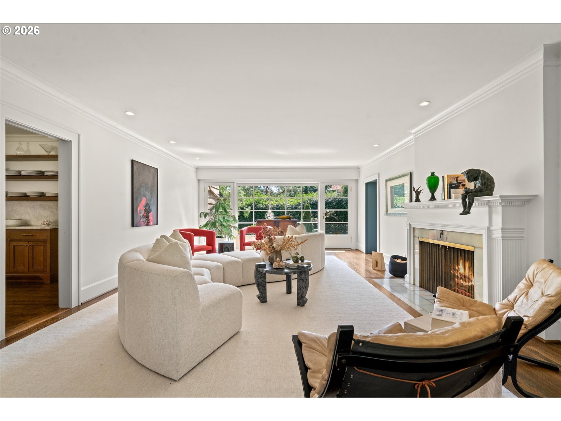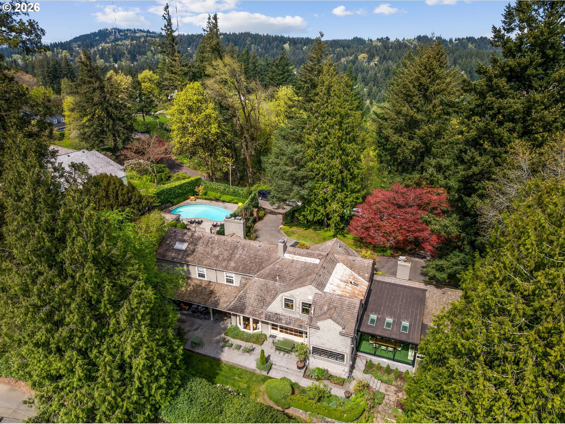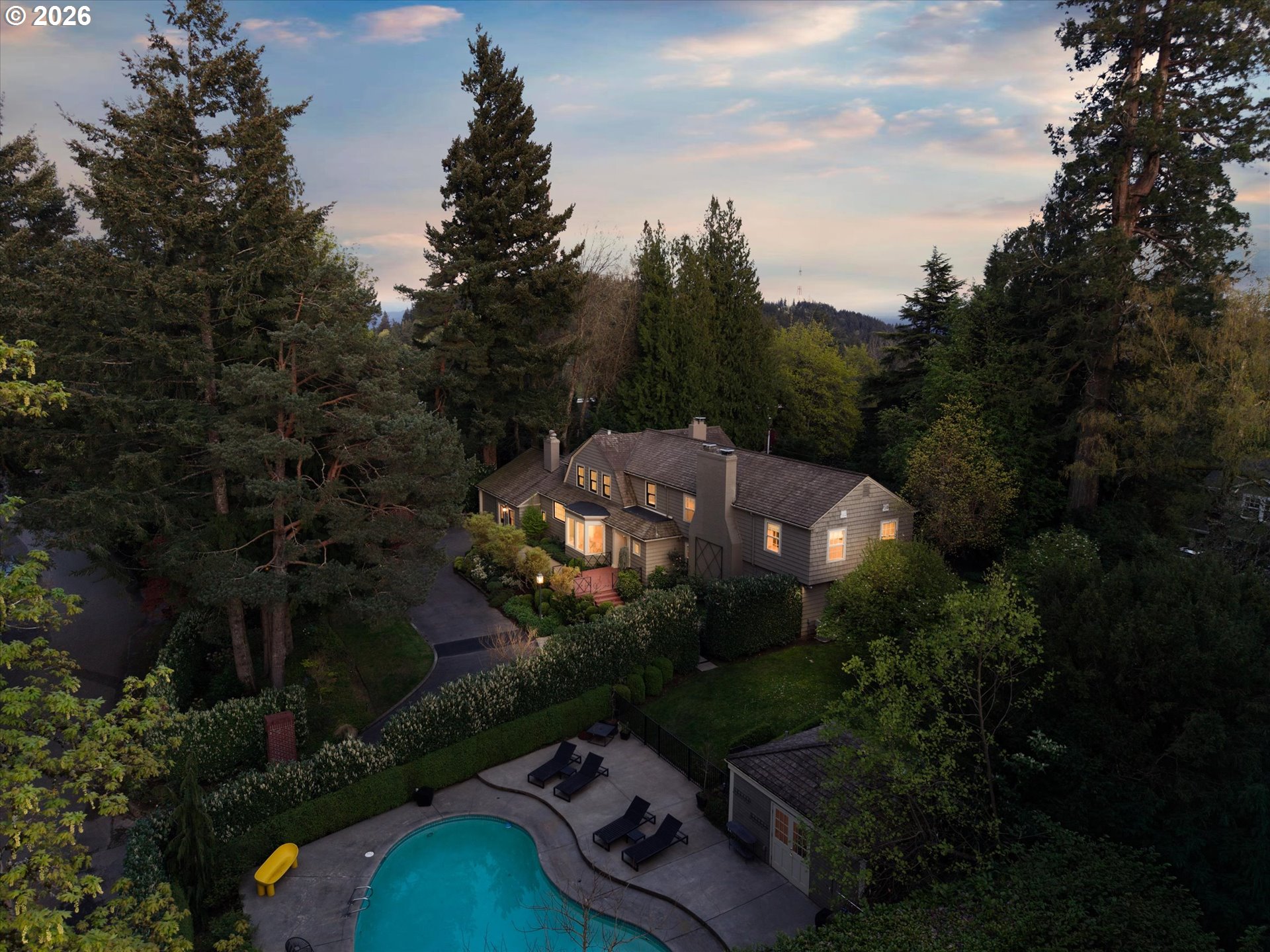 A design forward estate in Portland defined by proportion, scale, and natural light, reimagined by renowned design firm Maison to enhance flow and livability. Interiors are layered with character, thoughtful materials, and a sense of ease that’s difficult to replicate, with a considered sensibility that feels sophisticated and livable, balancing warmth with a refined and cohesive design. Collected and considered, inviting from the moment you enter. At the heart of the home, the kitchen is defined by presence and material contrast, anchored by a Michelangelo quartzite island, with Perla Venata surfaces layered throughout. Sub Zero, Wolf, and Miele appliances integrate seamlessly into custom cabinetry, complemented by brass fixtures opening to surrounding living areas, designed for both daily living and effortless entertaining. Living spaces unfold with intention, offering a balance of openness, scale, and definition, with distinct areas for both gathering and retreat. A formal living room, family room, and built in bar create distinct yet connected moments, with four fireplaces adding warmth and architectural presence. The sunroom, framed by skylights and a full height sliding glass wall, becomes a defining space within the home, where natural light pours in and the landscape feels integrated into daily life. Four bedrooms plus a guest quarters include a spacious primary suite with fireplace, a dedicated dressing room and custom built ins, offering a refined and private retreat. The grounds are defined by mature, vibrant landscaping and a sense of privacy, offering distinct areas for gathering, entertaining, and everyday use. The backyard features an in ground pool behind mature hedging, a pool house, and a circular driveway reinforcing arrival and scale. Designed for those who refuse to compromise. A rare opportunity to own a home of this scale, finish, and presence on one of Portland’s most coveted streets.