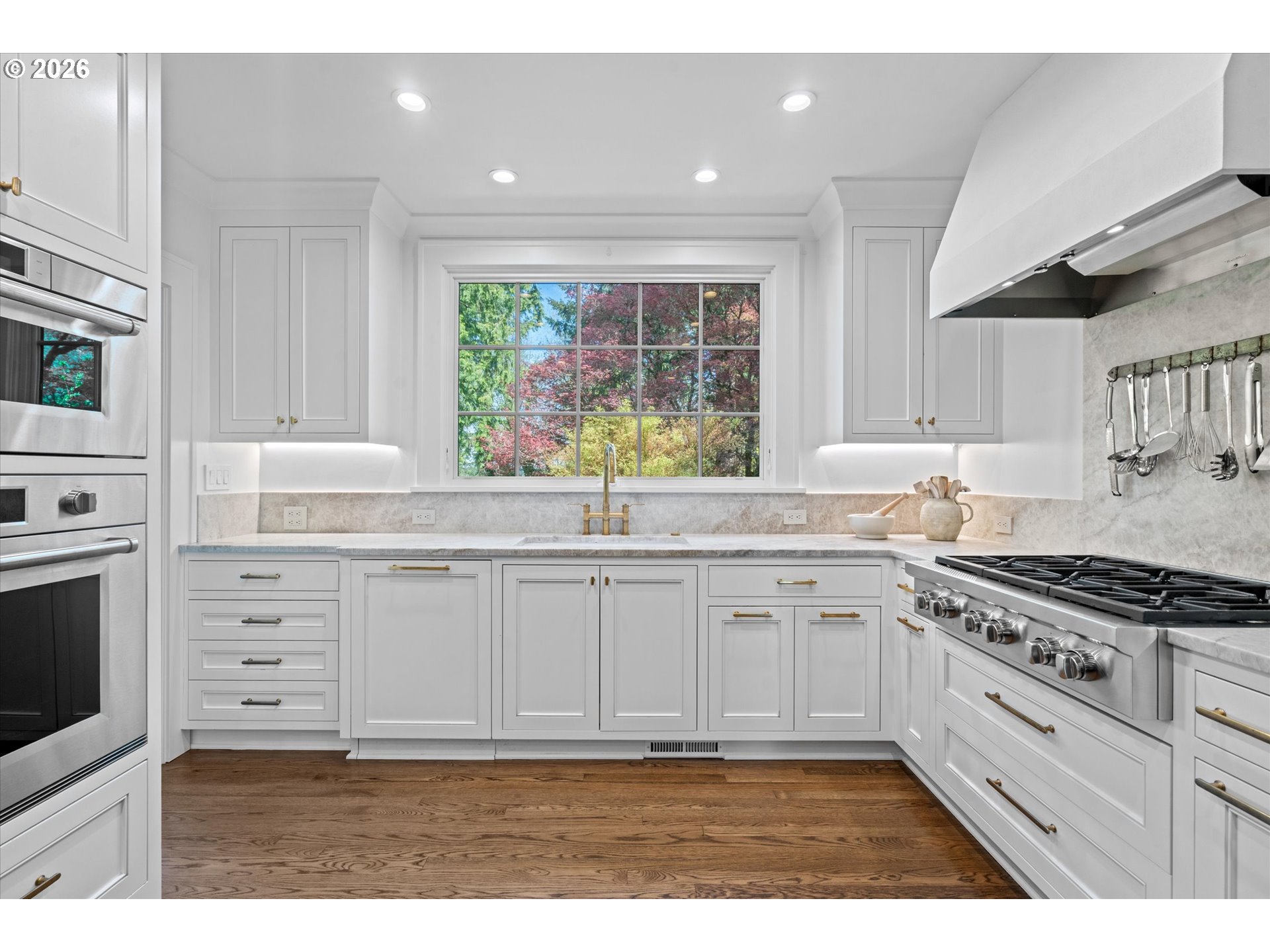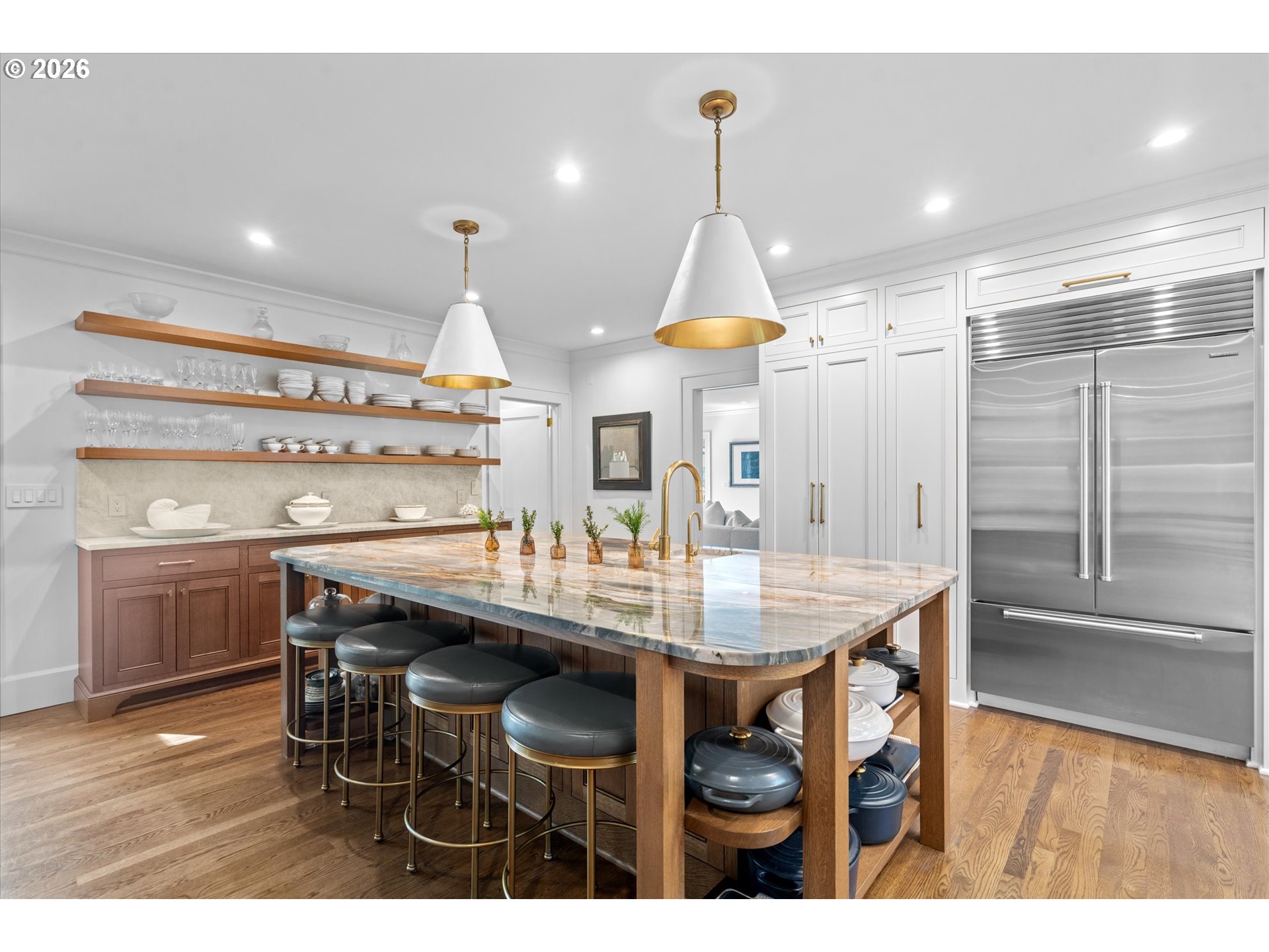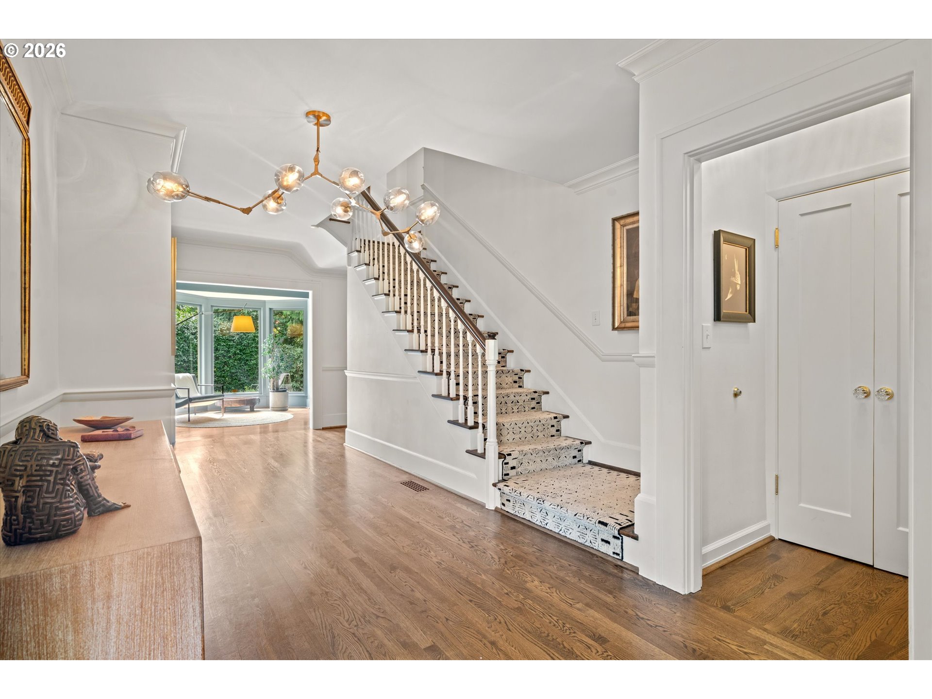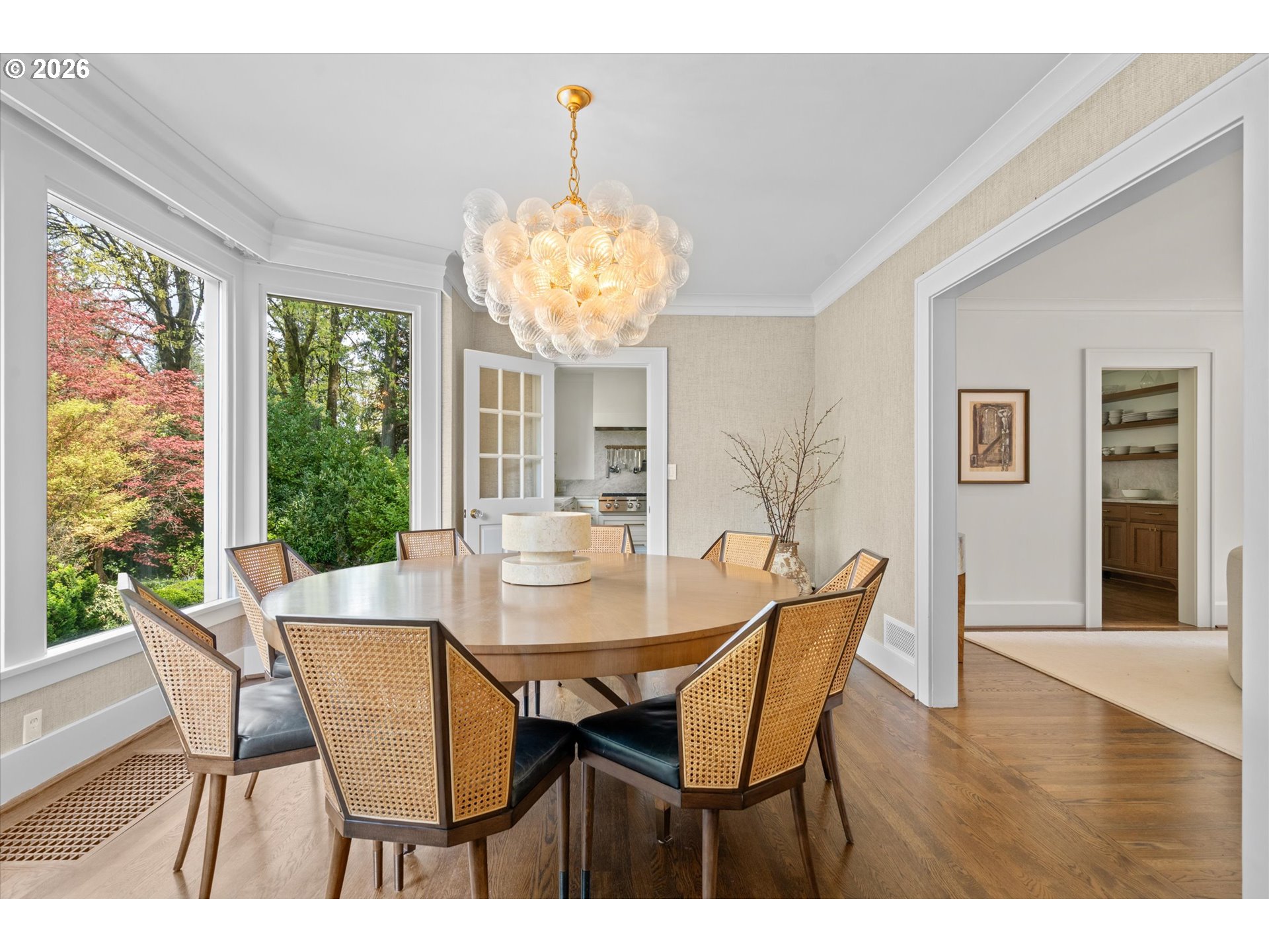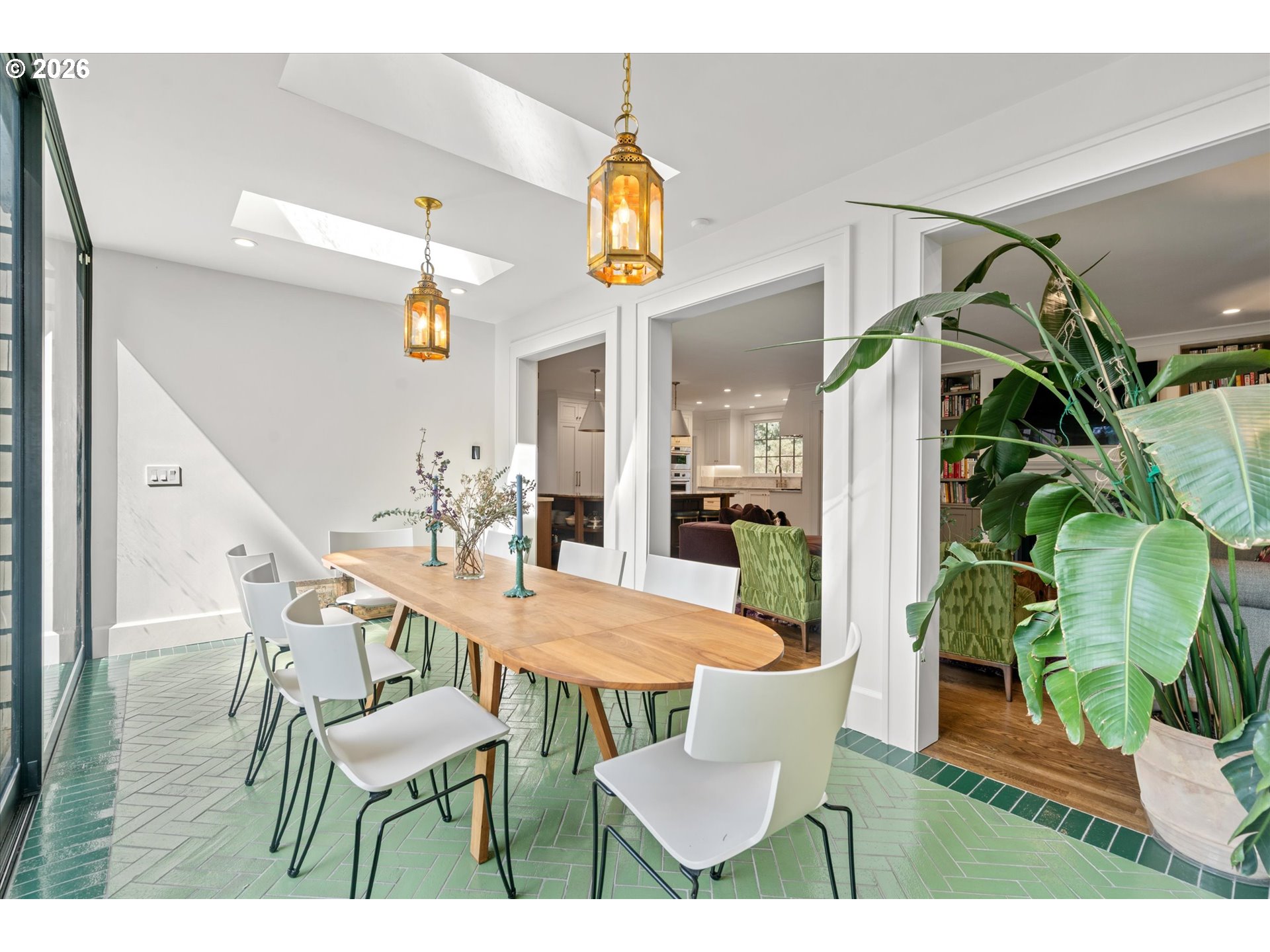 A design forward estate in Portland defined by proportion, scale, and natural light, reimagined by renowned design firm Maison to enhance flow and livability. Interiors are layered with character, thoughtful materials, and a sense of ease that’s difficult to replicate, with a considered sensibility that feels sophisticated and livable, balancing warmth with a refined and cohesive design. Collected and considered, inviting from the moment you enter. At the heart of the home, the kitchen is defined by presence and material contrast, anchored by a Michelangelo quartzite island, with Perla Venata surfaces layered throughout. Sub Zero, Wolf, and Miele appliances integrate seamlessly into custom cabinetry, complemented by brass fixtures opening to surrounding living areas, designed for both daily living and effortless entertaining. Living spaces unfold with intention, offering a balance of openness, scale, and definition, with distinct areas for both gathering and retreat. A formal living room, family room, and built in bar create distinct yet connected moments, with four fireplaces adding warmth and architectural presence. The sunroom, framed by skylights and a full height sliding glass wall, becomes a defining space within the home, where natural light pours in and the landscape feels integrated into daily life. Four bedrooms plus a guest quarters include a spacious primary suite with fireplace, a dedicated dressing room and custom built ins, offering a refined and private retreat. The grounds are defined by mature, vibrant landscaping and a sense of privacy, offering distinct areas for gathering, entertaining, and everyday use. The backyard features an in ground pool behind mature hedging, a pool house, and a circular driveway reinforcing arrival and scale. Designed for those who refuse to compromise. A rare opportunity to own a home of this scale, finish, and presence on one of Portland’s most coveted streets.