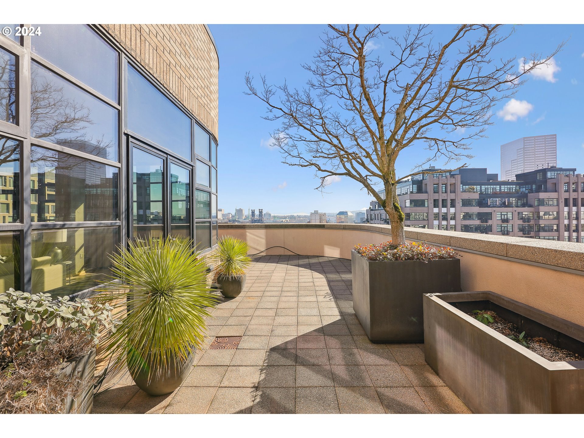 One of THE BEST penthouses in Portland. This southeast corner sits on the top floor & offers mountain views from an almost 1,000SF wrap-around terrace that is accessible from the majority of the interior. If outdoor space is the dream, this is the one! The Art Deco architecture of The Gregory gives privacy to this special corner. Very high ceilings & newly refinished maple floors run throughout the penthouse. The enormous great room has space for a large dining area & multiple sitting areas that are thoughtfully divided by a custom storage & entertainment credenza. Watch TV by the gas fireplace. An oversized island with an eating bar separates the gourmet kitchen. Two very large bedroom suites sit at opposite ends of the penthouse. The primary suite has its own dressing room, walk-in closet, marble bath, & separate library & TV area that connects to a large private terrace. The custom office features a leather wall, built-ins, & skylights. The guest suite has built-in storage & outdoor access. The laundry room offers even more storage, a sink & secondary access to the common hall. Two individual parking spaces & a separate storage room that is too big to believe make this an easy lifestyle. The building has a large common terrace on the 5th floor with tables, lounge seating, & BBQs. There is easy access right outside the building to markets, restaurants/cafes, galleries, cultural events & the streetcar on both sides of the building. Long-time building manager, loved by the community, is onsite Monday-Friday. New roof on the building in 2022.