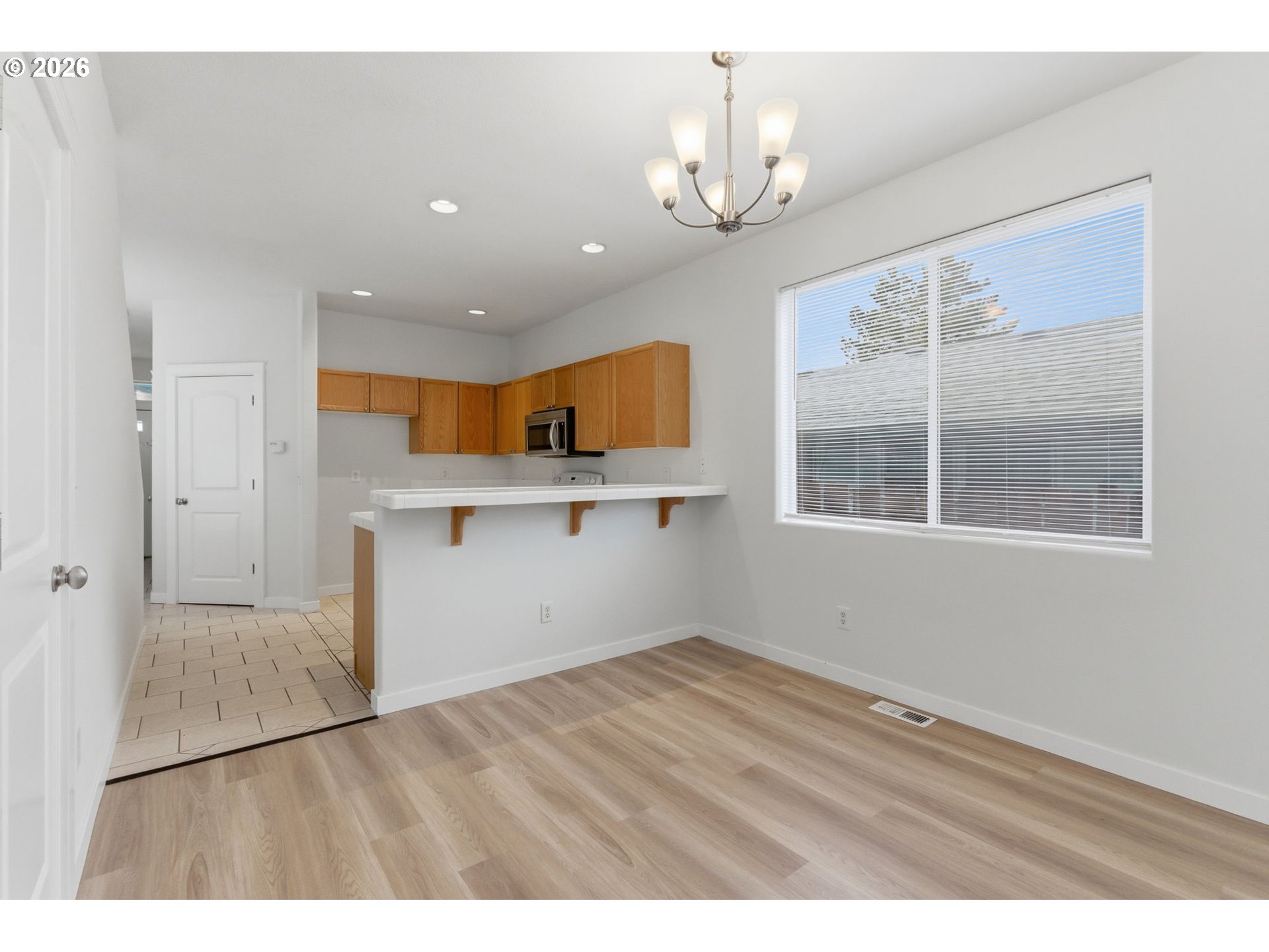 Freshly updated 3-bedroom, 2.5-bath two-story home featuring a new roof, new LVP flooring on the main level, carpet upstairs, and a recently painted exterior. The open main living area offers a gas fireplace, half bath, and kitchen with tile countertops and backsplash, and an eat-at counter. Upstairs includes a spacious primary suite with dual vanity and shower, two additional bedrooms, hallway bath, and convenient laundry. Enjoy the fully fenced backyard with patio—perfect for pets, play, or relaxing. This excellent home is rounded out with an attached one-car garage and a quiet location close to parks, restaurants, and easy freeway access. [Home Energy Score = 7. HES Report at https://rpt.greenbuildingregistry.com/hes/OR10245803]
