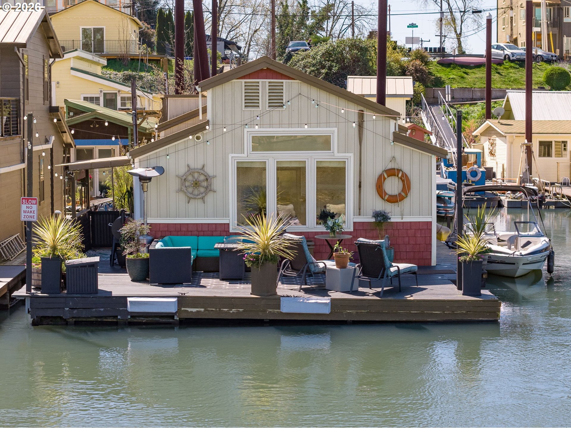 Views, Views, Views! Welcome to this beautiful riverfront floating home, where every season brings something special. This home features a spacious outdoor deck with two boat parking spaces—perfect for summer BBQs, entertaining, and endless river adventures.In the winter, enjoy a front-row seat to the magical Christmas Ship Parade right from your own deck—an unforgettable holiday tradition! Inside, the open-concept kitchen and great-room are filled with natural light and offer panoramic views in every direction. The primary suite includes a spacious deck, ideal for peaceful mornings or relaxing evenings. Need a home office or creative space? The bonus room/office also opens to its own deck, making it a perfect spot for working from home with inspiration all around. Island Cafe and other amenities close by.This home is move-in ready—just bring your sense of adventure and love for the water!