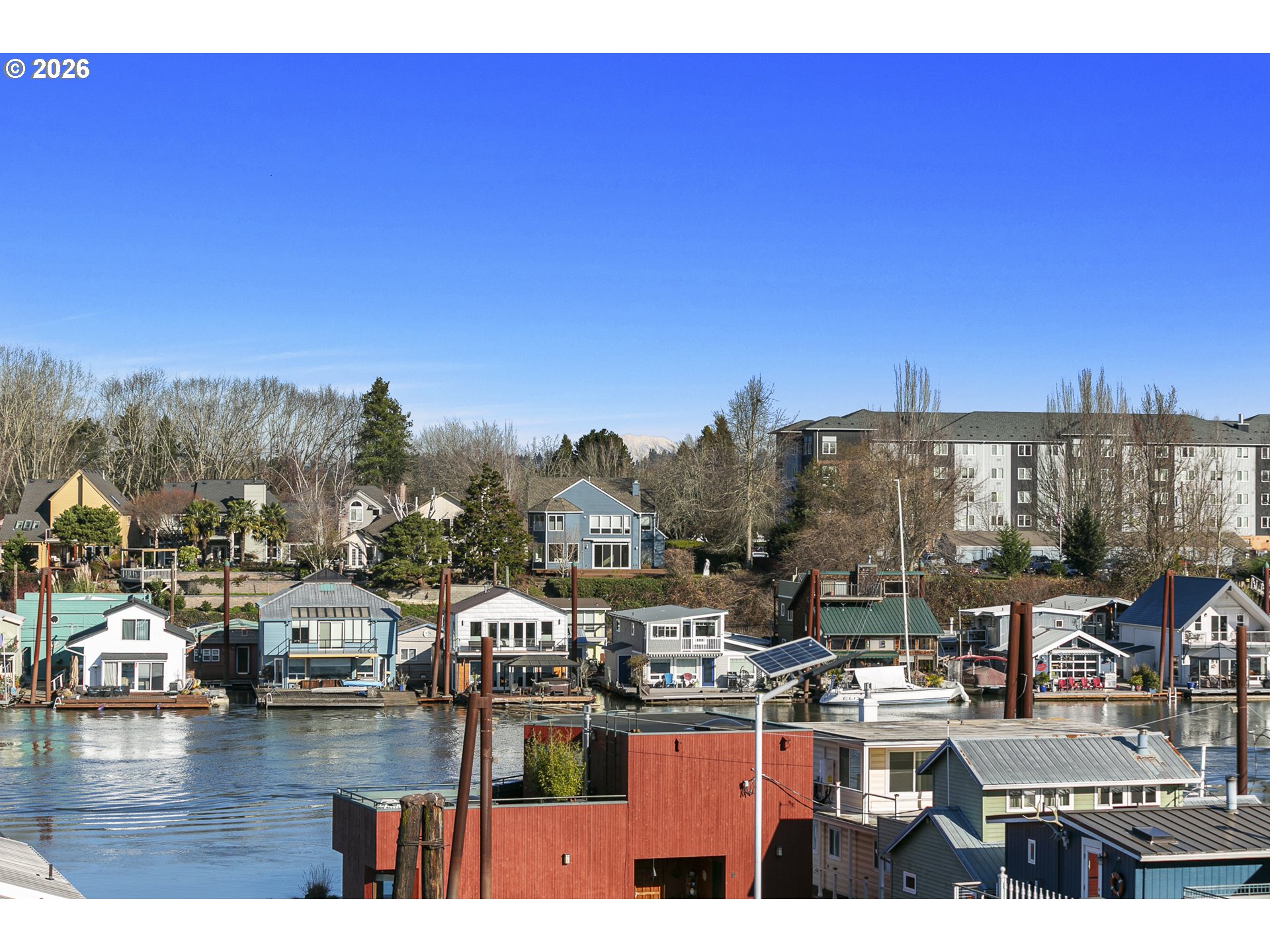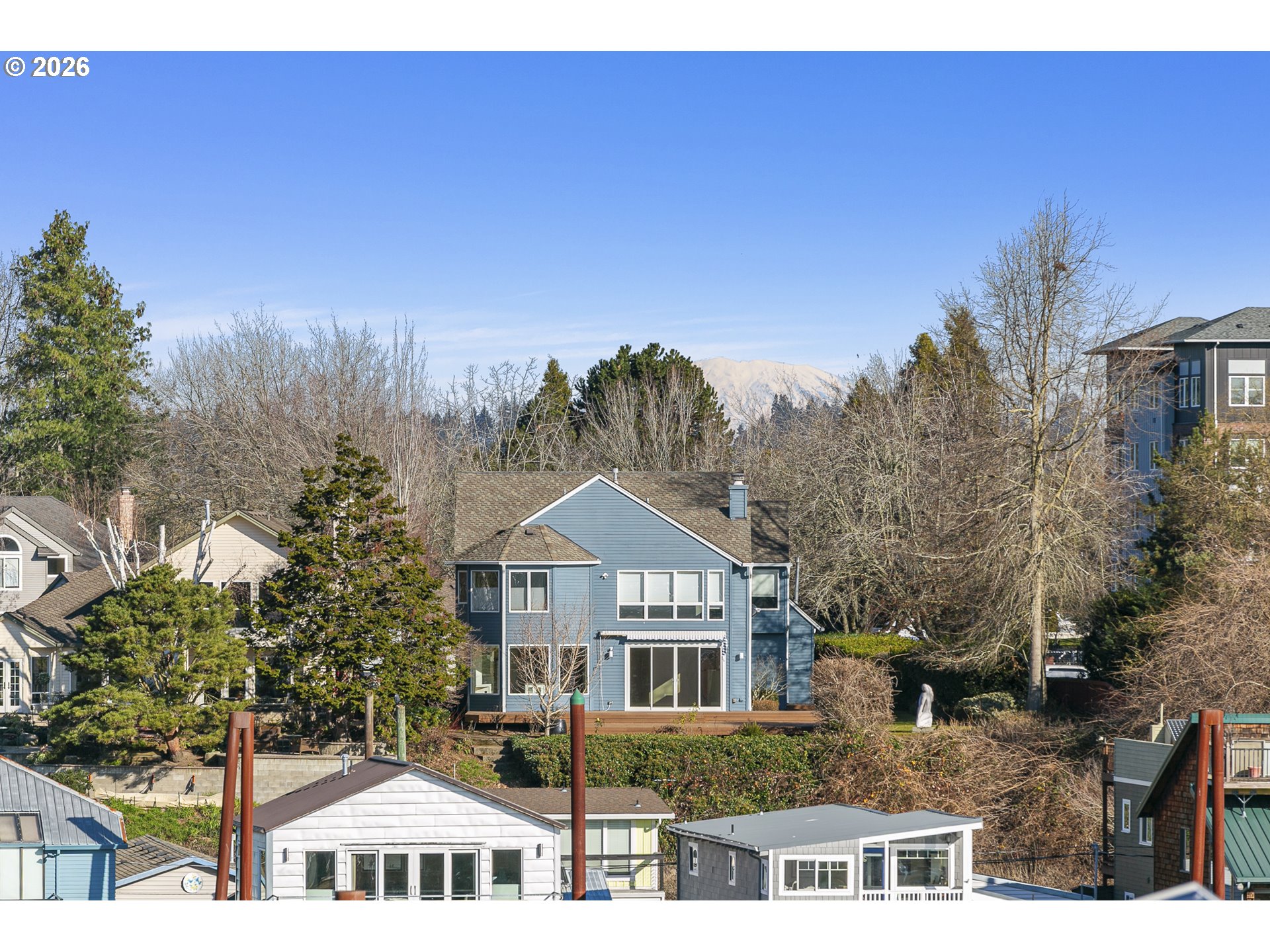 Experience refined waterfront living in Portland’s coveted Bridgeton neighborhood along the Columbia River. This beautifully remodeled, light-filled townhome offers rare riverfront access — with no HOA — and sweeping views that capture both the energy of the river and the serenity of Mt. St. Helens in the distance. Rent a nearby dock space for easy boat access, or launch your paddle board or kayak right from the neighborhood.Designed for both comfort and style, the open-concept floor plan features vaulted ceilings, expansive windows, and a warm, inviting fireplace. The front deck provides a front-row seat to river life — from boating activity to the beloved annual Christmas Ship Parade.The thoughtfully updated kitchen showcases high-end stainless-steel appliances, modern finishes, carrara marble-style porcelain countertops, soft-close cabinets and drawers, and generous workspace for cooking and entertaining. The large covered back deck functions as an additional living space featuring canvas side panels and built-in shades for warmth in the winter and open-air enjoyment in the summer — perfect for entertaining year-round. A custom RailPro railing leads upstairs.The lower level includes an office/den, workshop, and extra storage. The den could serve as a non-conforming 3rd bedroom.The deep two-car garage provides ample space for river gear and storage. This friendly community offers moonlight paddles, monthly dinners, a nearby dog park, and a quiet dead-end street with no through traffic. Enjoy easy access around Portland via 33rd, Marine Drive, or MLK — no freeway needed — with I-5 conveniently close by when you do need it.Buyer to verify schools and SQFT.