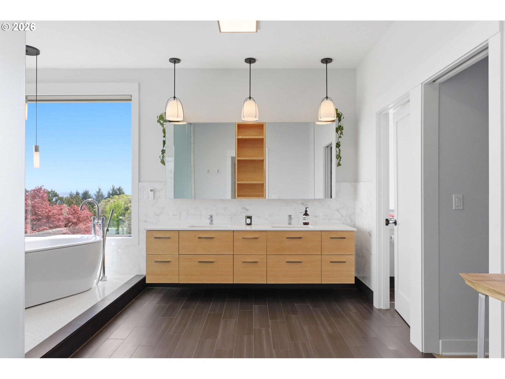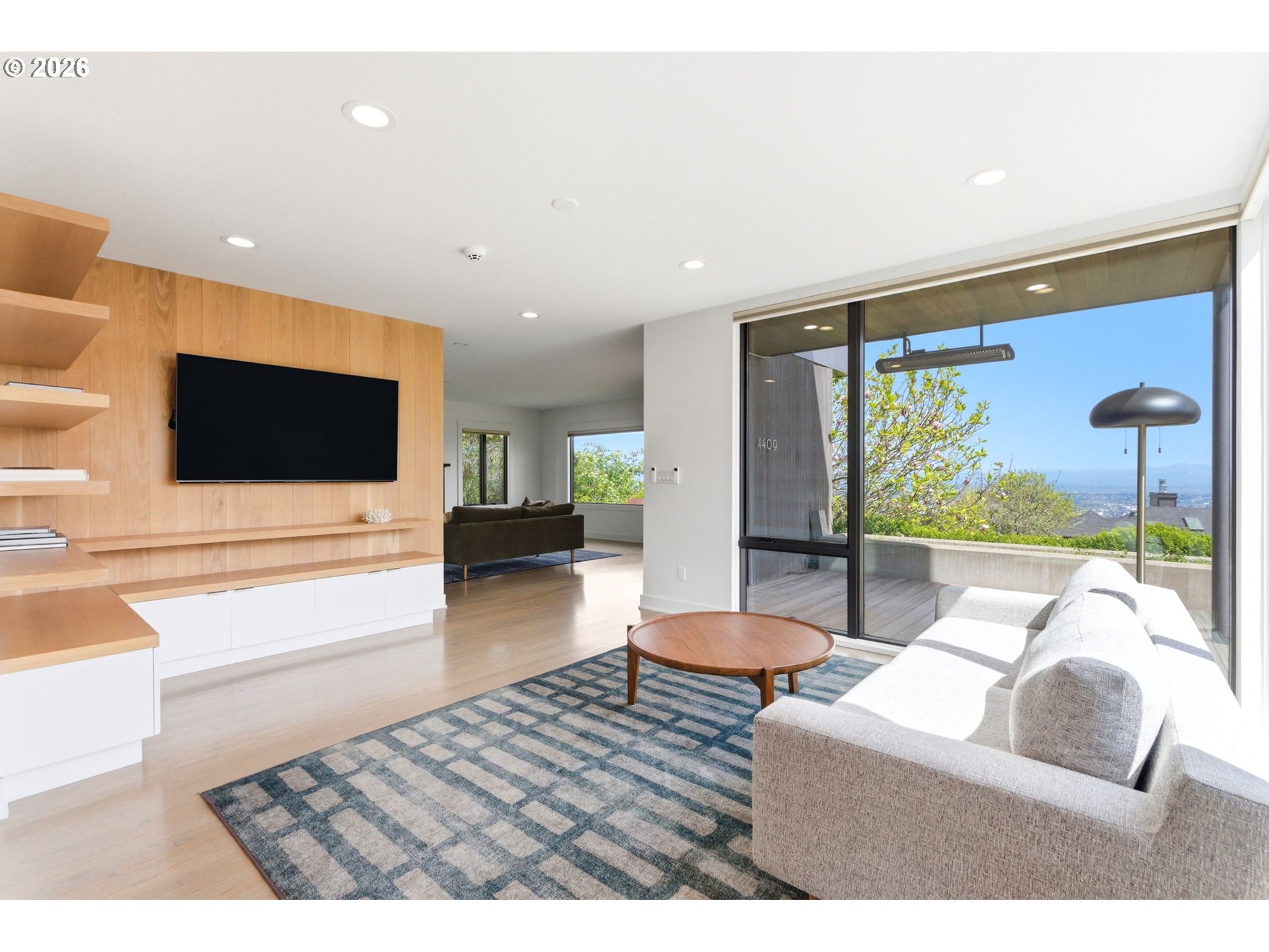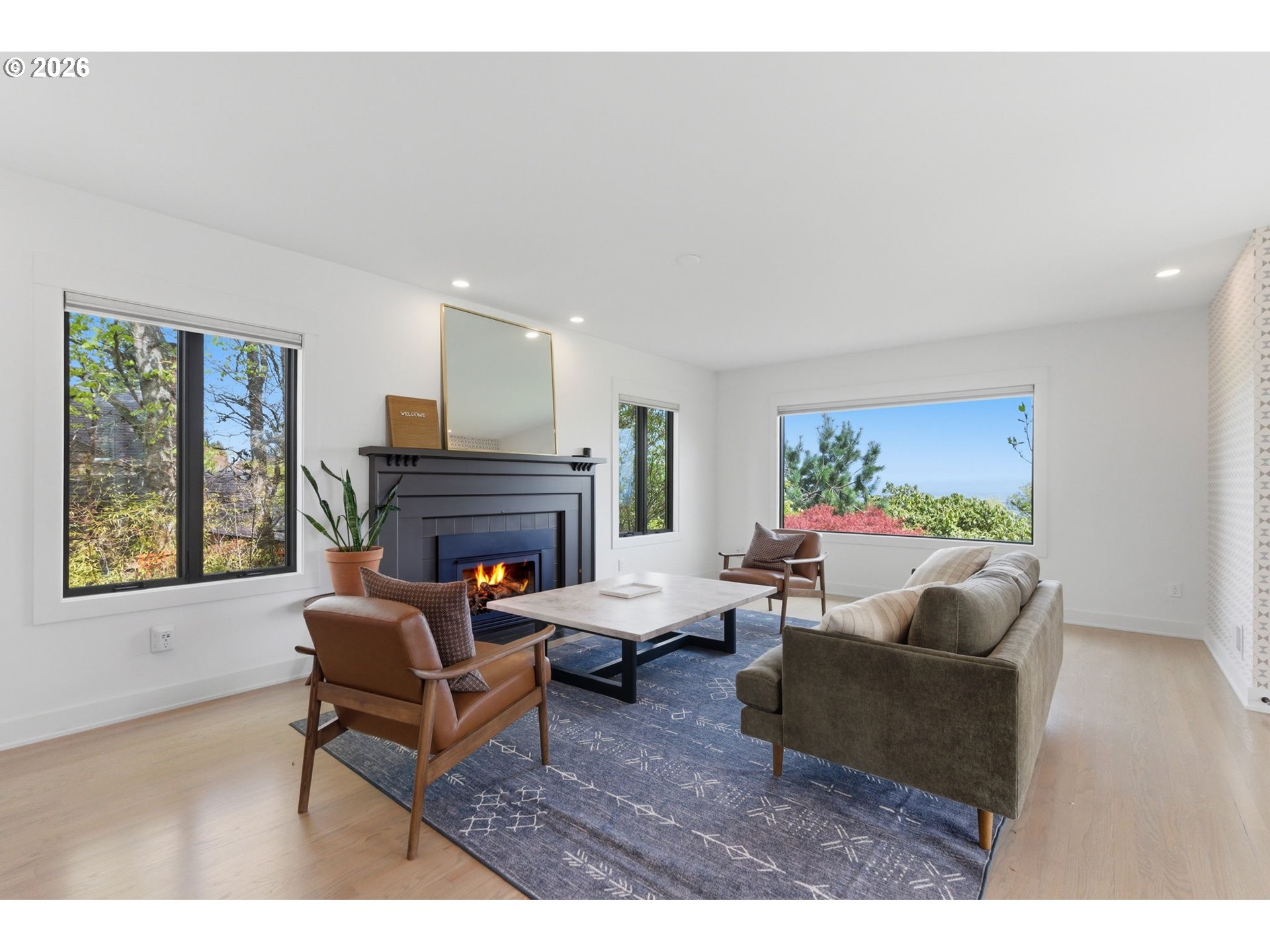 Experience refined NW modern living at the top of coveted Healy Heights where sweeping multi-mountain & city views provide a remarkable everyday backdrop. Easy access to the OHSU campus, this property offers a rare combination of stunning views, functional yard & outdoor spaces, coupled with a true "neighborhhood" culture. The thoughtful designer updates blend modern comfort with timeless livability in a setting that feels both elevated & grounded. Bathed in natural light, the residence showcases beautifully curated interiors & offers a clean, minimalistic aesthetic. With 4 bedrooms plus a dedicated den/office, bonus room and 4 full bathrooms, the layout is designed for flexibility, function, and comfort. The primary suite boasts views from all angles and an expansive spa-like bathroom with a soaking tub overlooking the city & mountains. Well equipped kitchen is the heart of the home featuring a large pantry, island seating and wine refrigerator. Designer-updated bathrooms, new hardwood flooring on upper & lower levels, and newer interior paint enhance the home’s fresh, contemporary feel. A well-executed open floor plan connects dual living spaces with ease, creating a natural flow that supports both entertaining and relaxed daily living. Step outside to enjoy multiple outdoor living spaces, including a front deck with stunning skyline views—an ideal setting for morning coffee or evening sunsets. A private backyard retreat adds additional space for relaxation and enjoyment with a deck, spacious patio and flat yard space. Added peace of mind comes with a whole-house generator, providing comfort and reliability year-round. Conveniently located on a corner lot in coveted Council Crest near parks, and handy to the OHSU campus, Portland’s vibrant dining scene and renowned coffee culture, major commuter routes and feeds into top-rated schools. This home offers an exceptional blend of lifestyle, location, and livability in one of Portland’s most desirable neighborhoods! [Home Energy Score = 1. HES Report at https://rpt.greenbuildingregistry.com/hes/OR10198213]