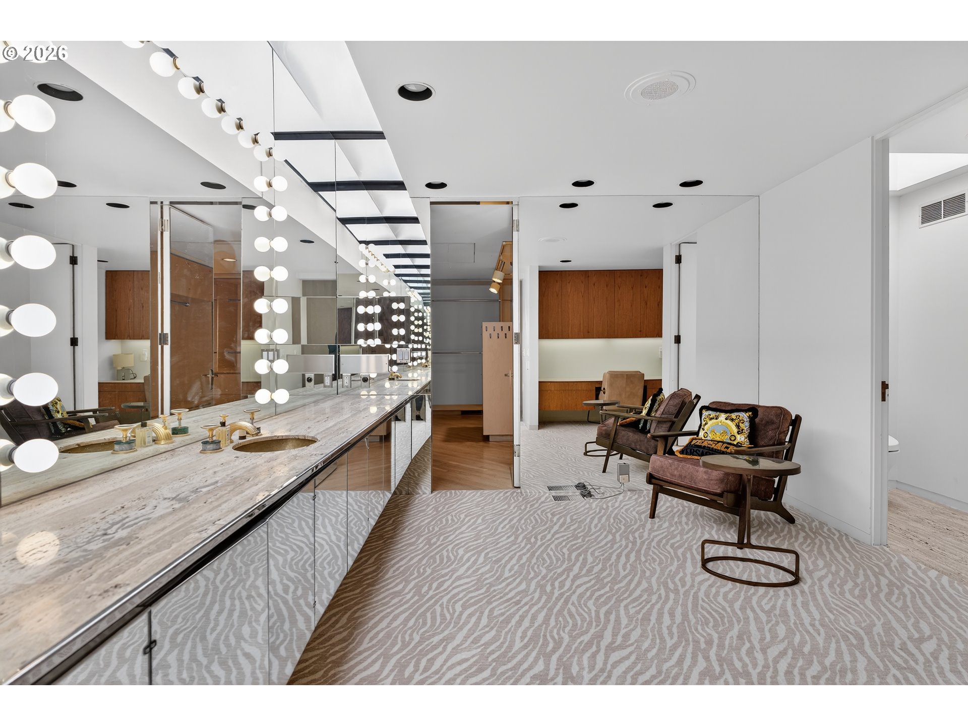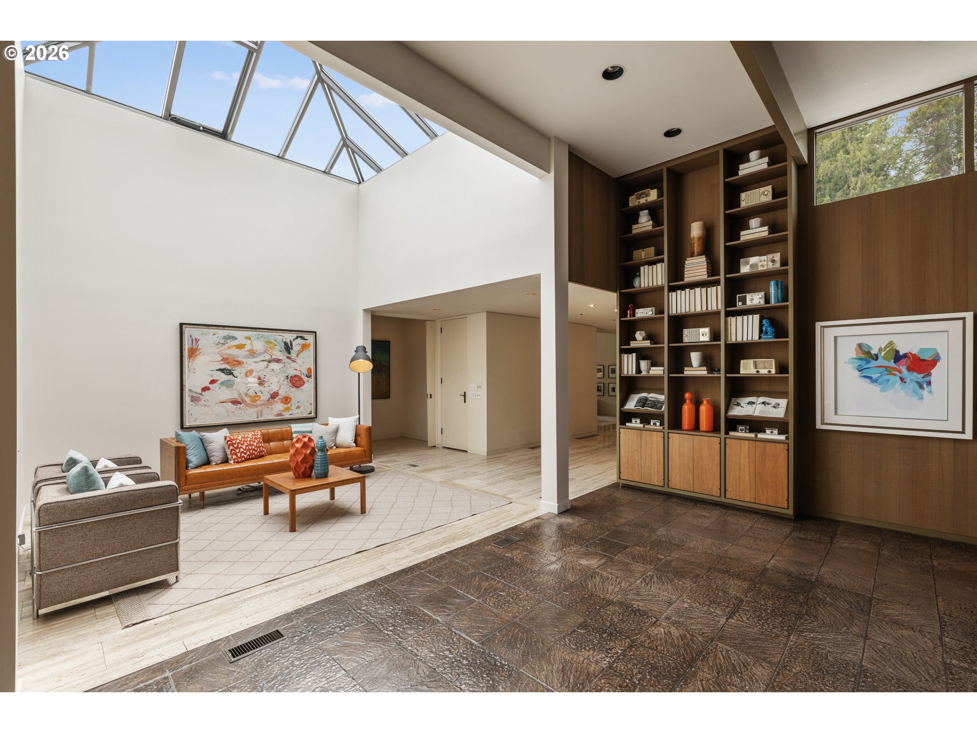 Mid-century modern masterpiece by renowned architect Walter Gordon, celebrated for seamlessly blending indoor and outdoor spaces. This architectural gemfeatures floor-to-ceiling glass walls, skylights, expansive rooms, travertine floors, accent walls, a sunken living room, built-in bookcases, and soaring ceilings.The primary ensuite will absolutely wow you with glass wall, fireplace, conversation pit, and a spa-like bath with dual suites and closets. The lower level offersa complete second living area.Recent updates include a new roof on the main house, a 5-zone HVAC system, new water heaters, new laundry-jet system &luxury carpeting. This home is expansive & full of surprises and delights, offering endless discoveries.Set on nearly an acre of flat property in the prestigiousSouthwest Hills of Portland, the lush grounds feature fountains, a sophisticated yet minimalist landscape design, and a gated entrance. The property alsoincludes a fully remodeled, private guest house with privacy & comfort in mind. Home is conveniently located near OES, French International, Catlin Gabel,Nike, Intel, Downtown Portland, top restaurants, nature trails, and shopping. This one-of-a-kind home is truly unforgettable. [Home Energy Score = 1. HES Report at https://rpt.greenbuildingregistry.com/hes/OR10226724]