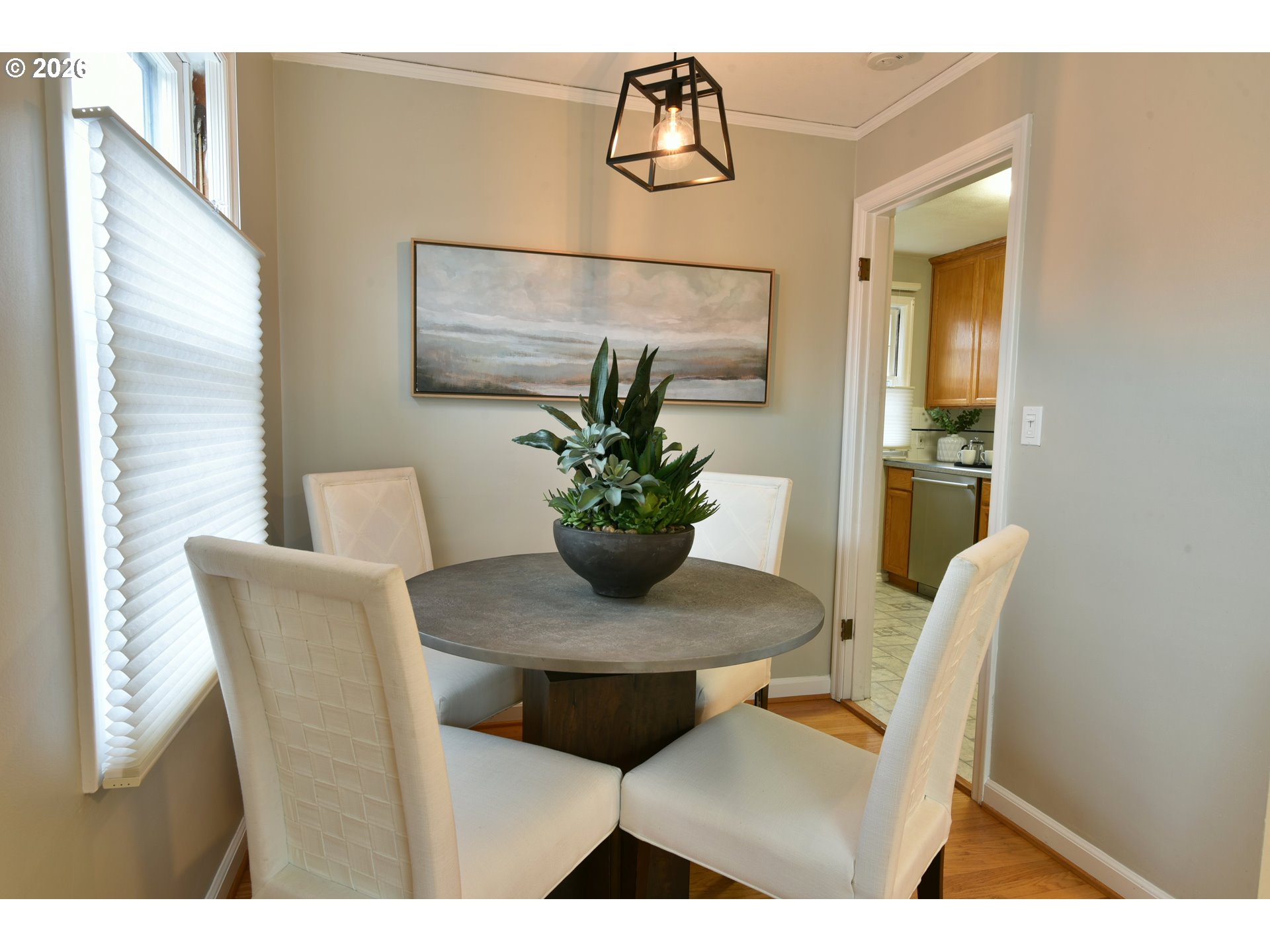 Tucked into the heart of Roseway, this 1944 classic blends vintage charm with the everyday lifestyle today’s urban buyers are looking for. Original oak hardwood floors, iconic corner windows, and abundant natural light create a warm, welcoming feel the moment you walk in. The main level lives easy and connected — an open-feeling kitchen with newer appliances flows into comfortable spaces to cook, gather, relax, and recharge. Modernized electrical and plumbing, new front windows, AC for year-round comfort, and a partial exterior repaint in 2026 add confidence to the character. Smart upgrades including a thermostat, door locks, and security camera bring convenience and peace of mind. Downstairs, the spacious unfinished basement offers laundry, storage, and serious potential — think home gym, creative studio, media room, or future expansion. Step out the back door into your fully fenced backyard (fence built in 2023) designed for Portland living: a new covered pergola for year-round hangouts, raised garden beds, room for pets, play, or summer dinners with friends. The detached garage and long driveway provide rare and valuable off-street parking. And the location? One block to a neighborhood brew pub, coffee shop, and food cart pod, with easy access to transit and just minutes to Fremont and Beaumont’s shops and restaurants. A move-in ready home with soul, space to grow, and a lifestyle that keeps you connected to everything you love about NE Portland. OFFER DEADLINE: MONDAY (3/2) AT NOON.