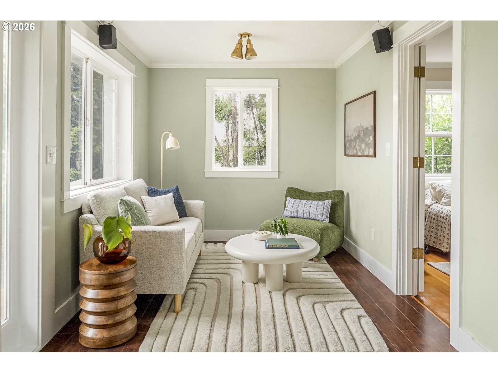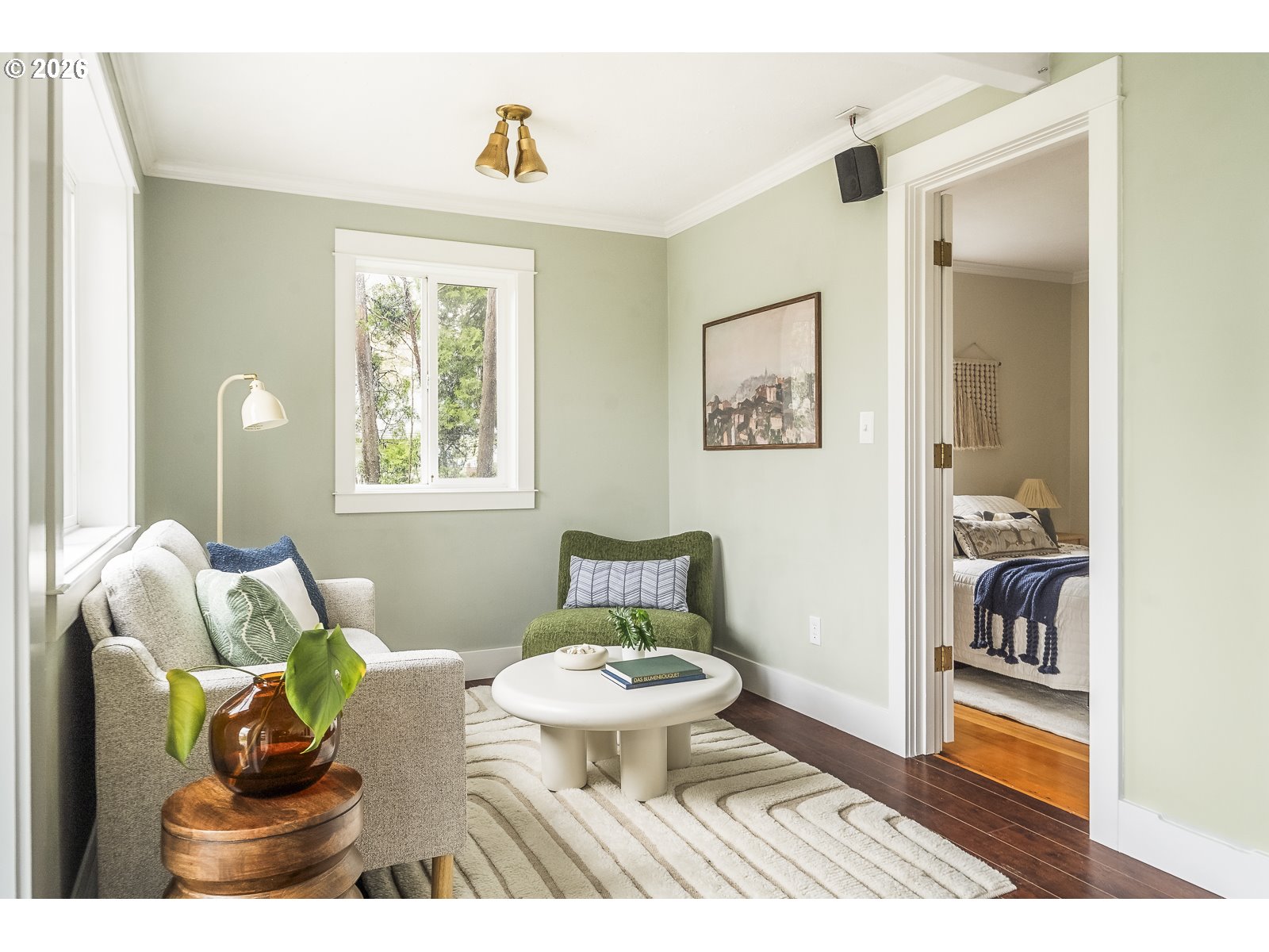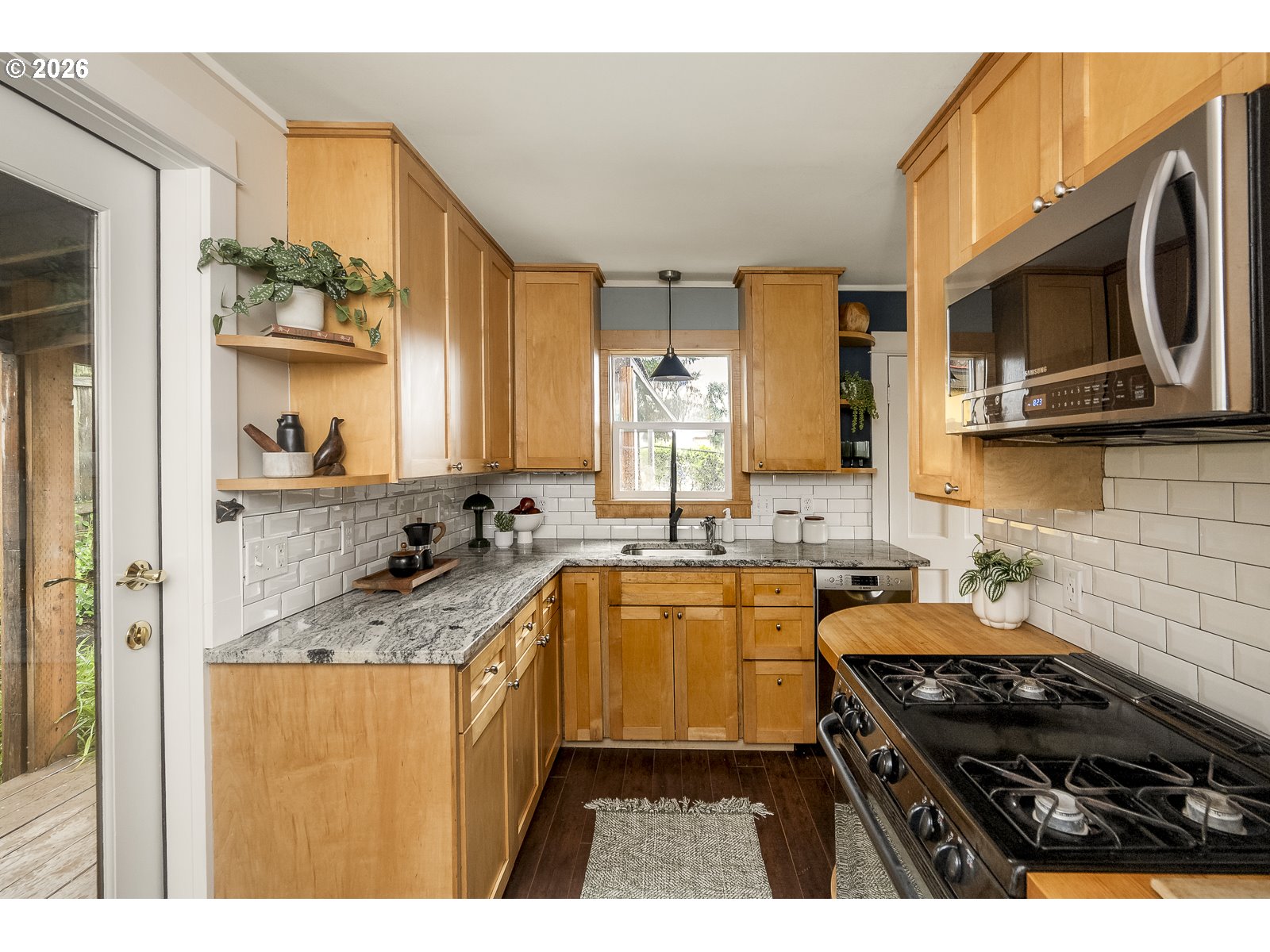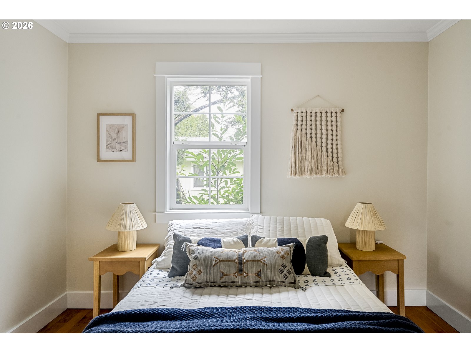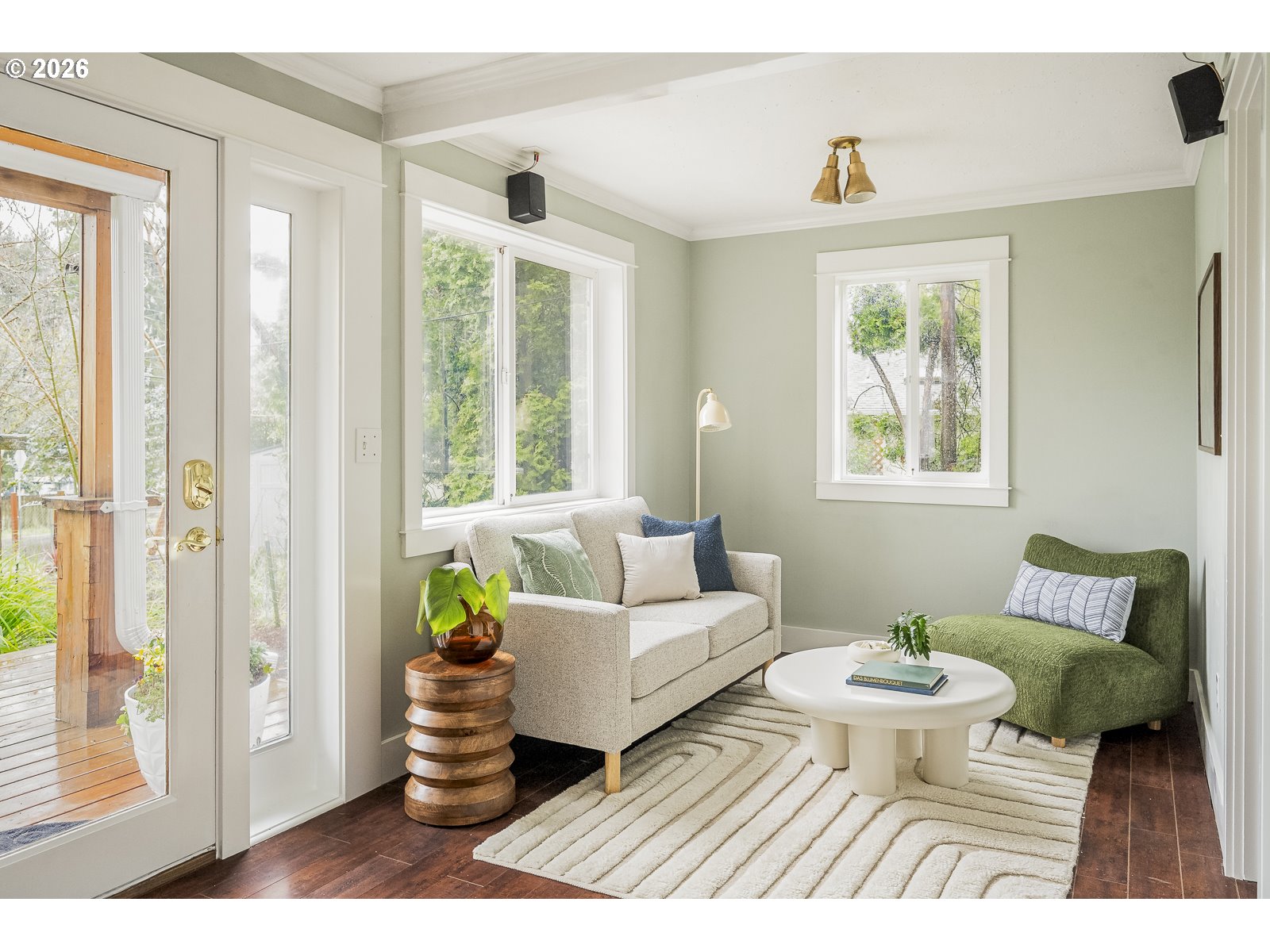 Looking for a private retreat with expansive outdoor spaces located close-in Southeast Portland? Welcome to this charming 1947 cottage set at the back of this long lot where Eastmoreland meets Errol Heights. From the spacious front porch, step into a sweet sitting room and beautiful dining room full of large windows. Newly updated kitchen features new stainless appliances, gas range, maple cabinets, and new granite countertops. Main level bedroom has hardwood floors & walk-in closet and the bathroom features tongue & groove ceiling with skylight. Upstairs primary bedroom has tons of storage, curved ceilings, and gorgeous natural light. Step out onto a newly rebuilt balcony that overlooks the tiered gardens and front yard. Mini splits keep the home cozy and cool as needed, with an energy score of 9! This sanctuary boasts mature trees, raised planter beds, a garden shed, plum & fig trees, a great paver patio with outdoor pizza oven, perfect for entertaining, and a very cool potting cabin. Add a hammock to the large front porch, bask in the sunshine on the flagstone pavers, host outdoor parties throughout the seasons, all within a yard safe for pets and play. Extra-long driveway allows for large vehicle or boat storage. Find the amenities of the newly developed Errol Heights Park and Woodstock’s local shops, New Seasons, and more just a few blocks away. Come discover the charm and comforts of this inspiring property at one of our open houses on Saturday and Sunday! [Home Energy Score = 9. HES Report at https://rpt.greenbuildingregistry.com/hes/OR10034357]