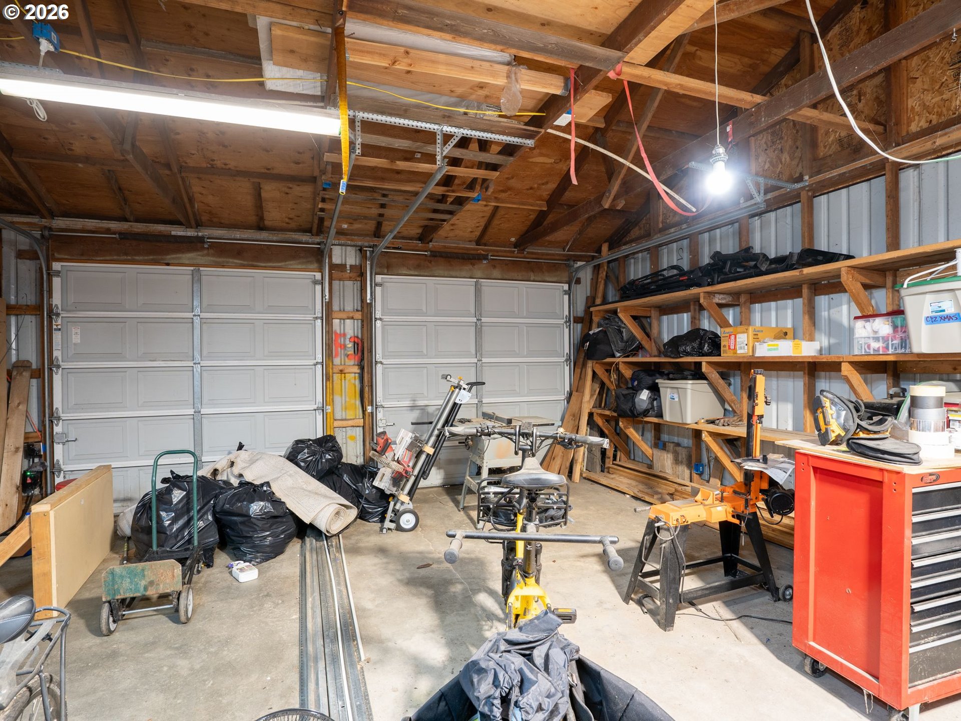 Unicorn property alert! Half an acre with the perfect 2-level house that can be used as one cozy home or as two separate units with a garage plus a detached shop and office. Each floor features 2 bedrooms, a bathroom, its own kitchen, living, dining, laundry, and covered deck/patio. The lower level can be accessed through interior stairs (that could be closed off) and through its own exterior entrance, perfect for a second living space or a rental if desired. Mid-century modern magic abounds w/ a statement wood-burning fireplace, vintage built-in shelves, and hardwood floors throughout main level. Renovated kitchen w/ quartz countertops, shaker cabinets, farmhouse sink, classic beadboard backsplash, and stainless-steel high-end refrigerator. An Edison bulb light fixture & classic built-in hutch distinguish the dining room. You can keep an eye on all the activities and enjoy the wildlife from the rejuvenated deck w/ views of the private, fenced backyard. Main bathroom shower features soothing slate blue tile, a corner bench, and natural pebble tile floor. Downstairs, there’s a spacious living room for everyone to gather around the fireplace, a second kitchen w/ a slider to the patio, and renovated bedrooms (the smaller one is non-conforming due to window size & height). There’s a detached 36‘x23‘ 2-bay shop including an insulated 15‘x13‘ office, perfect for concentrating while working from home with privacy. A 30-amp, 110-volt RV hookup w/ sewer connection is ready to host traveling guests, and there’s an abundance of paved parking space. Garden beds await your green thumb as well as 4 walnut trees & blooming vegetation! New mini split system for air conditioning & heat, electric ranges (plumbed for gas), fireplaces converted back to wood-burning but could be gas again. Extensive re-pipe in 2021 + new electric panels upstairs & downstairs on separate meters. Located at the end of a street in spunky, community-minded Parkrose, this unique home is ready to be yours!