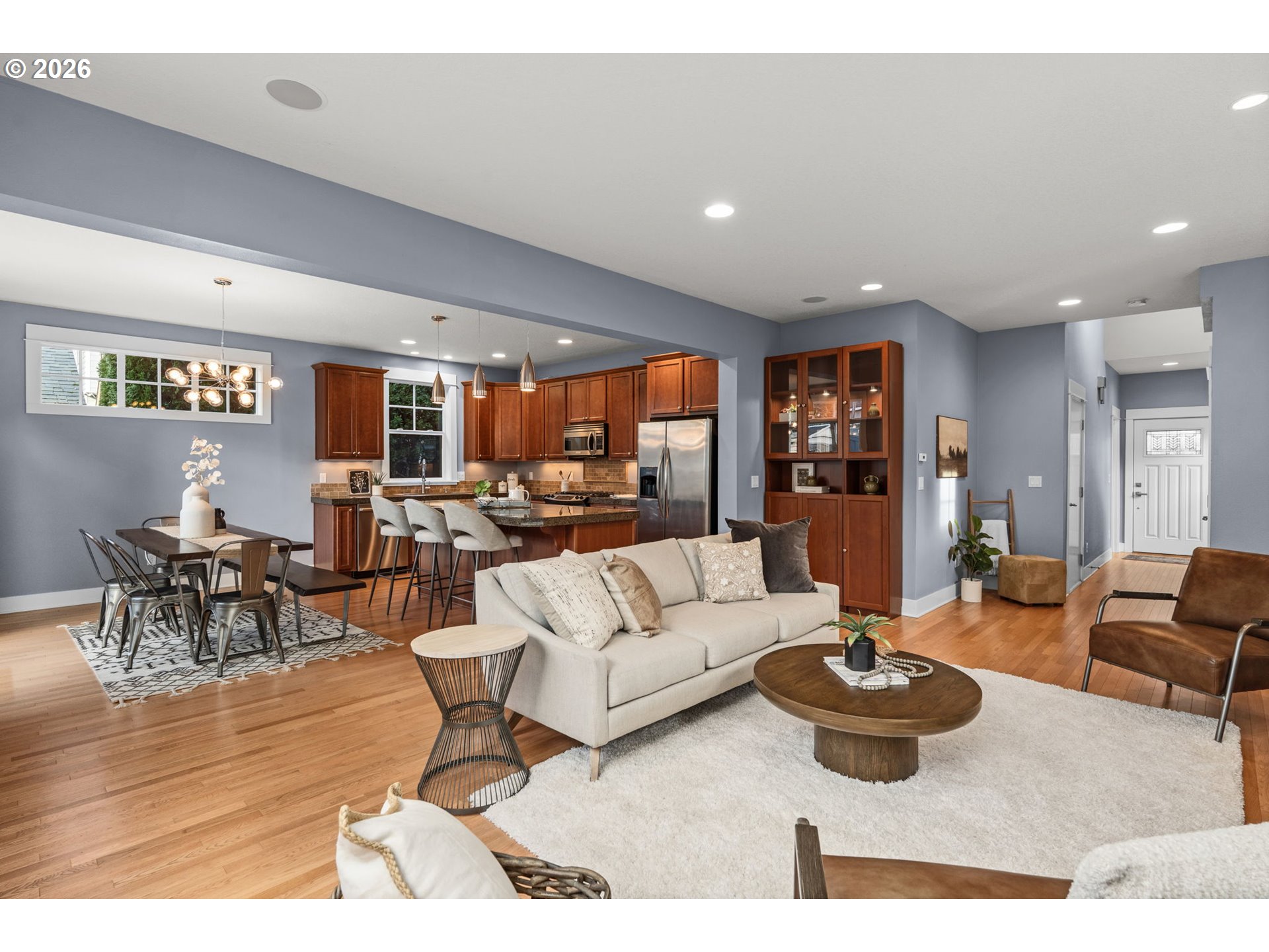 Newer 2009 Craftsman in the heart of Woodstock with modern systems and an easy, livable layout! Covered front porch opens to a great-room main level with hardwood floors, recessed lighting, and a gas fireplace. Open kitchen features granite counters, stainless appliances, built-in hutch, and an island with breakfast bar seating. Dining area slider to the deck for effortless indoor/outdoor entertaining, plus a convenient half bath. Upstairs: spacious primary suite with walk-in closet (built-ins), double vanity, and tiled walk-in shower, plus 3 additional bedrooms, including one with glass French doors, perfect for an office/den or private bedroom. Full hall bath + upstairs laundry. Fully fenced yard with Pistils-designed landscaping, deck + patio, newer covered hot tub, tool shed, and 1-car garage with workshop space. Minutes to Woodstock shops and restaurants! [Home Energy Score = 5. HES Report at https://rpt.greenbuildingregistry.com/hes/OR10243732]