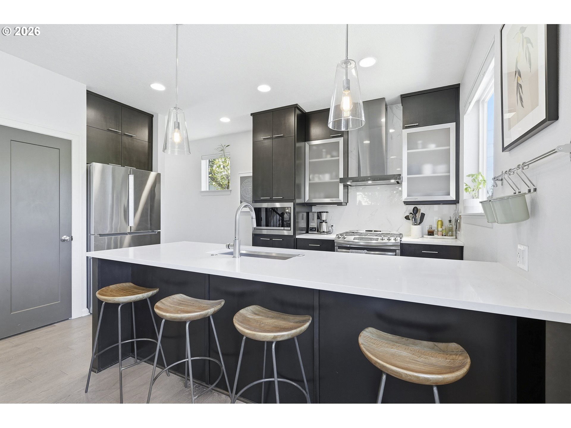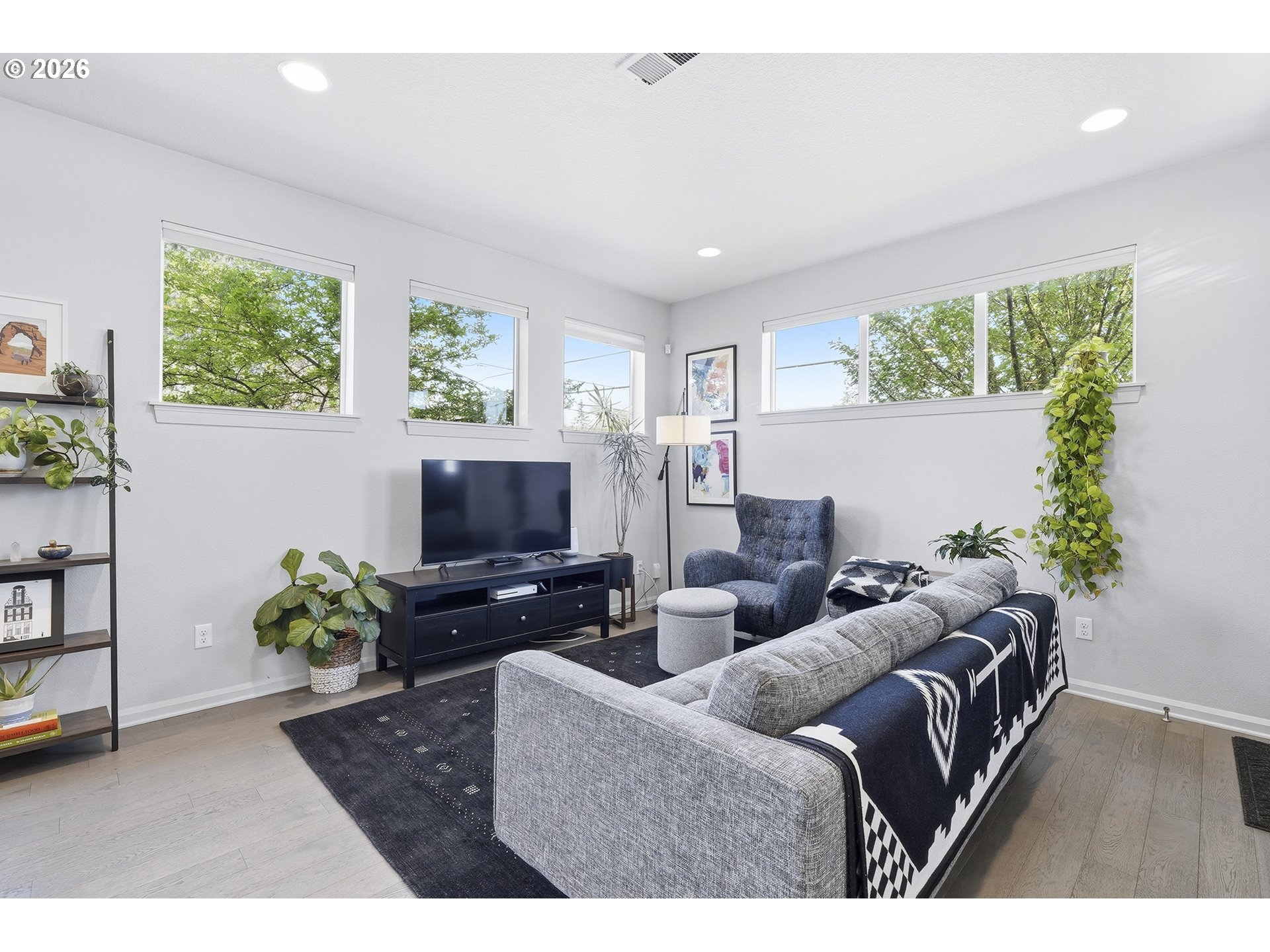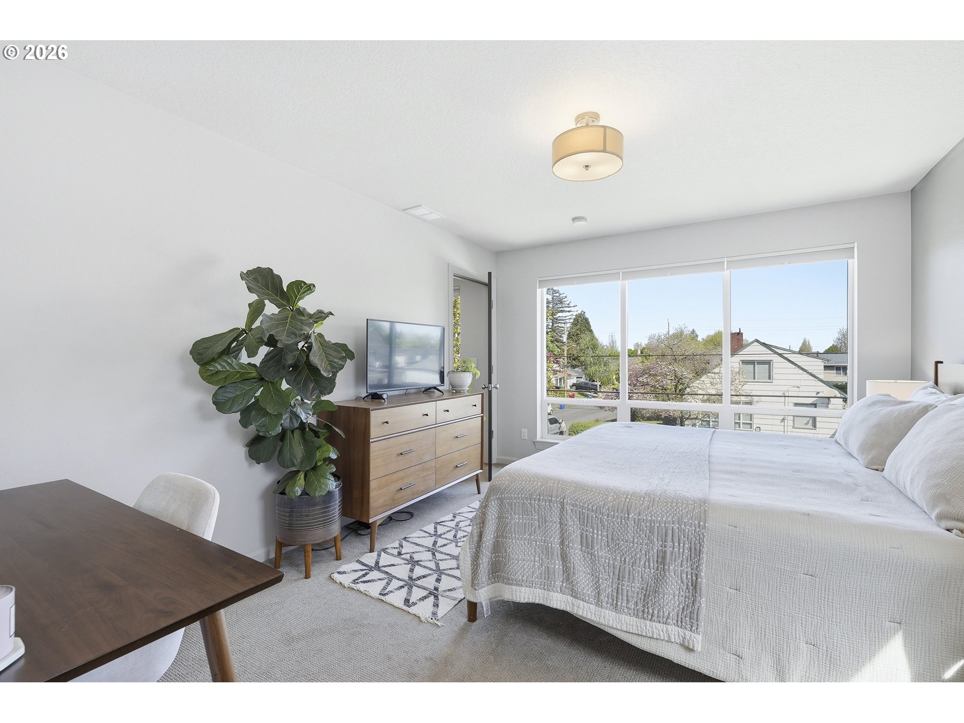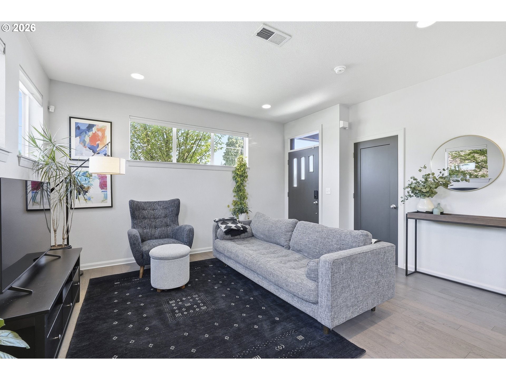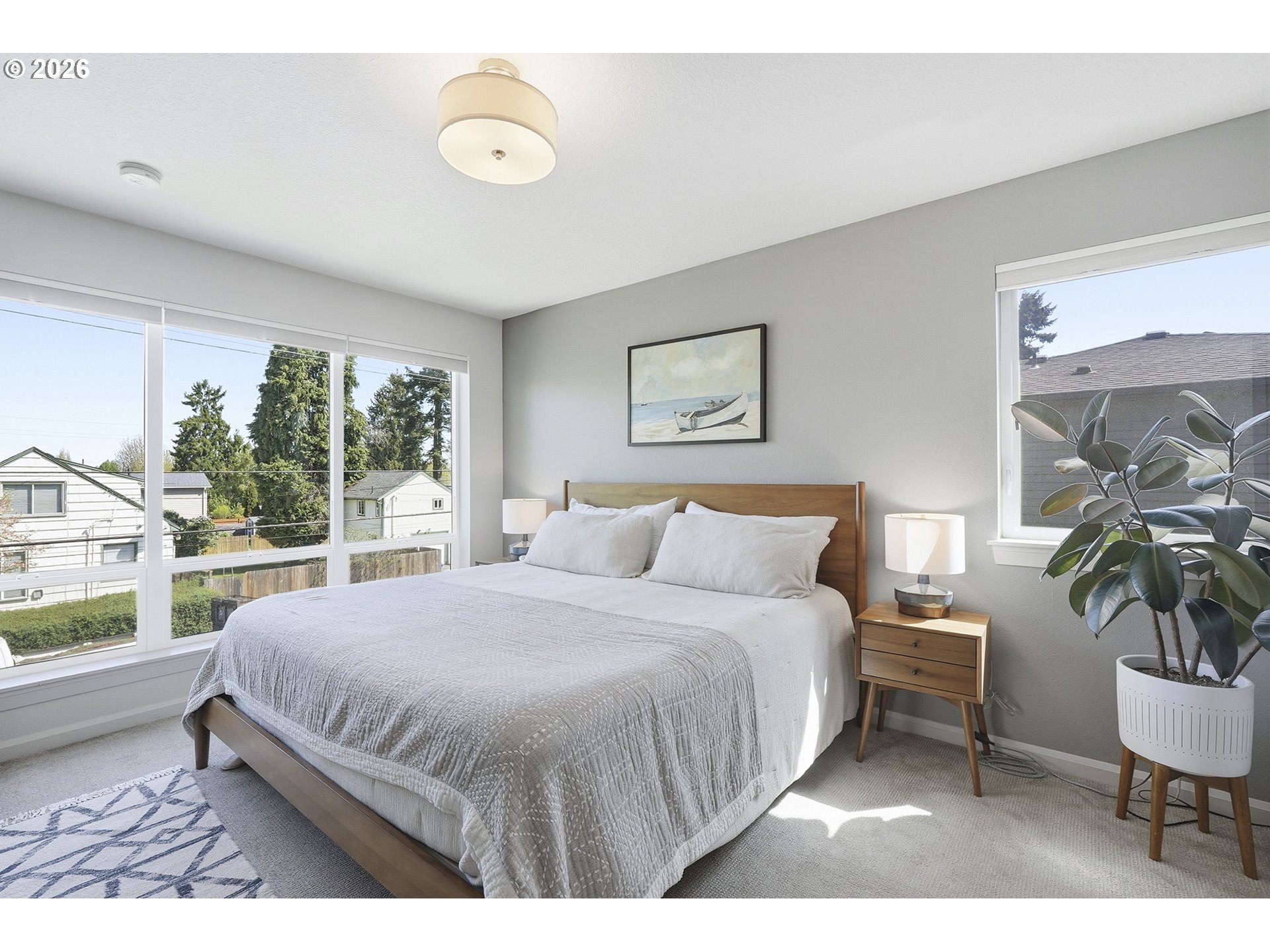 Crafted by award winning Renaissance Homes, this contemporary beauty with eye-catching cedar accents is LEED Certified with a perfect 10 HES & 99 Bike Score giving you environmental bragging rights. Set on a dreamy corner lot & intentionally designed to capture a wow-worthy abundance of natural light while preserving a rare sense of privacy. The open concept main level incorporates high ceilings, engineered hardwoods & equally supports everyday living or elevated entertaining with an atmosphere that soothes. The kitchen offers both beauty and brains with an on-trend dramatic Dekton continuous backsplash, quartz counters with eating bar, pantry, multiple Bosch premium appliances, & multiple smart enabled appliances, blending innovation with design. A large pantry and downstairs roomy coat closet all add to the easy living. Upstairs is a rare find - floor to ceiling windows for even more natural light. The generously sized primary suite provides a calming aesthetic & features double sinks, a roomy tiled walk-in rainhead shower with contrasting accents & walk-in closet with built-ins. The cherry on top? A yard you can use! Brimming with established plantings the fully fenced multi-zone yard maximizes every square inch and is designed with options for both rejuvenation & play using sleek French door gates. Sure to become a favorite spot, the backyard patio with wisteria draped pergola creates a tranquil backdrop for al fresco dining or relaxed evenings inviting you to linger. Additional highlights include tankless water heater, 95% gas furnace, Central A/C, upstairs laundry with built-ins, sprinklers, outdoor gas hookup, & Ring doorbell. Superb Portsmouth location within easy reach of multiple food cart pods, New Seasons, Kenton, U of P, & St. John's. Short stroll to 35 acre Columbia Park/ Annex for nature, sports & community engagement. The $91 million state of the art NoPo Aquatic Center breaking ground in '27 will add to the neighborhood appeal. [Home Energy Score = 10. HES Report at https://rpt.greenbuildingregistry.com/hes/OR10023299]