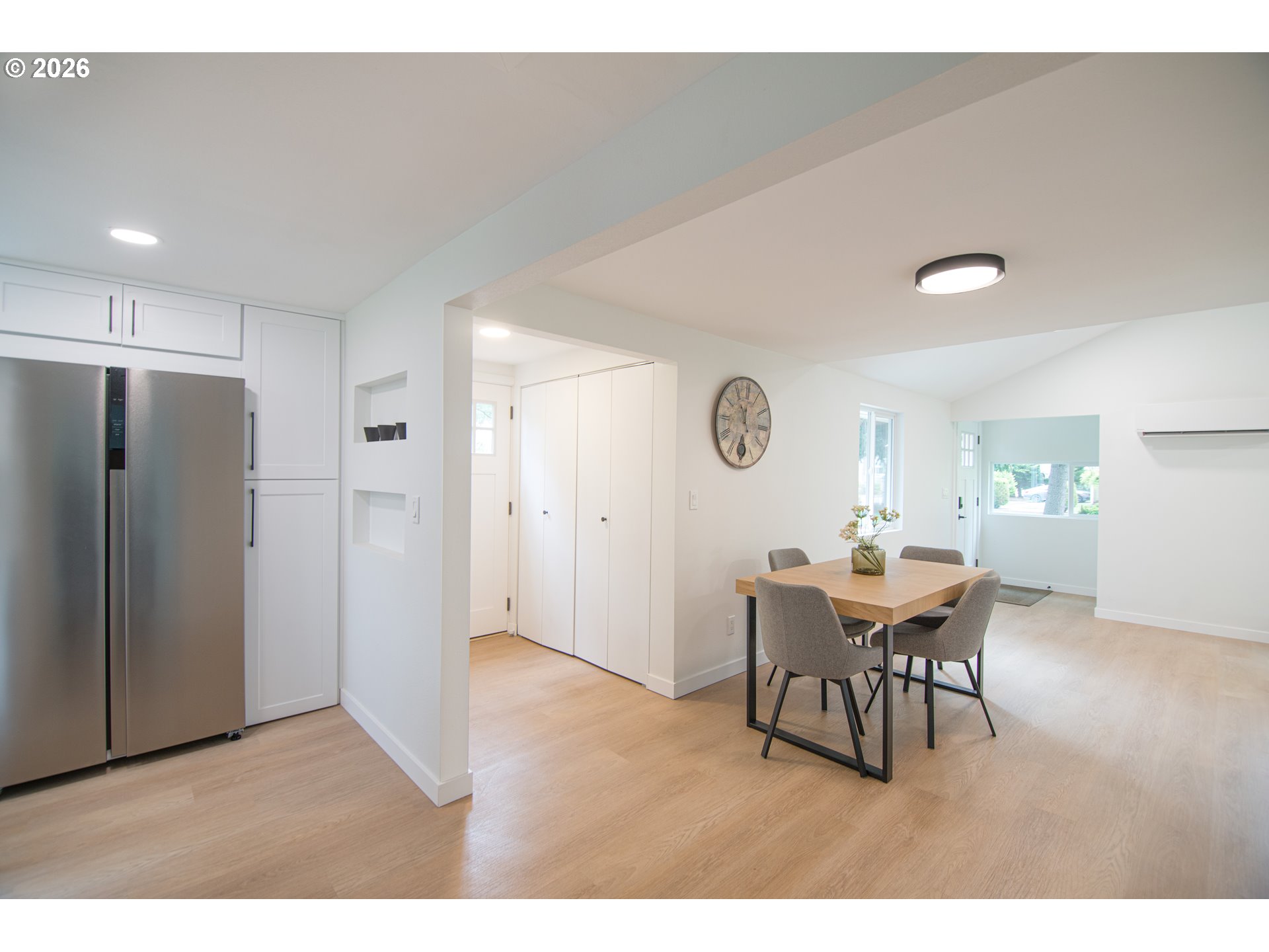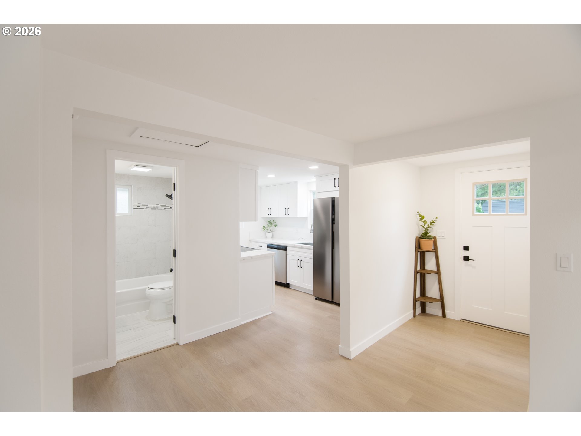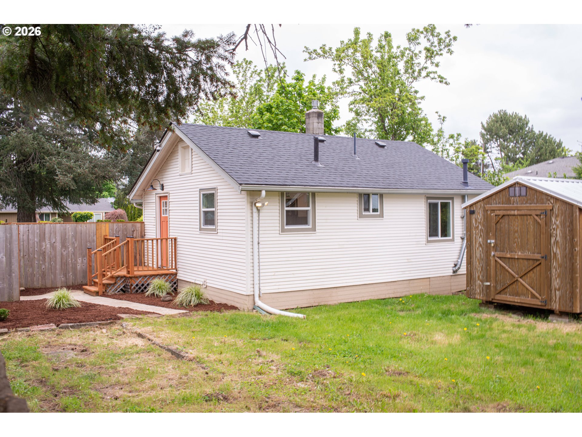 Updated home with all new: roof March 2026, windows, quartz countertops, kitchen cabinets, stainless steel fridge, dishwasher, oven, built-in microwave, flooring, interior paint, doors, and more. Washer & dryer included. Spacious fully fenced backyard with an even larger front yard. Extra storage area available in attic. Large shed in back-yard. Licensed listing agent has ownership interest in this property. [Home Energy Score = 9. HES Report at https://rpt.greenbuildingregistry.com/hes/OR10200882]