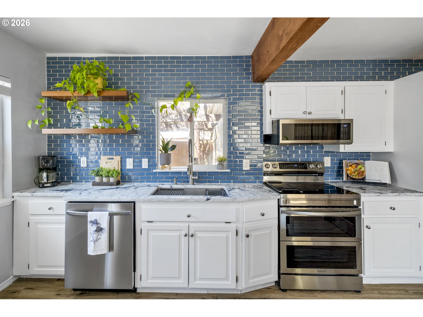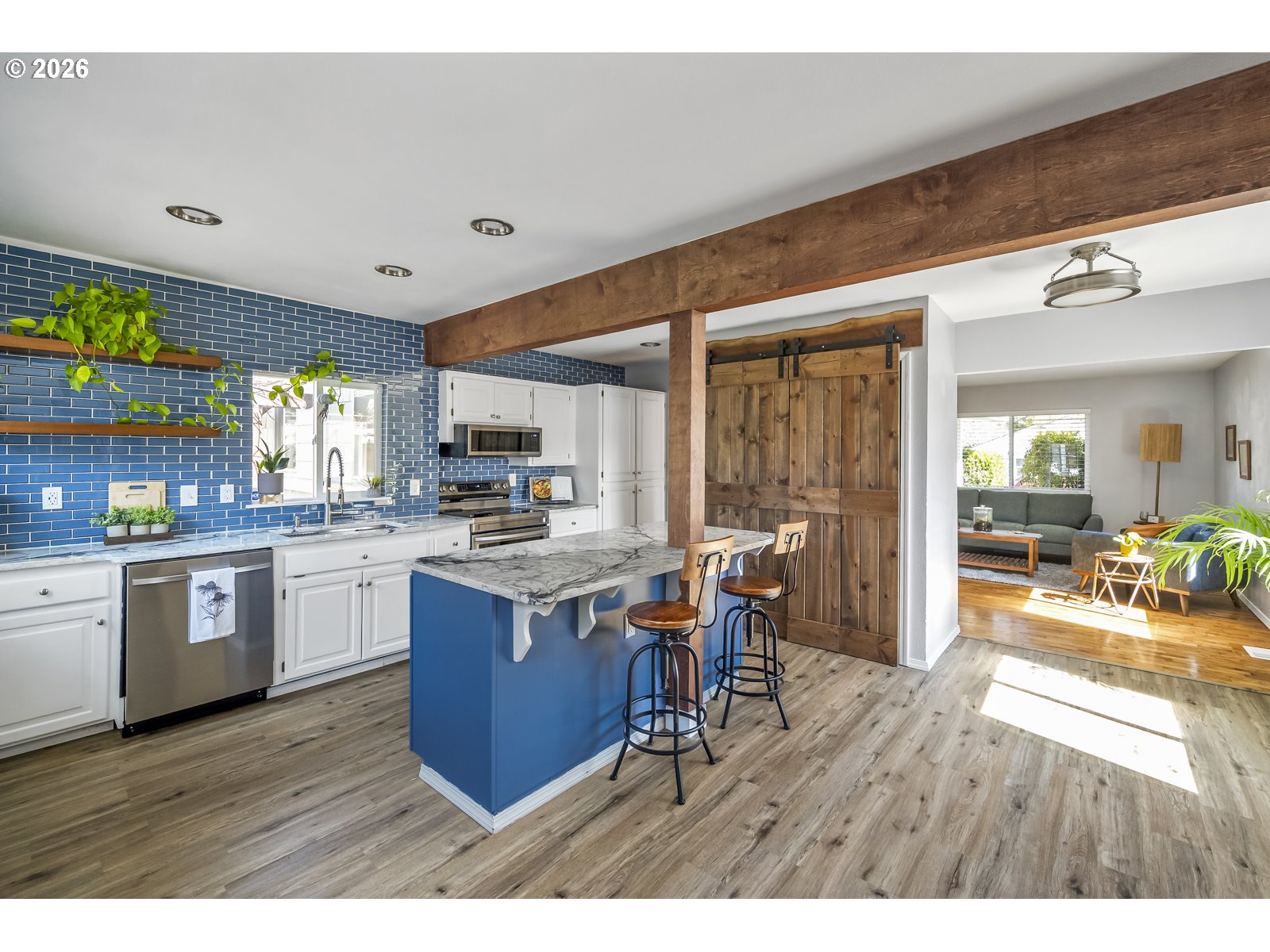Look no further! This charming 1950s ranch blends timeless character with thoughtful updates and an inviting indoor-outdoor lifestyle. Original hardwood floors run throughout, complemented by two spacious bedrooms featuring ceiling fans and custom blinds for comfort and style. The beautifully updated kitchen is truly the heart of the home, featuring a large island with eating area, stainless steel appliances, and a striking blue subway tile backsplash that offers a fresh twist on a classic design. It flows effortlessly into the living spaces, making it ideal for both everyday living and entertaining. Step outside and you’ll find a private oasis on a generous lot. Enjoy morning coffee on the welcoming front porch swing or host gatherings under the pergola and back patio overlooking a tranquil fish pond. The backyard also features a catio, perfect for giving your furry friends a safe and enriching outdoor space. Garden enthusiasts will love the greenhouse, raised beds, and ample room to create their dream landscape. Additional highlights include vinyl windows, forced air heating, A/C, laundry and a radon system for peace of mind. The rare oversized garage and shop, along with RV parking, provide incredible flexibility for hobbies, storage, or future possibilities. Conveniently located near neighborhood favorites like Lents Park, Bloomington Park, and Kelly Butte Natural Area, you’ll enjoy easy access to green space and trails. Minutes from I-205, and a variety of nearby restaurants, making commuting and dining out a breeze. This home truly checks all the boxes, with room to grow and endless opportunities to make it your own. Come see it for yourself and fall in love! [Home Energy Score = 6. HES Report at https://rpt.greenbuildingregistry.com/hes/OR10219468]