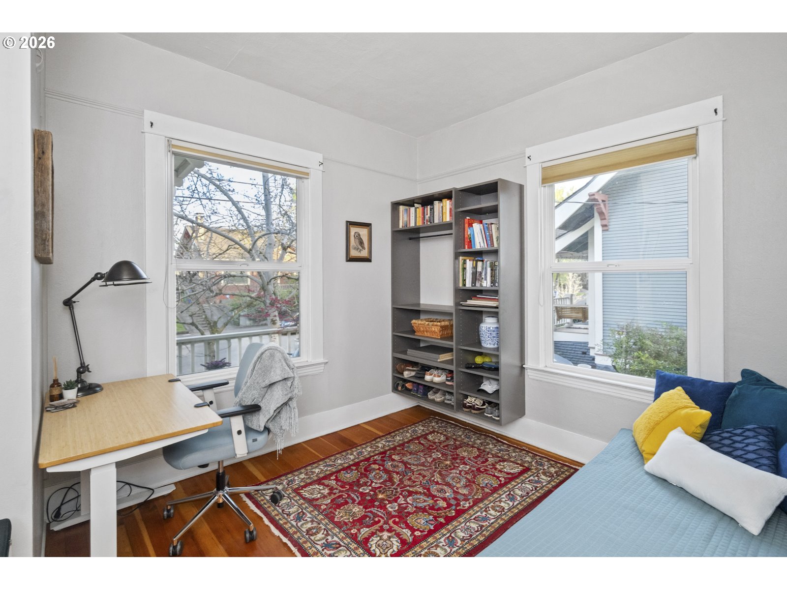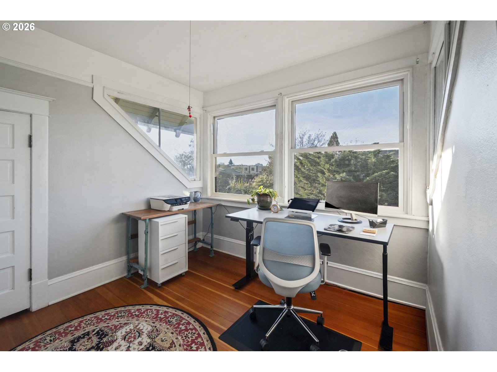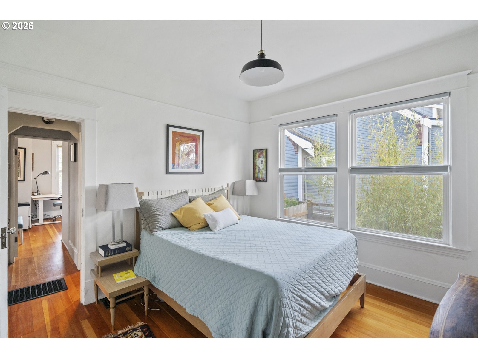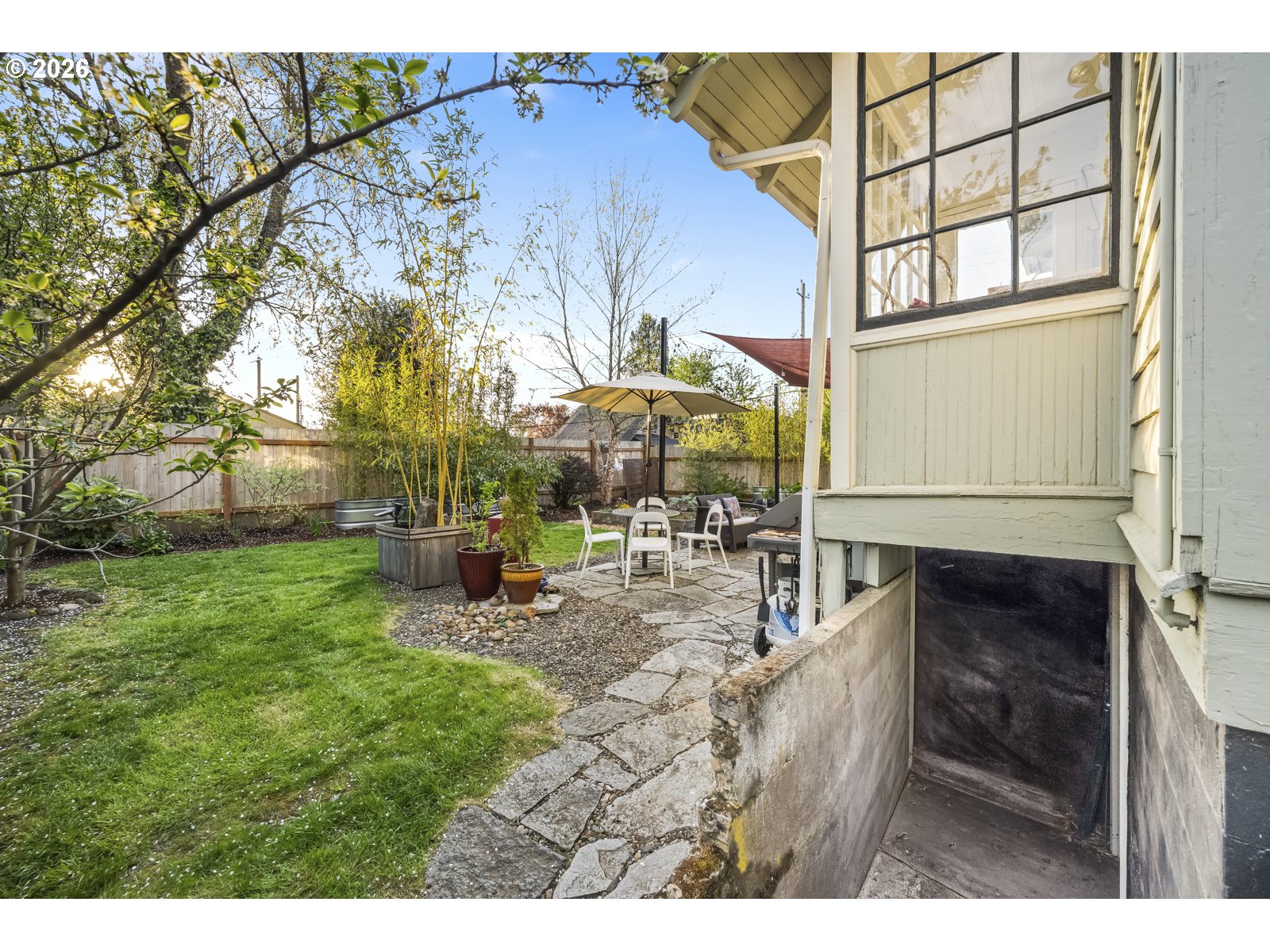 Step right up to this grand 'ol PDX Craftsman, set directly in the heart of the Alberta Arts district. Perched high up on a corner lot, the tasteful landscaping and full front porch invite you in. The large living room with warm fireplace welcomes you, and guides you into the formal dining room with box beam ceilings, and peek-a-boo opening to the kitchen counter - perfect for entertaining. Soaring ceiling height and warm fir floors with new Milgard windows throughout this home give the maximum Portland natural light. The primary bedroom on the main floor has a large closet, with updated bathroom including dual sinks, dual showerheads, and huge walk-in shower, just around the corner. The main floor office room can double as a dressing room/guest room with built-in wardrobe. The kitchen has been updated with stainless steel appliances, quartz countertops, and has an eating bar with light-drenched windows, facing the backyard. Just past the kitchen is a covered mud-room, which is the perfect transition from the outdoor backyard entrance into the house. Heading upstairs, a sweet reading nook is tucked into the landing, with the 2nd full updated bathroom including shower, tub, and new skylight. The remaining 3 bedrooms are all upstairs, each containing large closets, fir floors, and plenty of spaciousness. Downstairs, the full basement with separate entrance is clean and primed for your finishing touches. Given all the goodies of this amazing home, the fully fenced backyard is really where it's at. A great sail shade covers the patio, which looks out to the raised garden beds, mature fruiting trees, and lush scene that reminds you to take long deep breaths and take it all in. Welcome to this gem of a home!