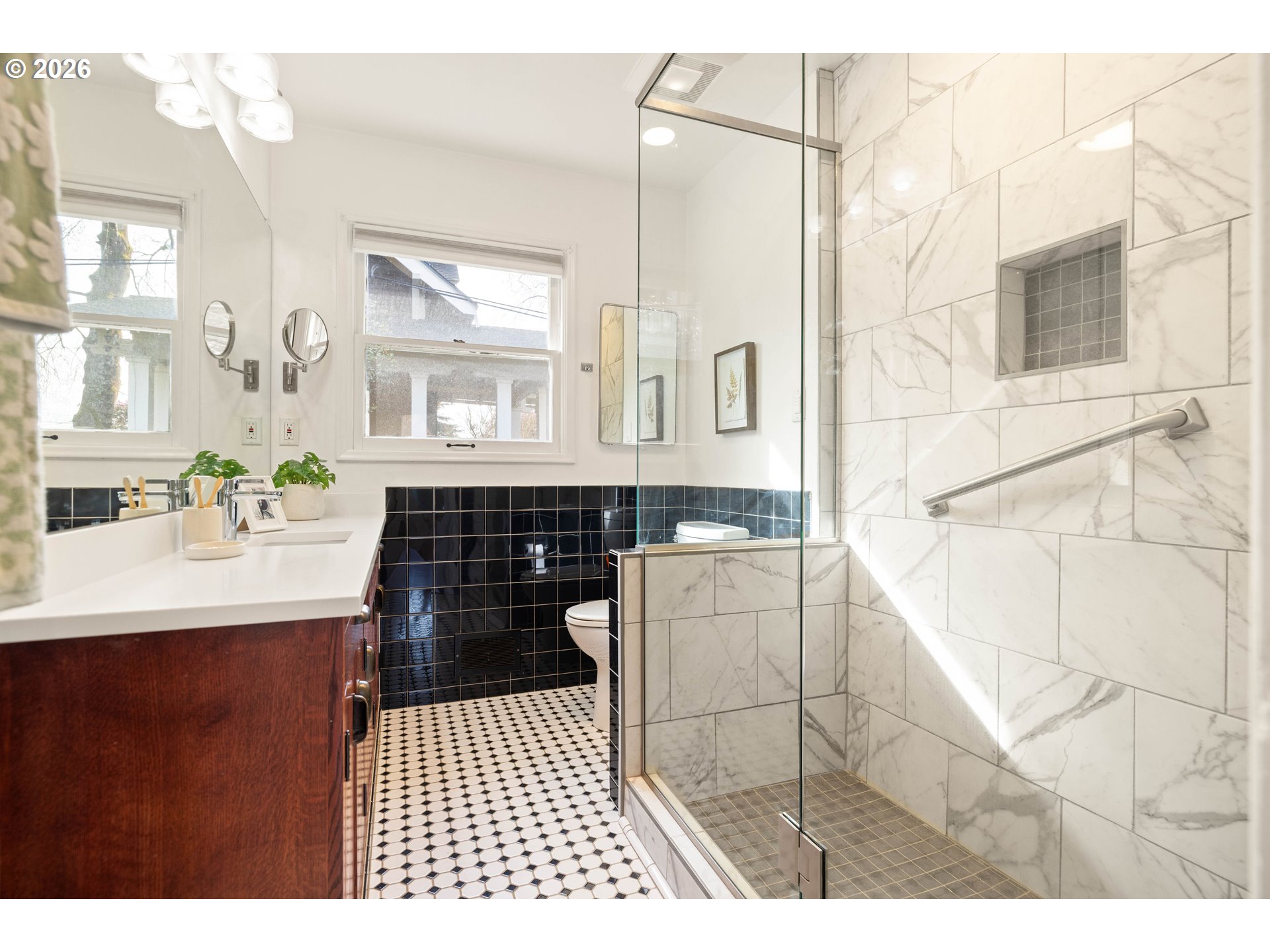 Modernized Portland Classic Between Mt. Tabor and Hawthorne.Discover the perfect blend of historic charm and modern utility in this impeccably renovated SE Portland home. Situated on a sunny corner lot conveniently positioned between the forested trails of Mt. Tabor Park and the vibrant eateries of Hawthorne Blvd, this residence offers a lifestyle. The main level invites you in with beautiful hardwoods, a cozy fireplace, and abundant natural light. Large south-facing windows welcome sunsets like you wouldn't believe. The home’s versatility shines in the newly remodeled lower-level living quarters, which currently serve as a successful, income-producing Airbnb—ideal for multi-generational living or a turnkey investment opportunity.The exterior features curb appeal with fresh exterior paint, untapped yard space offering garden potential and an expansive fenced backyard for privacy and play. The dedicated RV parking and an EV charger provide ample options for your vehicles. System upgrades include a gas furnace and an on-demand gas hot water heater, and a recently replaced full gutter system. Truly move-in ready and prepared for the future, this is a rare opportunity to own a "best of both worlds" property in one of Portland's most sought-after locations. Come to visit and fall in love!