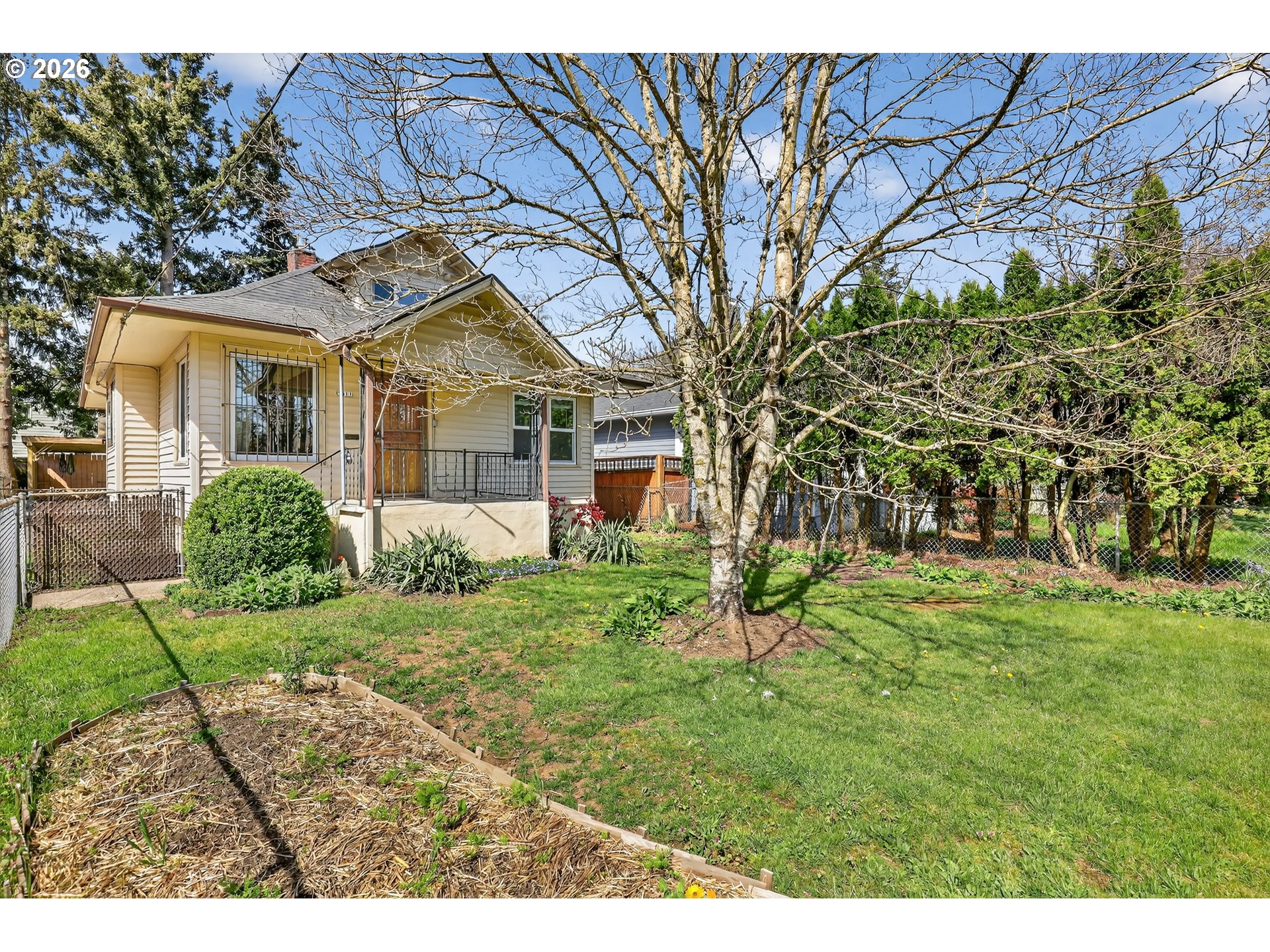 Charming 3 bedroom Bungalow with great front porch to enjoy coffee in the morning while enjoying your neighborhood activity..Woodstock and Mt Scott Community Center are near by. Light and bright inside with the recent refreshing that’s been done including new carpeting. Gas fireplace accents the living room. Kitchen has lots of cabinets encounter space..the 2 main floor bedrooms have access to The bath..Mail floor Utility Room..700 sq ft.. unfinished basement.. central air conditioning..Lots of windows have been updated.. vinyl siding..Fenced yard and plenty of room for gardening. Large covered car port..hurry to see this package of charm and location..: