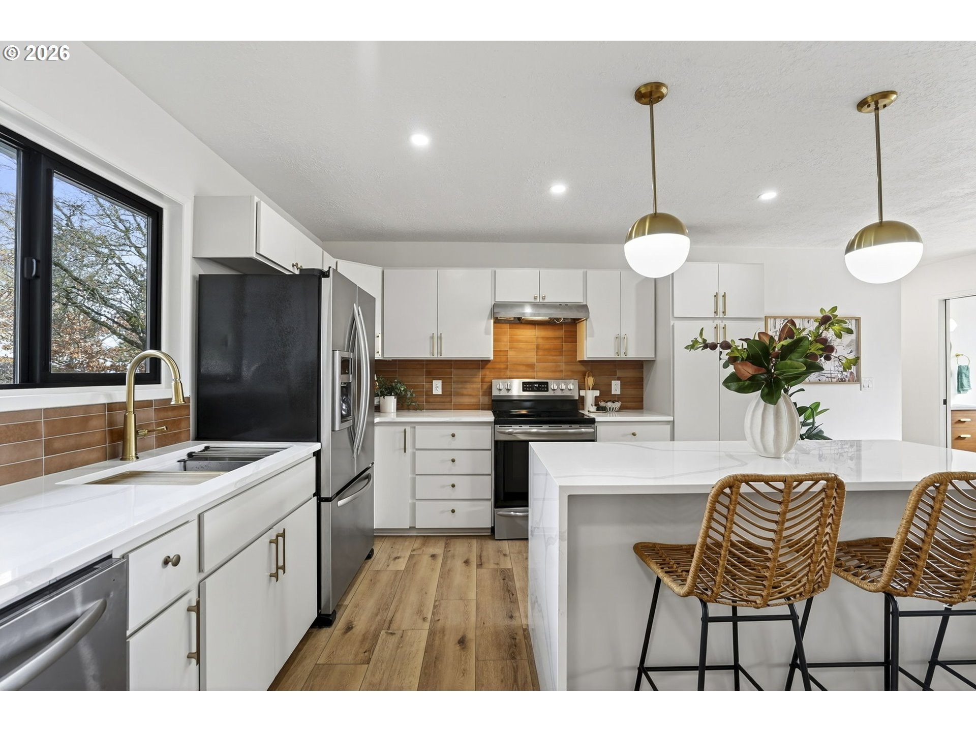 Beautifully remodeled home just moments from the vibrant Alberta Arts District! Step inside to a bright, open-concept floor plan where the kitchen and living room flow seamlessly together. The stunning kitchen features quartz countertops that waterfall over a spacious cook’s island, stainless steel appliances, abundant cabinetry, and a convenient pantry. The main living area is warmed by new flooring and a cozy wood-burning fireplace, creating an inviting space to gather. The main level offers three bedrooms and 1.5 fully remodeled baths, while the lower level provides two additional bedrooms, a bonus room, and a beautifully updated full bath—ideal for guests, multigenerational living, or potential rental space. Sleek black fiberglass windows throughout and a sliding glass door lead to the deck, overlooking a huge fenced backyard perfect for relaxing, entertaining, and enjoying the outdoors. Open House Saturday 3/7 from 11am-1pm! [Home Energy Score = 4. HES Report at https://rpt.greenbuildingregistry.com/hes/OR10244694]