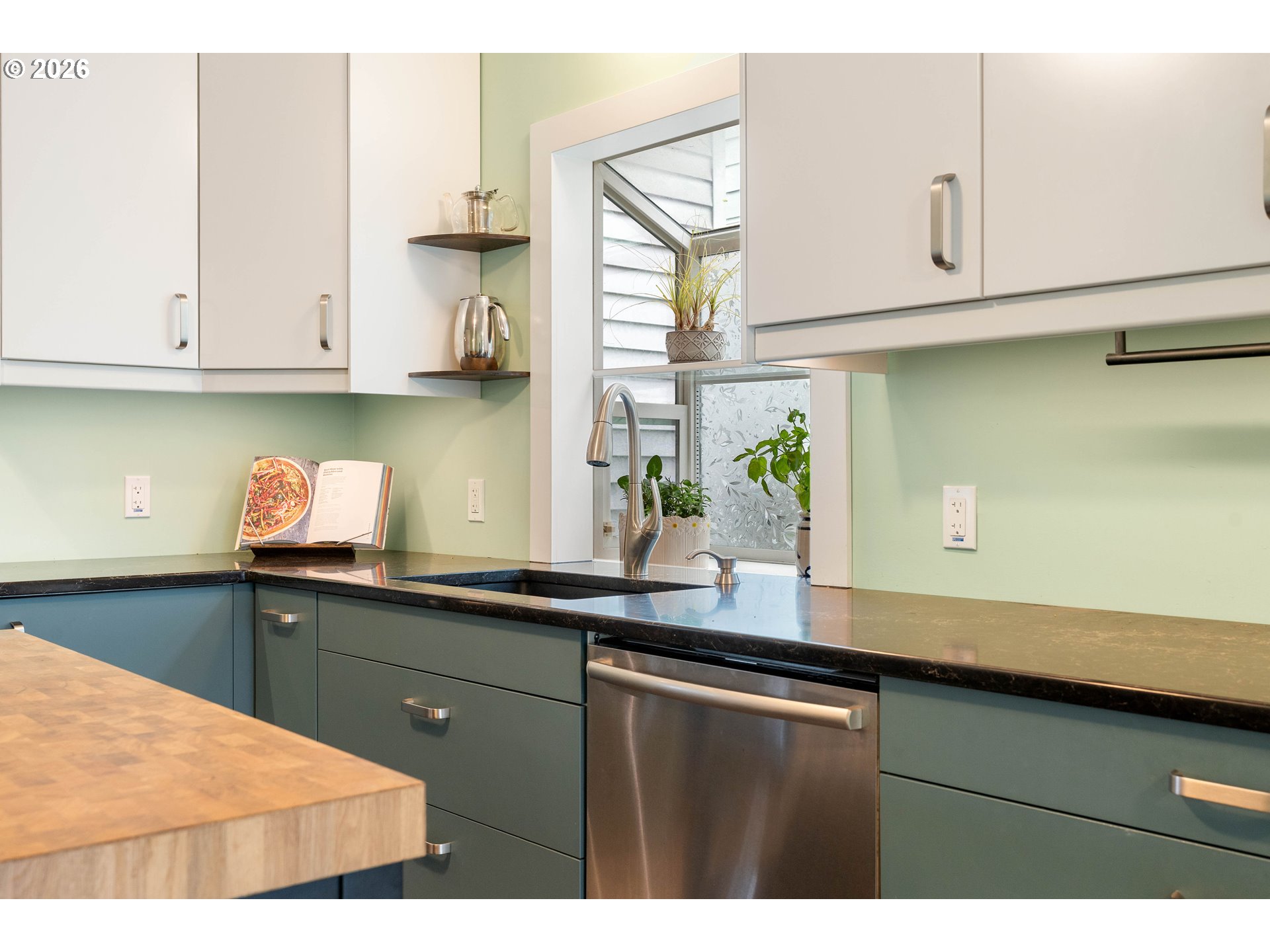 Cute, updated, and ready to welcome you home in the Creston-Kenilworth neighborhood! This home sits on a great corner lot that adds additional space for RV parking or off-street parking at the detached garage. This home lives mostly on the main level and has been nicely refreshed with new interior paint, updated kitchen and bath. This comfortable, easy-flow floorplan also has a fabulous entry vestibule that you did not even know you needed! The fully updated kitchen, with garden window and granite counters and sink, is a great spot to cook, gather and feast on the fresh veggies from your own backyard garden. The bathroom has been updated with a spa-like feel and easy access walk-in shower. The living room features a smart fireplace with customizable LED flame colors to set the vibe, and adjustable heat settings for a little extra coziness. Downstairs, you’ll find a flexible bonus area that works well for storage, a workout space, and hobby area, along with the laundry. There’s also a separate side entrance to the basement and main level which adds to the floor plan versatility. Some bonuses include a newer roof (about 10 years old), updated windows, and PEX and copper plumbing. The detached one-car garage is spacious and could easily double as a workshop. Outside, the level, fenced, and gated yard is perfect for relaxing, entertaining, gardening, or just enjoying a little extra space to spread out. [Home Energy Score = 5. HES Report at https://rpt.greenbuildingregistry.com/hes/OR10243747]