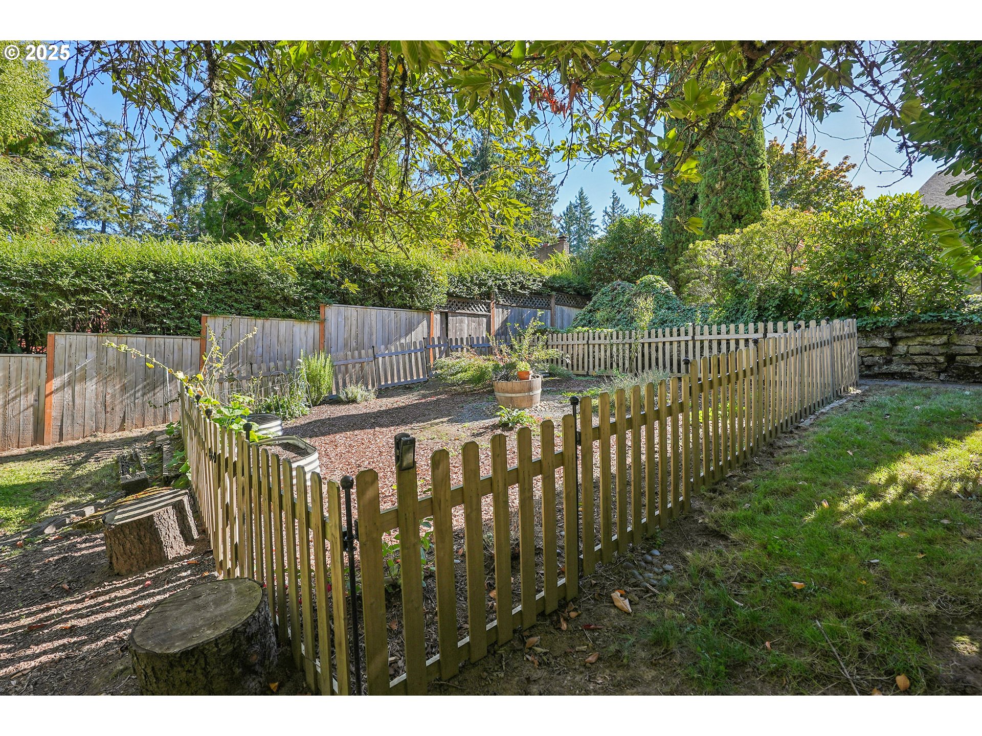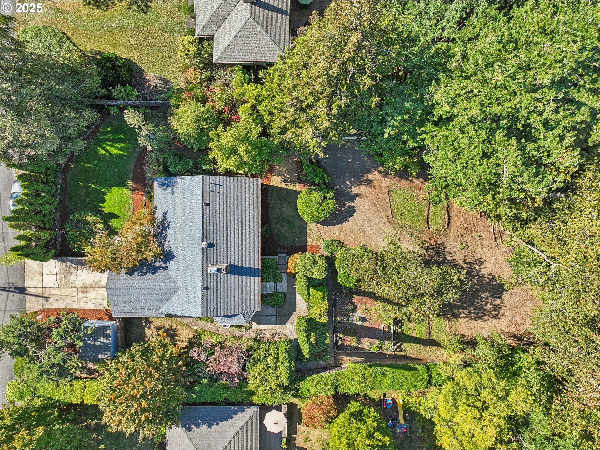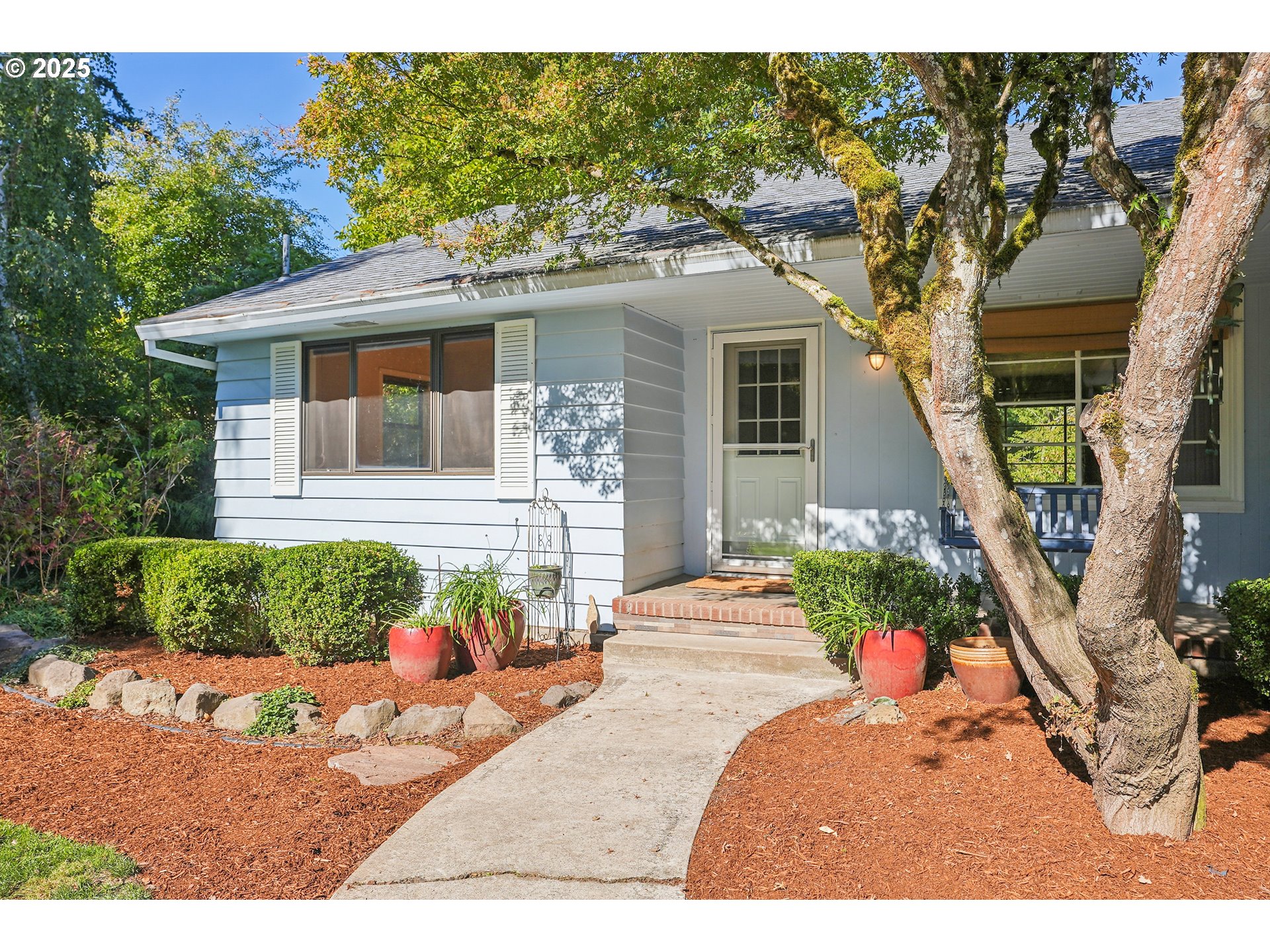 Mornings begin on the back patio at 5531 SW Brugger Street, coffee in hand, mist rising through the trees on the nearly one-acre lot. The property extends toward Ash Creek and is fully trailed and fenced, creating a private sanctuary of green. The gardens and meadow surrounding the home shift beautifully with the seasons, offering color, calm, and the soft sound of nature.Inside, the home is welcoming, functional, and filled with light. Sunlight filters through large windows, warming the hardwood floors and the heart of the home, a wood burning fireplace that promises cozy nights when the air turns cool. The day moves easily here: work or play in one of four bedrooms, a quiet moment in the garden, dinner with friends that drifts from dining room to patio. As dusk settles, the yard glows under the canopy of trees with plenty of green giving space to breathe. Set within the Ash Creek-Crestwood neighborhood, the home is surrounded by natural beauty, with tree filled streets, green spaces, and nearby trails that wind through Dickinson Park and Woods Memorial Natural Area. The location is quiet and tucked at the end of the street, yet close to local cafés, markets, and neighborhood restaurants, offering that ideal urban suburban blend Portlanders love. All this plus peace of mind with new plumbing, updated A/C, electric panel, and furnace. [Home Energy Score = 2. HES Report at https://rpt.greenbuildingregistry.com/hes/OR10205012]