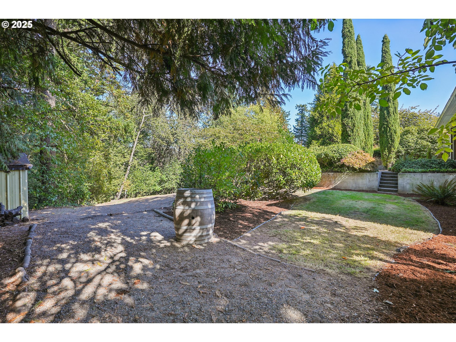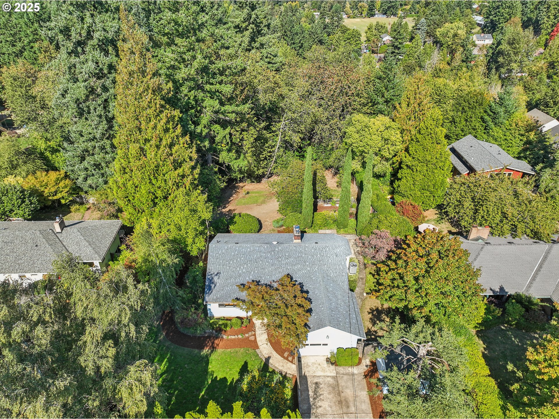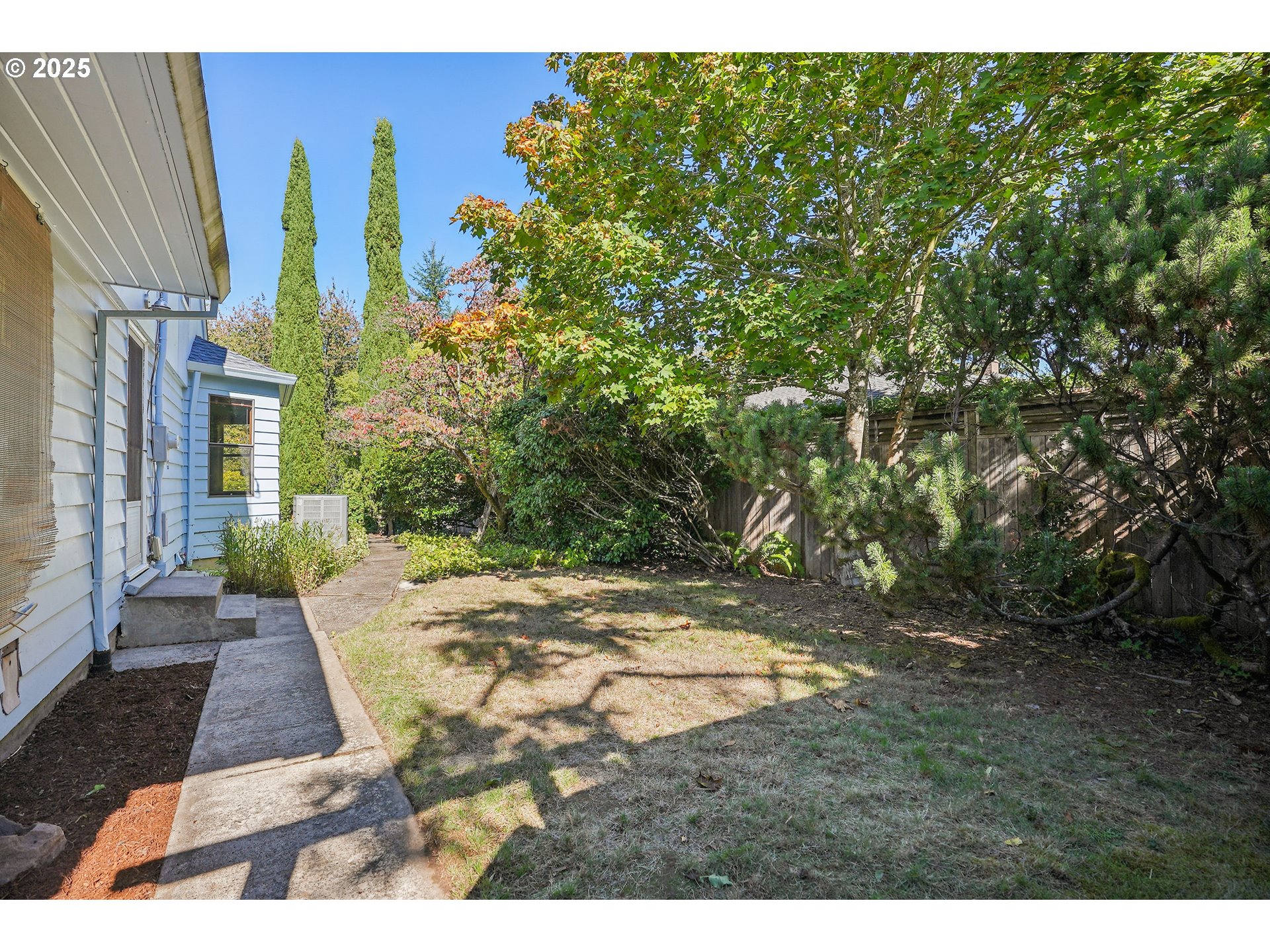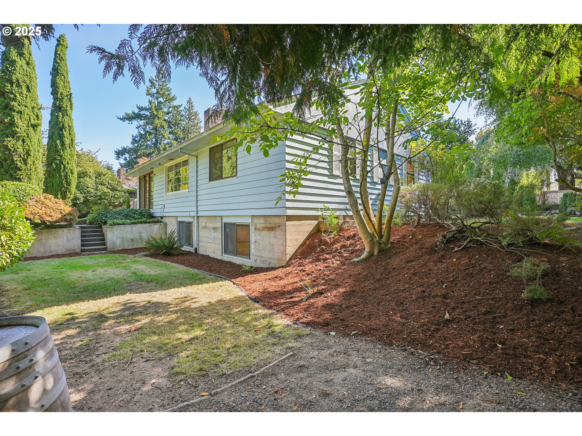 Mornings begin on the back patio at 5531 SW Brugger Street, coffee in hand, mist rising through the trees on the nearly one-acre lot. The property extends toward Ash Creek and is fully trailed and fenced, creating a private sanctuary of green. The gardens and meadow surrounding the home shift beautifully with the seasons, offering color, calm, and the soft sound of nature.Inside, the home is welcoming, functional, and filled with light. Sunlight filters through large windows, warming the hardwood floors and the heart of the home, a wood burning fireplace that promises cozy nights when the air turns cool. The day moves easily here: work or play in one of four bedrooms, a quiet moment in the garden, dinner with friends that drifts from dining room to patio. As dusk settles, the yard glows under the canopy of trees with plenty of green giving space to breathe. Set within the Ash Creek-Crestwood neighborhood, the home is surrounded by natural beauty, with tree filled streets, green spaces, and nearby trails that wind through Dickinson Park and Woods Memorial Natural Area. The location is quiet and tucked at the end of the street, yet close to local cafés, markets, and neighborhood restaurants, offering that ideal urban suburban blend Portlanders love. All this plus peace of mind with new plumbing, updated A/C, electric panel, and furnace. [Home Energy Score = 2. HES Report at https://rpt.greenbuildingregistry.com/hes/OR10205012]