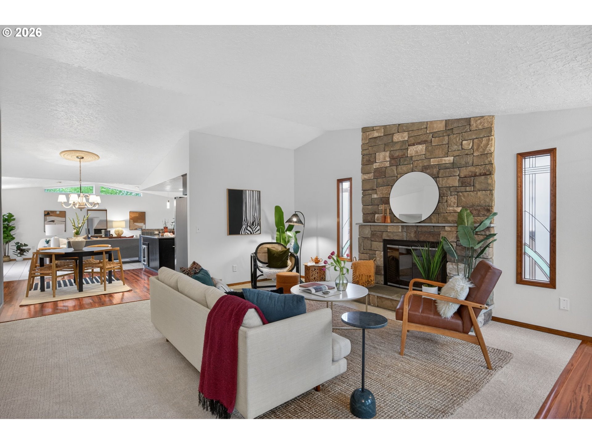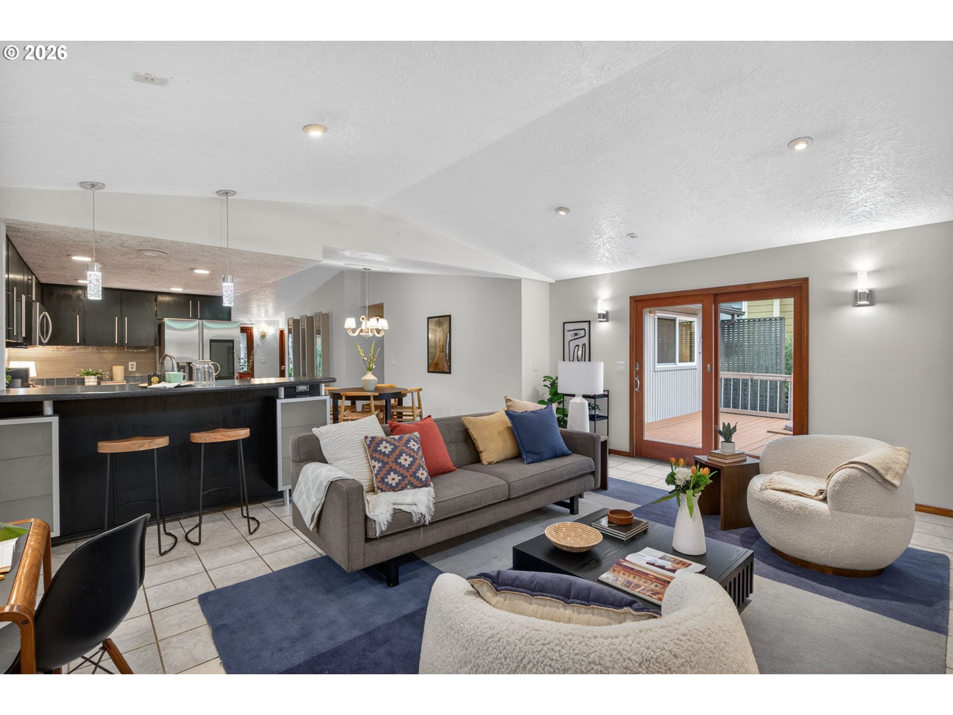 Sweet and stylish! This sweetheart one-level lies in an unbeatable location, just moments from Mt. Tabor park and around the corner from Mt. Tabor Middle school. Step inside to a bright, open floor plan with vaulted ceilings and amazing natural light. The inviting living room features a lovely wood-burning fireplace, a modern kitchen with an eating bar, updated appliances, and a wine cooler. Perfect for entertaining! Rare and spacious family room at the back of the house, creating an ideal gathering space. The family room leads out a sliding door to a large back deck with a hot tub and a low-maintenance backyard designed for easy living. Down the hall you will find the primary suite offering double closets and an attached bath with a walk-in shower. Two additional bedrooms and a full hall bath provide flexibility for guests, work-from-home, or hobbies. A dream double-car garage adds the finishing touch. Lovingly maintained and truly move-in ready. his Mt. Tabor gem is ready to welcome you home.