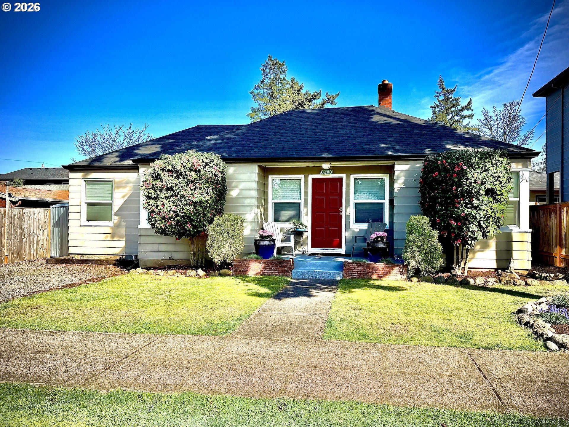Classic 1922 Bungalow filled with character and opportunity in SE Portland. Offering 4 bedrooms, 2.5 bathrooms, and over 2300 square feet of living space, this home blends timeless charm with thoughtful updates and room to make it your own. The main level features beautiful hardwood floors, abundant of natural light, and a functional layout with spacious living area flowing into the dining room and updated kitchen that's complete with updated appliances. A bedroom and dedicated office space on the main floor provide excellent flexibility for remote work or guest use, along with two full bathrooms for added convenience. Upstairs, you'll find two additional bedrooms including a generously sized primary suite with a large walk-in closet plus a shared half bath. The unfinished basement offers endless potential for future expansion, storage or home gym to name a few things. On the exterior enjoy outdoor living year round with a covered front porch, back patio and a fully fenced yard. The spacious front yard is perfect for relaxing or entertaining, while the private backyard just needs a light refresh to truly shine. A 2-3 plus car tandem driveway provides ample off-street parking. This home has great bones and offers a great opportunity for buyers looking to build equity.
