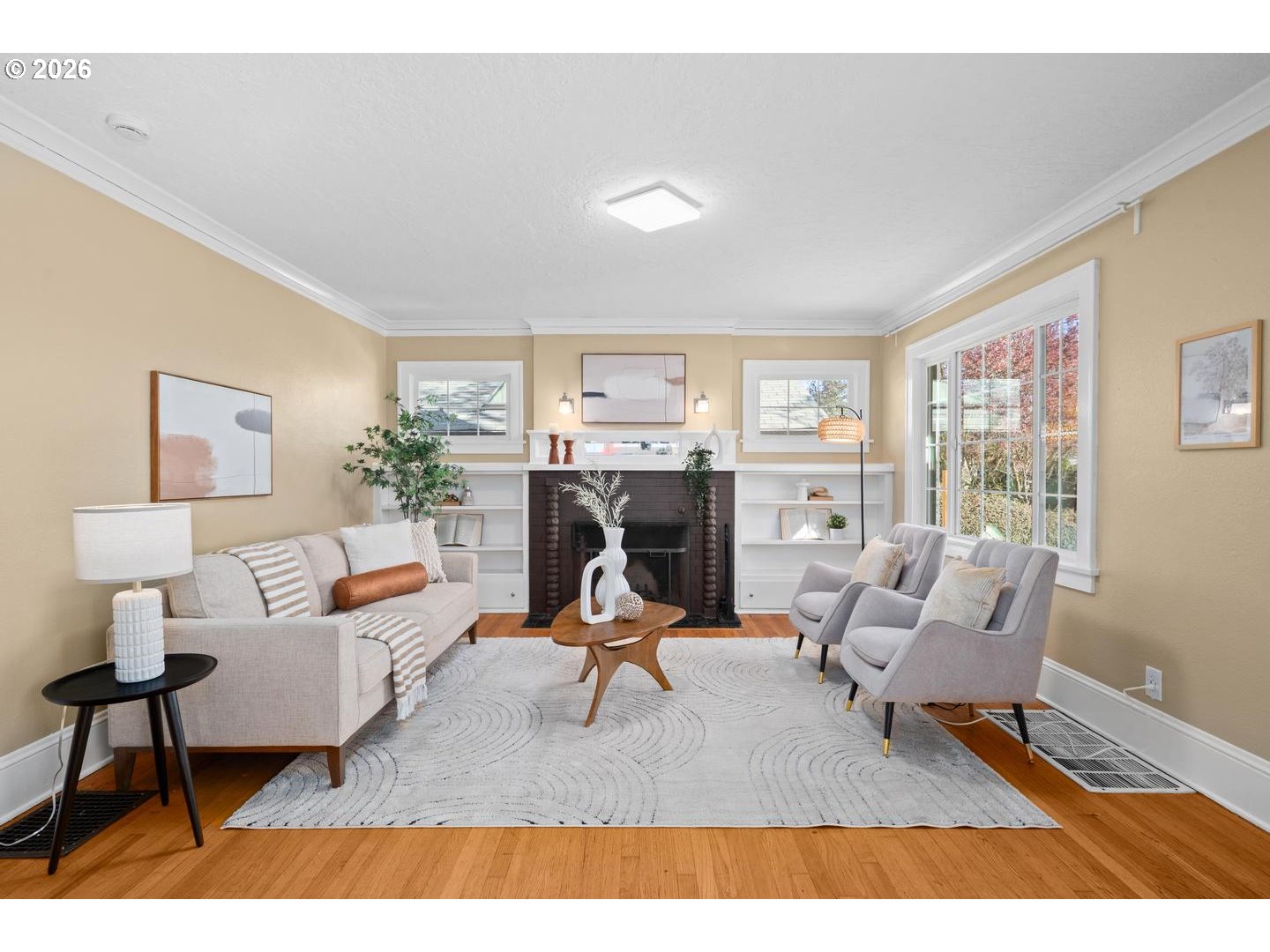 Bookcases, BuiltinFeatures, Fireplace, HardwoodFloors